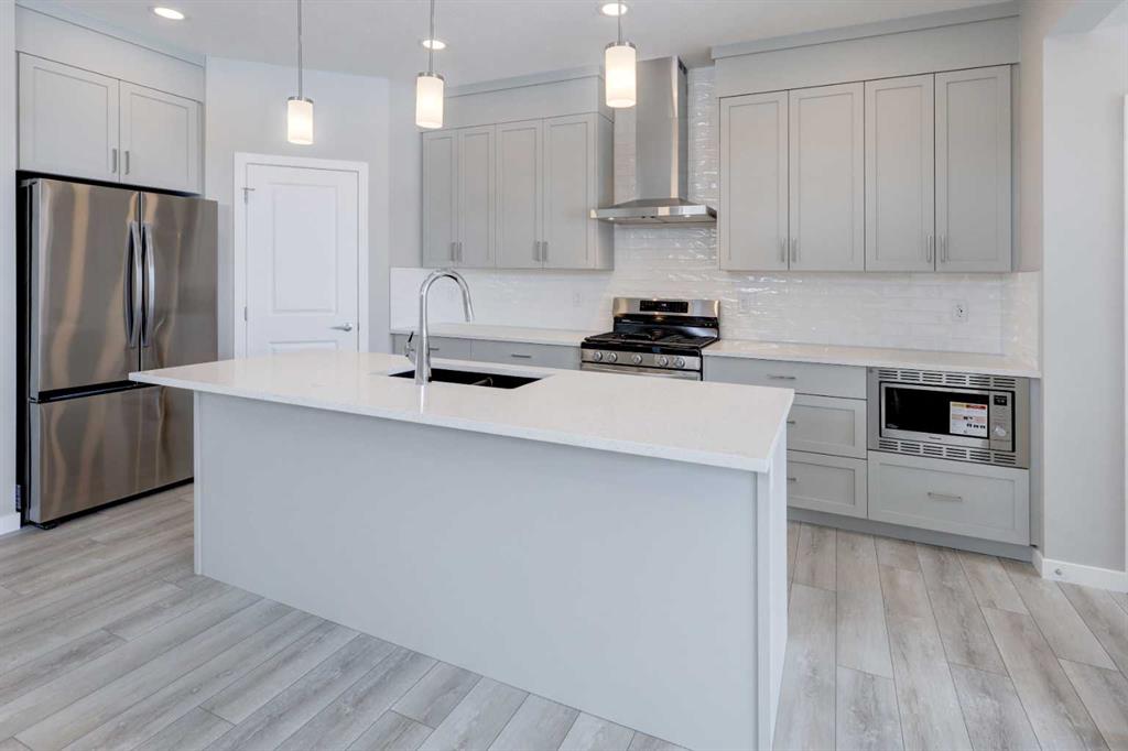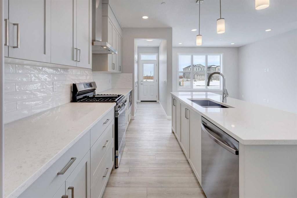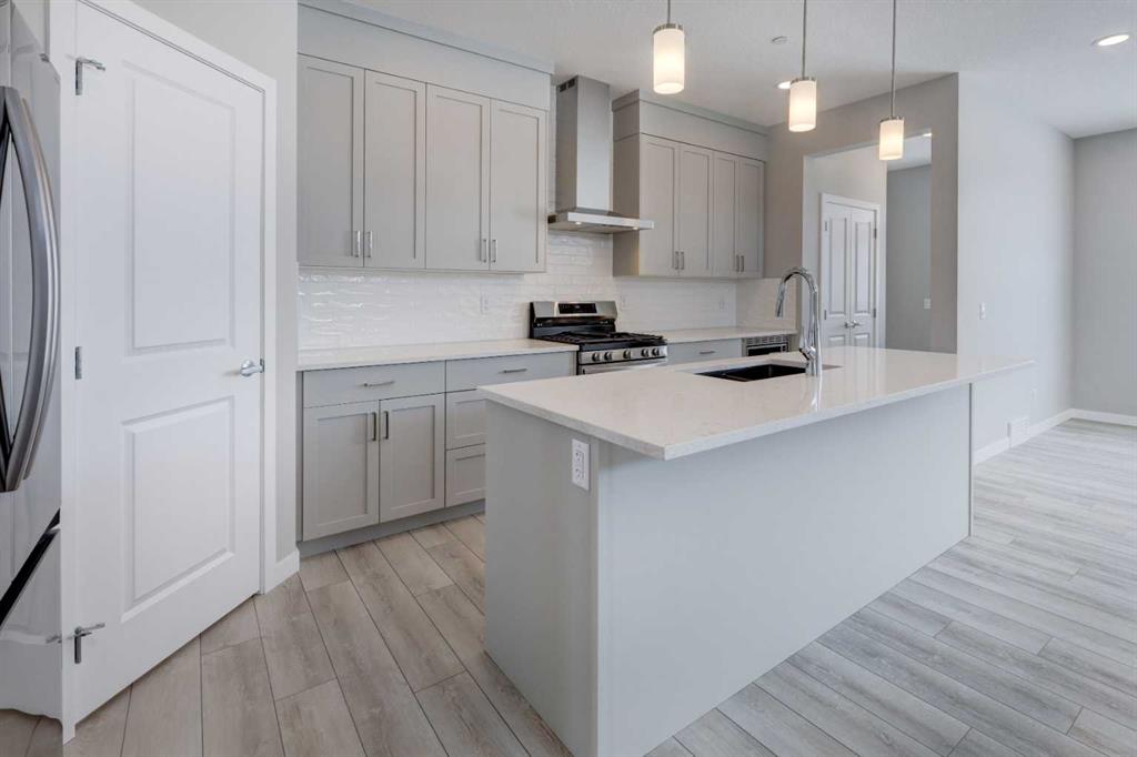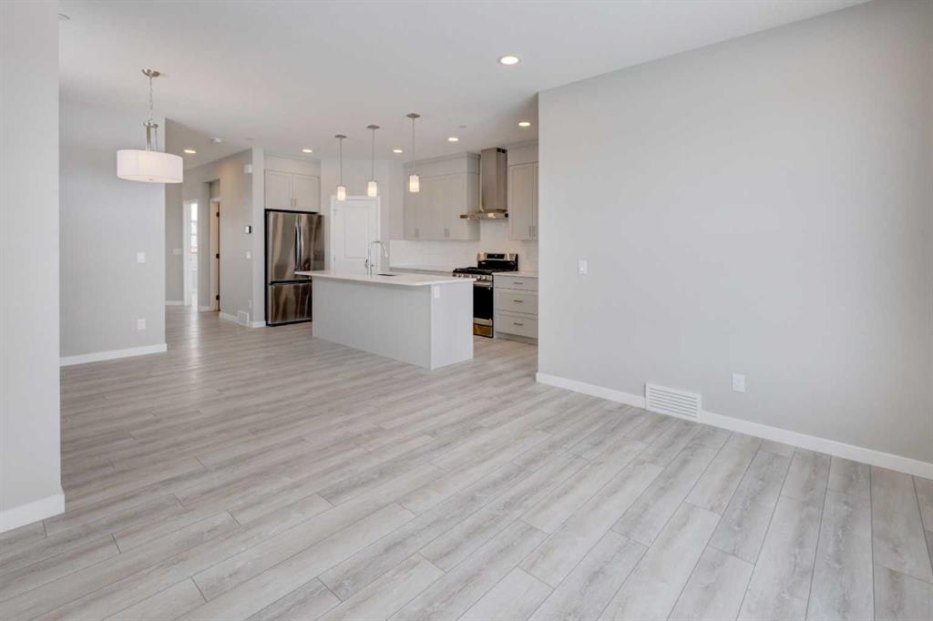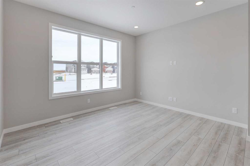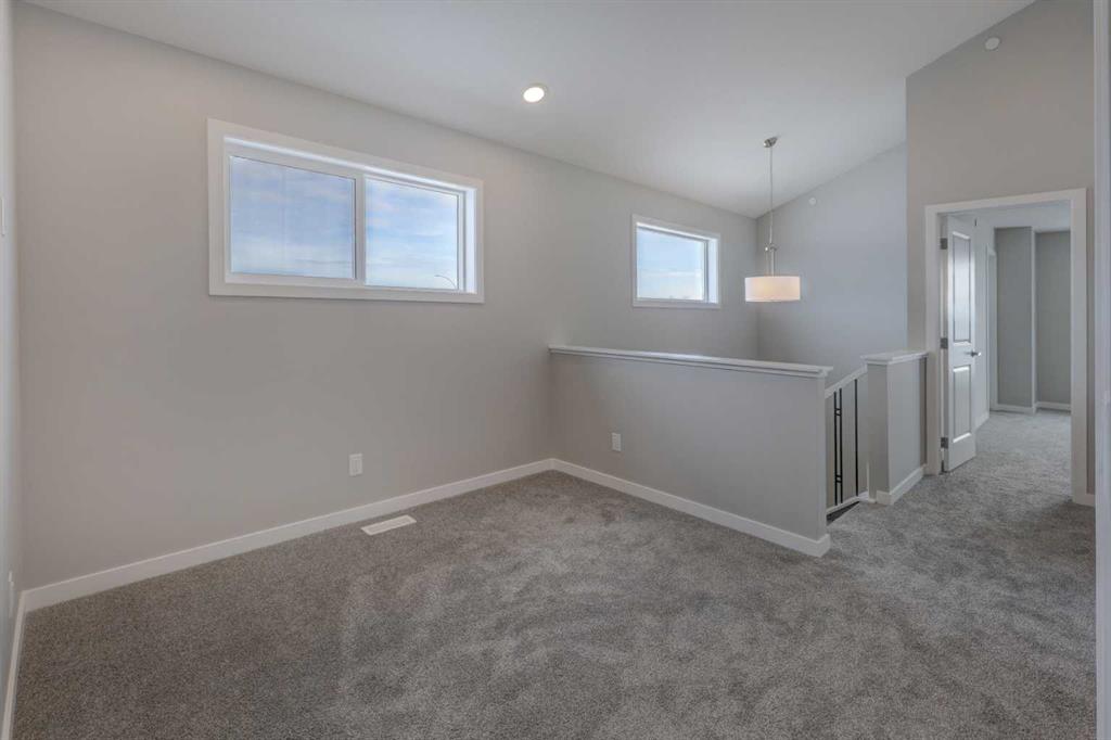 Welcome to the charming new community of Princeton – nestled just south of the TransCanada Highway and west of Garden Road, offering effortless access to both Calgary and Chestermere while striking the perfect balance between serene country living and urban convenience; surrounded by parks, schools and future retail spaces, Princeton is an ideal place to call home. Introducing the BELLEVUE by EXCEL HOMES – a gorgeous BRAND NEW, NEVER LIVED IN home offering 1785 SF of thoughtfully designed living space filled with natural light from an abundance of windows. Designed with families in mind, this home features FOUR BEDROOMS ABOVE GRADE, including a rare main floor bedroom with full bath, plus three generous bedrooms upstairs. Main floor mud room helps keep daily life organized. The kitchen is beautifully appointed with over-height cabinetry, pot & pan drawers, pantry, large island, engineered stone countertops and stainless steel appliances including gas range, built-in microwave and chimney hood fan. The family-sized dining nook and spacious great room are open to the kitchen and overlook the backyard, creating the perfect layout for entertaining and everyday living. The main floor showcases 9’ knockdown ceilings, luxury vinyl plank flooring and a neutral, thoughtfully curated color palette. Staircase with metal rails leads upstairs where you’ll find three generous bedrooms including a stunning primary suite with a huge walk-in closet and spa-inspired ensuite, a central bonus room with vaulted ceilings, convenient upper laundry and a full 4-piece bath. This home also offers a REAR DOUBLE CONCRETE PARKING PAD and is Certified Built Green with a Platinum rating, featuring energy-efficient upgrades including low-E windows, Energy Star appliances, low-flow toilets and faucets, and is uniquely SOLAR READY. Added peace of mind comes with a sprinkler system to the main and upper levels, plus sprinkler heads in the basement. The basement is roughed in for a future LEGAL SUITE (subject to Rocky View County approvals). Quick possession available!