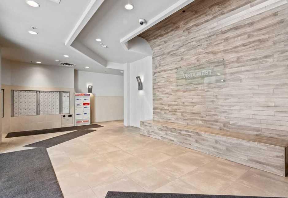 The Vista West building impresses beyond the unit itself — underground titled parking, a well-equipped fitness room, and a welcoming recreational lounge round out a lifestyle-first living experience. A beautifully appointed lobby, 24-hour security, and secure package delivery mean peace of mind comes standard. A storage locker is included, with the possibility of a second parking stall.