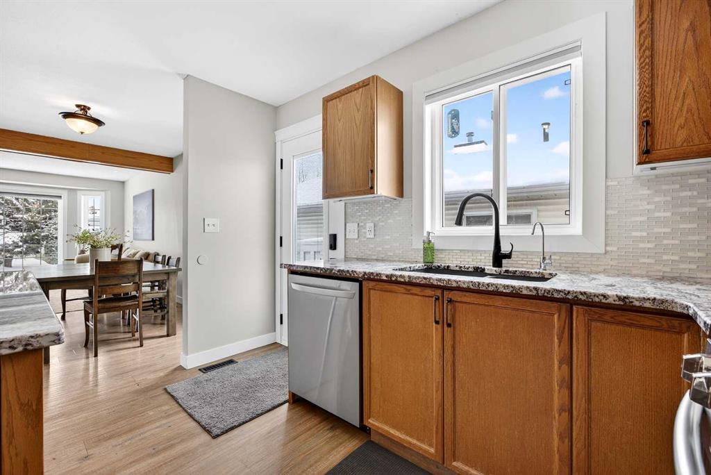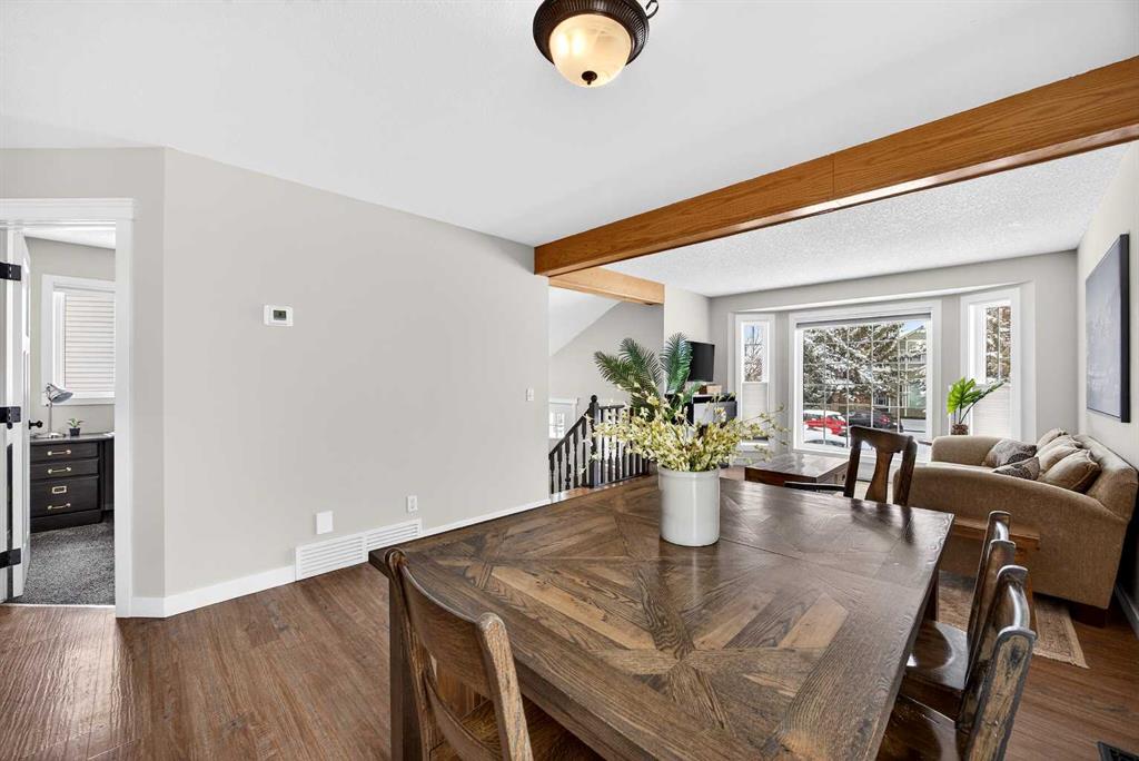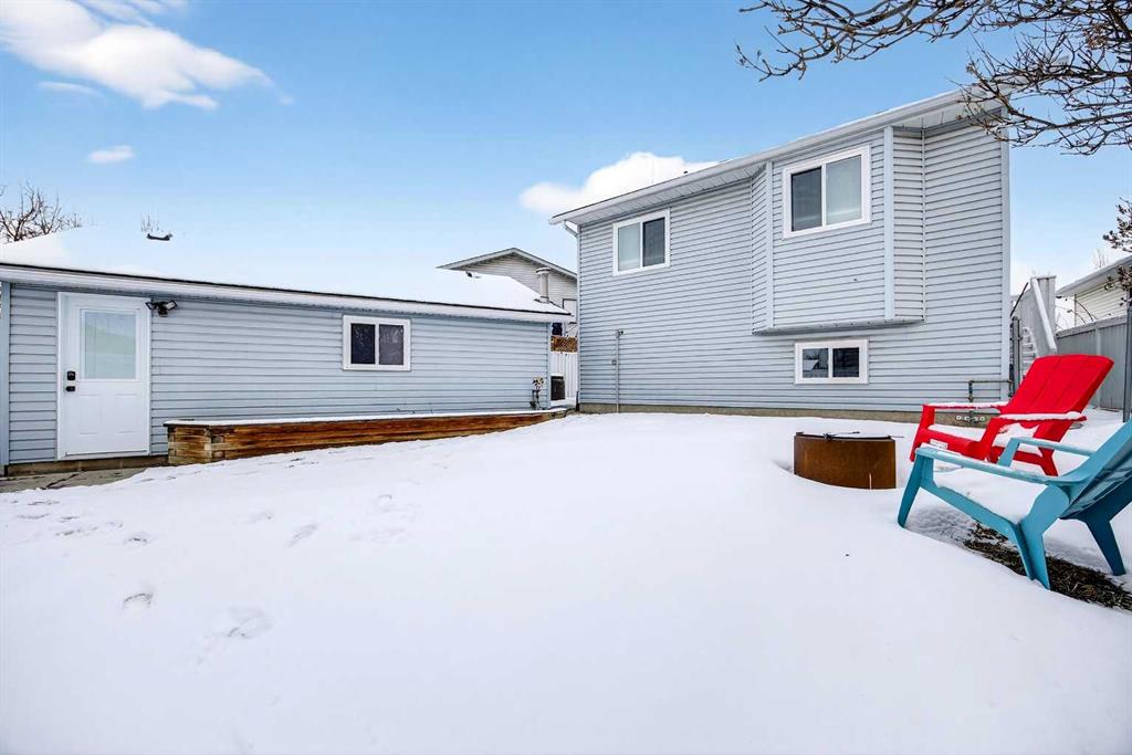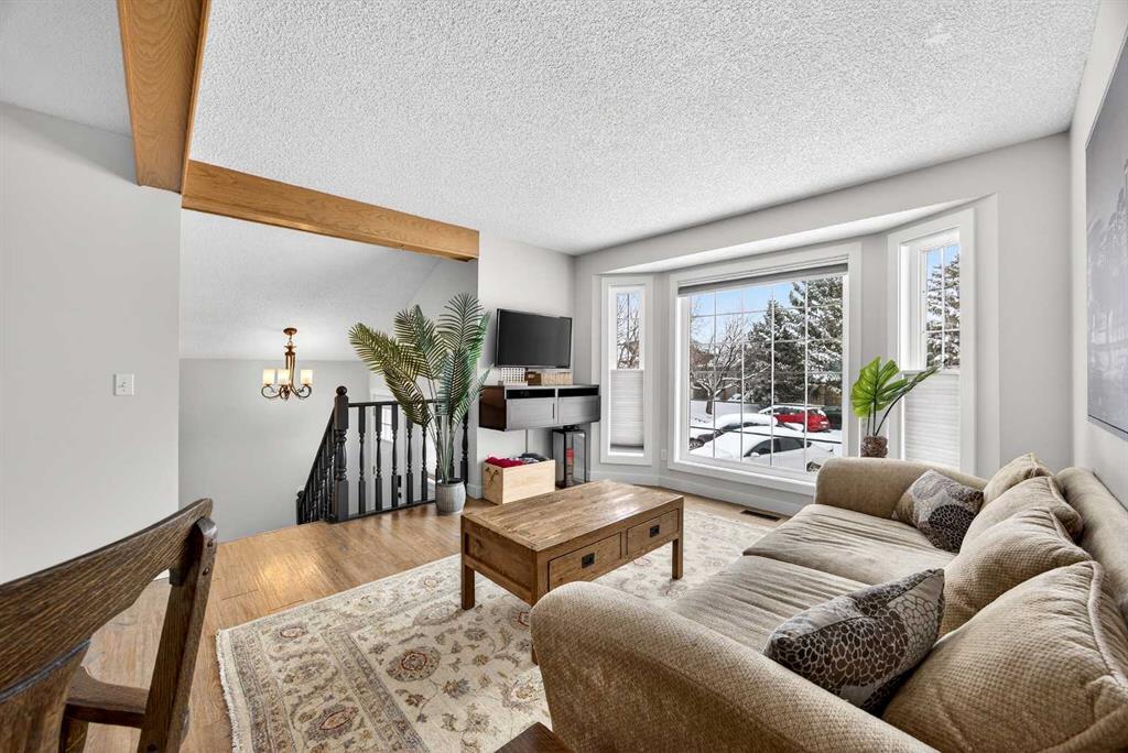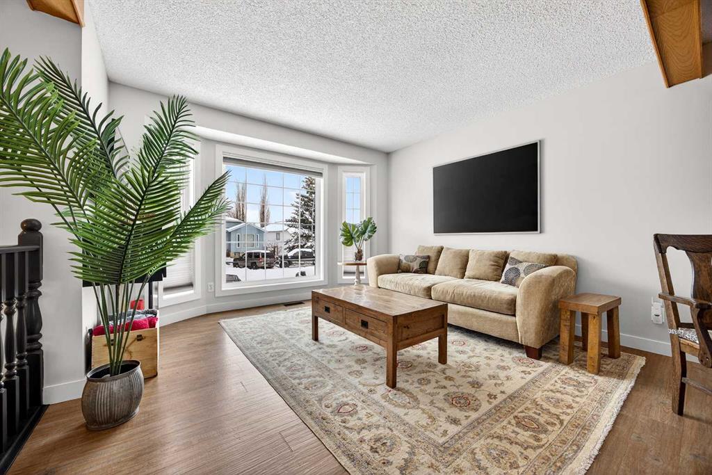 **Renovated, Charming and Super Clean** --- Move in ready, 4-bedroom, 2-full bathroom, bi-level tucked away on a quiet cul-de-sac on a large pie shaped lot with west facing backyard!!! Open-concept main floor featuring beamed ceilings and luxury vinyl-plank floors where the living room, dining room and kitchen all blend seamlessly making entertaining a dream!! The well-appointed kitchen features a large island with breakfast bar, granite countertops, mosaic tiled backsplash, under cabinet lighting, USB outlets, Blanco Sil-granite sink, water filtration system, garburator, updated light fixtures and stainless-steel appliances including gas range and new dishwasher. Three generous sized bedrooms, including a tranquil primary retreat with charming bay window, and a renovated 4-piece bathroom with soaker tub complete this level. The downstairs features a massive recreation room with lots of windows for natural sunlight, a fourth good size bedroom and full bathroom. A laundry room with storage area and inviting cedar sauna completes the lower level. The backyard is fenced and landscaped with firepit, hot-tub and includes an insulated, drywalled and heated double garage. Recent noteworthy renovations include newer millwork and mission style interior doors on main, designer paint, renovated bathrooms with quartz counters and Toto toilets. All new windows and exterior doors, new high efficiency furnace, new central air conditioning, 50-gal hot water tank (2023), and newer roof (2018). All Poly B plumbing has been removed and updated with PEX, except for the portion to the water meter. This home is truly one of a kind in an excellent location close to expansive Nose Creek Park, amenities of Country Hills Towne Centre and walking distance to Northern Lights elementary school!! Simply an amazing place to call home and shows 10/10!!!