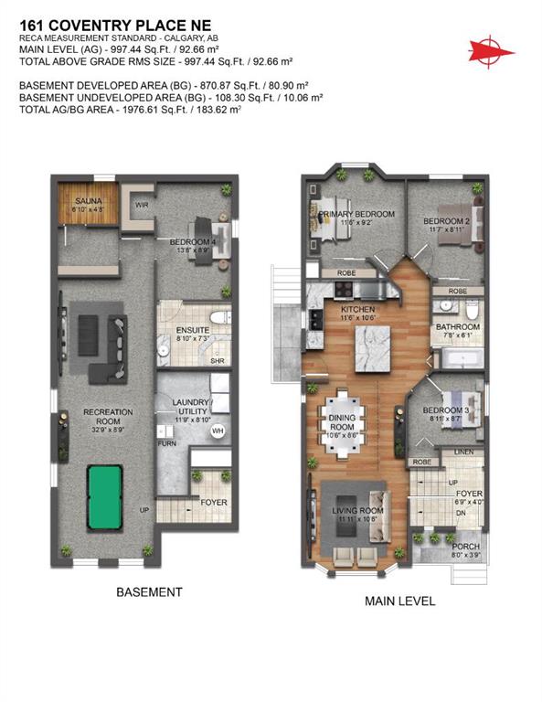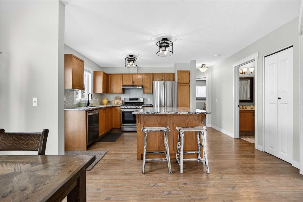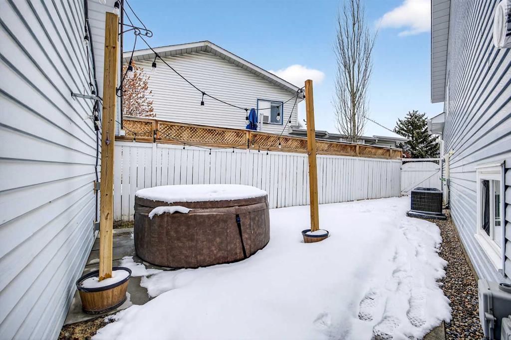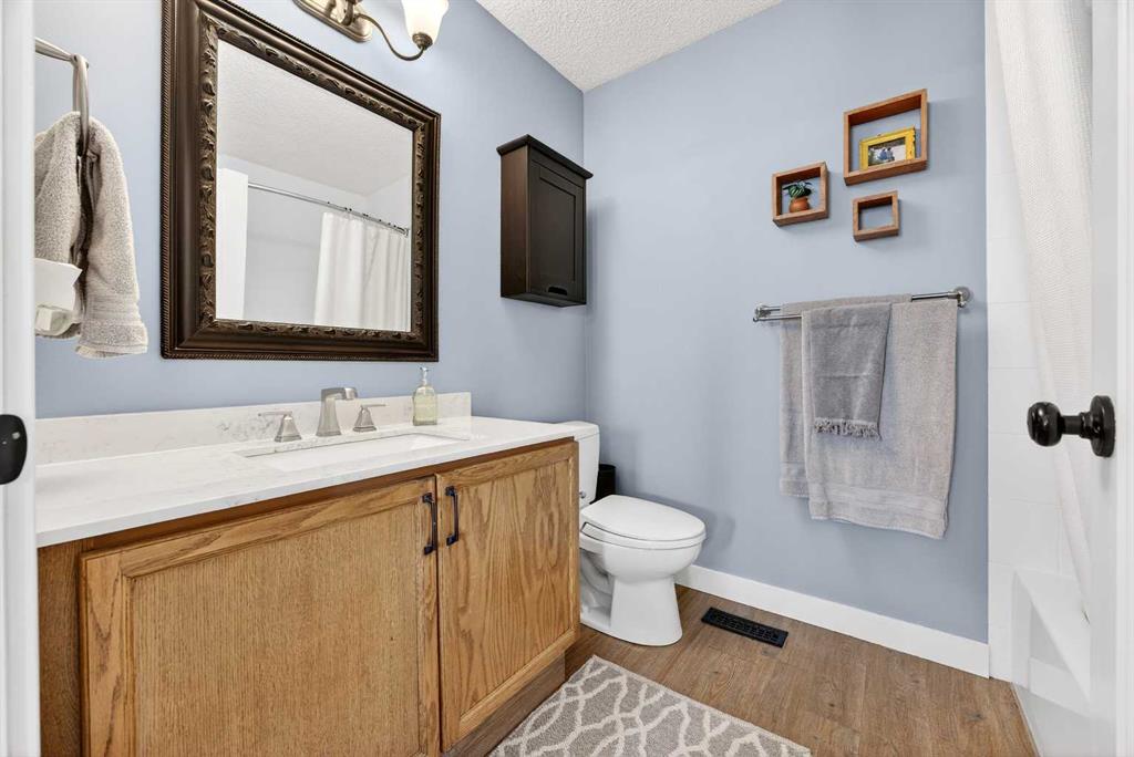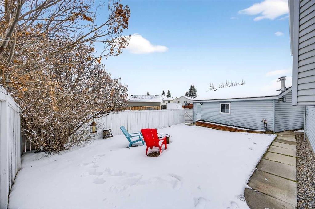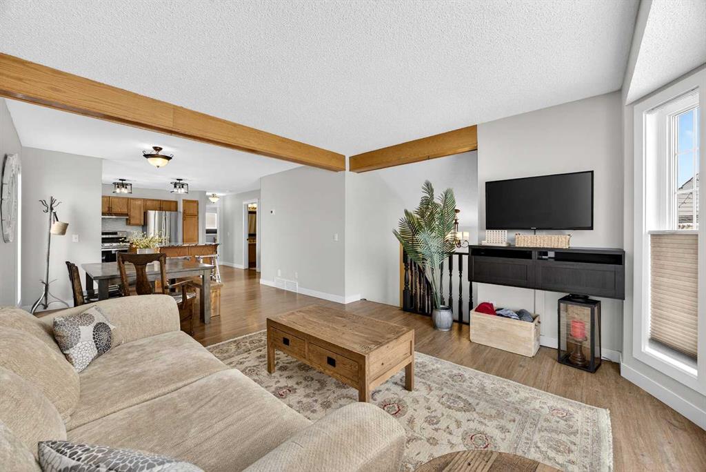 **Renovated, Charming and Super Clean** --- Move in ready, 4-bedroom, 2-full bathroom, bi-level tucked away on a quiet cul-de-sac on a large pie shaped lot with west facing backyard!!! Open-concept main floor featuring beamed ceilings and luxury vinyl-plank floors where the living room, dining room and kitchen all blend seamlessly making entertaining a dream!! The well-appointed kitchen features a large island with breakfast bar, granite countertops, mosaic tiled backsplash, under cabinet lighting, USB outlets, Blanco Sil-granite sink, water filtration system, garburator, updated light fixtures and stainless-steel appliances including gas range and new dishwasher. Three generous sized bedrooms, including a tranquil primary retreat with charming bay window, and a renovated 4-piece bathroom with soaker tub complete this level. The downstairs features a massive recreation room with lots of windows for natural sunlight, a fourth good size bedroom and full bathroom. A laundry room with storage area and inviting cedar sauna completes the lower level. The backyard is fenced and landscaped with firepit, hot-tub and includes an insulated, drywalled and heated double garage. Recent noteworthy renovations include newer millwork and mission style interior doors on main, designer paint, renovated bathrooms with quartz counters and Toto toilets. All new windows and exterior doors, new high efficiency furnace, new central air conditioning, 50-gal hot water tank (2023), and newer roof (2018). All Poly B plumbing has been removed and updated with PEX, except for the portion to the water meter. This home is truly one of a kind in an excellent location close to expansive Nose Creek Park, amenities of Country Hills Towne Centre and walking distance to Northern Lights elementary school!! Simply an amazing place to call home and shows 10/10!!!