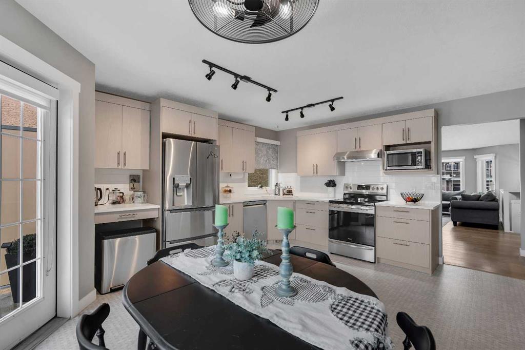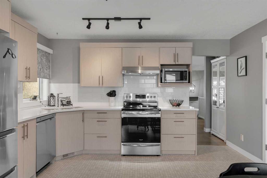 Welcome to 54 Hidden Vale Court NW. Located on a quiet cul-de-sac in the desirable community of Hidden Valley, this fully renovated 4-bedroom home offers a functional layout, modern upgrades, and a private southwest-facing backyard. The main level features vaulted ceilings in the living and dining area, complemented by large windows that flood the space with natural light. The new kitchen is thoughtfully designed with updated appliances (2021), including a gas range, and a spacious pantry, with direct access to the Duradek-covered deck—perfect for indoor-outdoor living and entertaining. Upstairs, you’ll find three well-sized bedrooms and two full bathrooms. The primary suite comfortably accommodates a king-sized bed and includes a walk-in closet and a private ensuite featuring a soaker tub and separate stand-up shower. Additional upgrades on the main level include knockdown ceilings, updated light fixtures, and modern window coverings. The fully developed basement offers excellent flexibility, with the ability to be closed off for added privacy—ideal for extended family or older children. It includes a large bedroom, full bathroom, a spacious living room with new gas fireplace, and a renovated gym/flex space that can also function as a home office. The renovated laundry room is located here, along with a generous utility and storage area. Enjoy direct access to the backyard through the basement mudroom, leading to a covered concrete patio beneath the upper deck—perfect for relaxing while watching the kids play. The fully landscaped and fenced yard can be accessed from both sides of the home. Extensive upgrades throughout the home include new appliances (washer, dryer, dishwasher, and gas range installed in 2021), renovated kitchen, bathrooms, and laundry room, new carpet in the basement, a renovated gym space, a radon mitigation system, new water heater, updated soft metals and exterior paint (professionally done stucco application), a new garage door and opener, upgraded light fixtures and window coverings, a high-efficiency furnace and air conditioning, and the complete removal of Poly-B plumbing. To top off the long list, the home includes highest quality European Egress Windows. This home is ideally located within walking distance to parks and scenic walking paths, offering the perfect balance of quiet living and convenience.