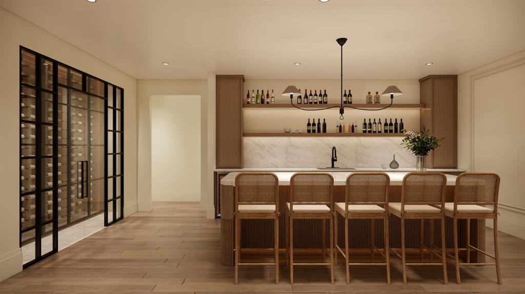 This exceptional custom bungalow located on a quiet corner lot offers over 4,400 square feet of total developed living space with 4 bedrooms, a rare attached triple tandem garage, a west facing backyard, and impressive architectural ceiling heights including 12-foot ceilings throughout the main level, 10-foot ceilings in the basement, and a front office. The home opens through a statement front foyer with designer lighting, wide plank hardwood flooring, and custom millwork detailing that continues throughout the main floor. The front office features elegant wall panelling and built-in cabinetry with glass fronts, while the great room is anchored by a striking fireplace feature wall framed by expansive windows that highlight the 16-foot vaulted ceiling, multiple skylights fill the space with natural light. The chef’s kitchen, equipped with high-end Thermador appliances, is designed as a true centrepiece with custom cabinetry, Taj Mahal quartzite countertops, a large oak island, designer hardware, and elevated plumbing fixtures. The adjacent dining area is positioned beside large windows overlooking the backyard, and heading out to the large deck with a gas fireplace. The main level primary retreat is designed as a luxurious private space with its own dramatic 16-foot vaulted ceiling, oversized windows, and generous proportions. The spa inspired ensuite features a freestanding tub, large walk-in shower with full height tile, dual vanities with custom cabinetry, quartz countertops, in-floor heating, and a spacious walk-in closet with extensive built-ins and a center island. The main floor is further completed by a second primary bedroom and an ensuite, a designer powder room with a fluted vanity and porcelain countertop, a mudroom with custom cabinetry and built-in bench seating, and a fully finished laundry room with cabinetry and quartz counters leading to the attached triple tandem garage. The fully developed lower level continues the home’s refined design with 10-foot ceilings, a gym, a large recreation and entertainment area, a custom wet bar, extensive cabinetry, and a glass enclosed wine display. Two additional bedrooms are generously sized and paired with beautifully finished bathrooms featuring custom vanities, quartz counters, and full tile showers, creating a home that blends thoughtful layout with elevated finishes throughout. Located near the Glenmore Reservoir, North Glenmore Park, and Weaselhead Flats with endless walking and cycling pathways. Enjoy quick access to downtown, top rated schools, nearby golf courses, and a vibrant community atmosphere with parks, recreation, and local amenities just minutes away. Buyers will have the opportunity to work with the builder and customize select finishes. Call today to book your private tour.
