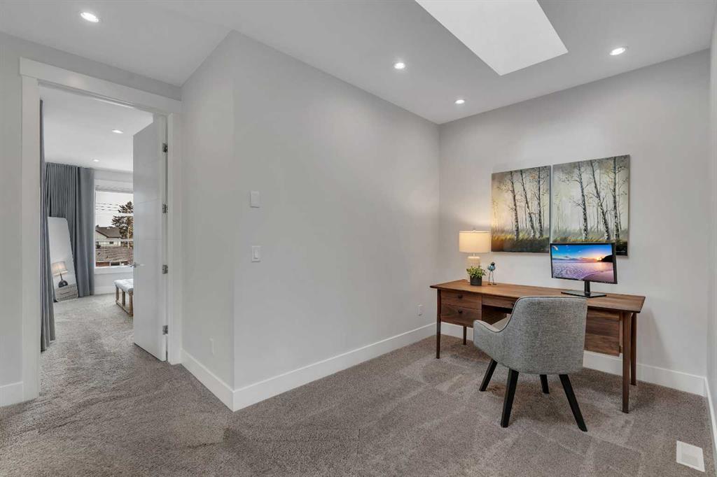 The main floor flows effortlessly with it’s 10 foot ceilings and the ideal space for hosting friends before heading out or staying in when the mood calls for it. Upstairs, the primary suite gives you a proper place to recharge, complete with a sleek 5-piece ensuite with soaker tub, while two additional bedrooms and additional flex space perfect as a home office.