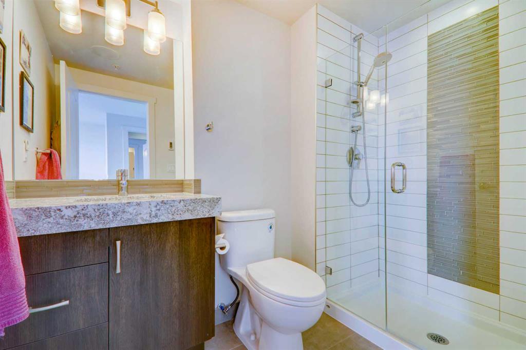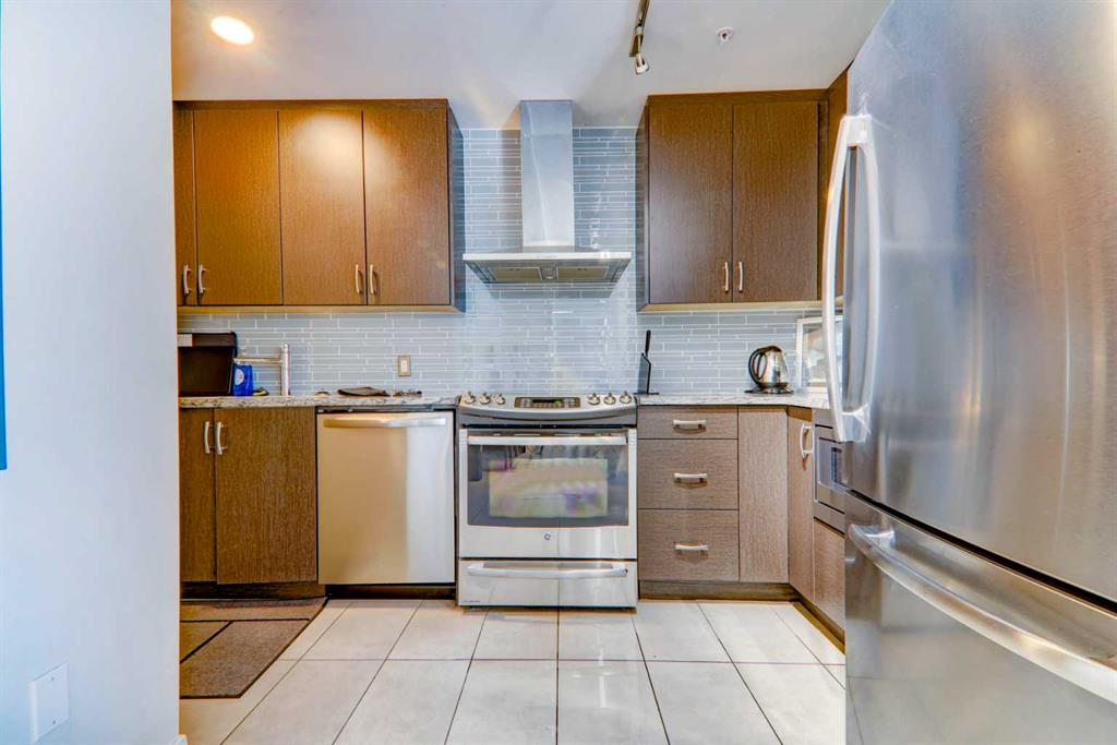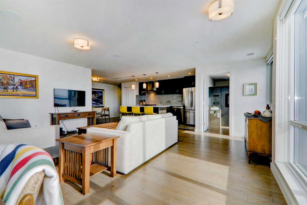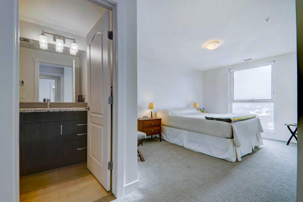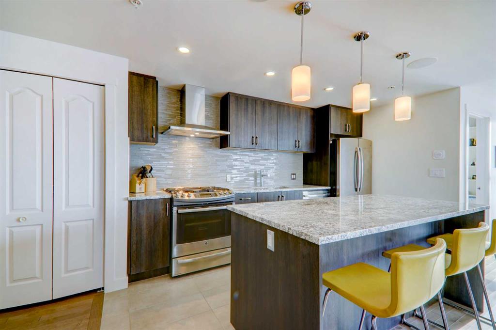 Step into elevated inner-city living with this beautifully appointed 2-bedroom, 2.5-bathroom residence in the heart of Calgary’s vibrant Beltline. Perched on the 14th floor, this corner unit showcases sweeping panoramic views—capturing the Downtown skyline, Rocky Mountains, and Memorial Park through expansive floor-to-ceiling windows. Offering 1,279 sq. ft. of air-conditioned space, the home blends upscale finishes with a thoughtfully designed open-concept layout. The kitchen is both stylish and functional, anchored by a large granite island and complemented by premium stainless steel appliances, including a gas range. Full-height espresso cabinetry with under-cabinet lighting adds warmth and sophistication. The dining area is perfectly suited for entertaining, while the bright living room extends onto a west-facing balcony—ideal for evening sunsets and summer grilling with the gas BBQ hookup. A versatile den featuring a built-in Murphy bed and drop-leaf desk provides the perfect work-from-home setup or guest space. Both bedrooms offer walk-in closets with custom organizers and private, spa-inspired 4-piece ensuites. The primary retreat includes its own balcony with serene southern exposure, while the second bedroom is generously sized and equally well-appointed. Additional highlights include hardwood flooring, a convenient 2-piece powder room, and in-suite laundry. This unit also comes with tandem titled underground heated parking and a dedicated storage locker. Residents of Park Point enjoy exceptional amenities, including a fully equipped fitness centre, outdoor terrace, resident lounge, recreation room, guest suite, bike storage, and ample underground visitor parking with EV charging. Professional management and secure access offer true lock-and-leave convenience. Set in one of Calgary’s most desirable urban locations, you’re just steps from Central Memorial Park, the energy of 17th Avenue, 4th Street dining and nightlife, and the evolving entertainment district. With easy access to the LRT, Stampede Grounds, MNP Community & Sport Centre, river pathways, and more, this is city living at its finest—refined, connected, and ready for its next chapter.