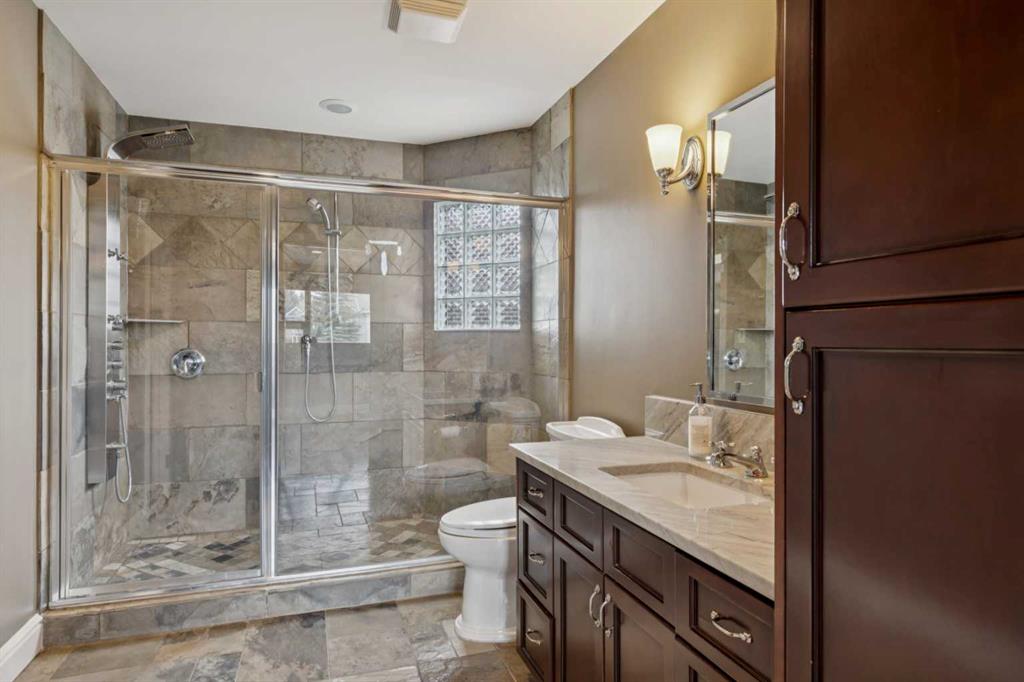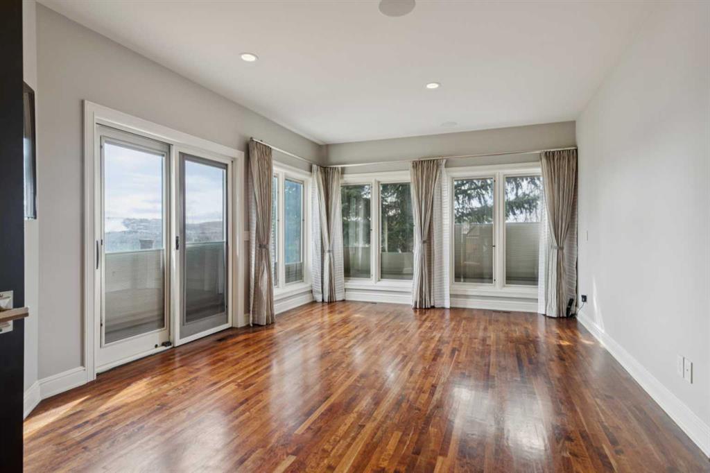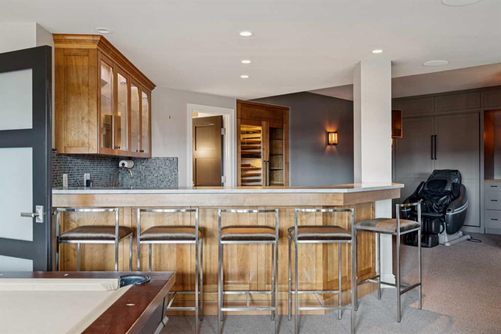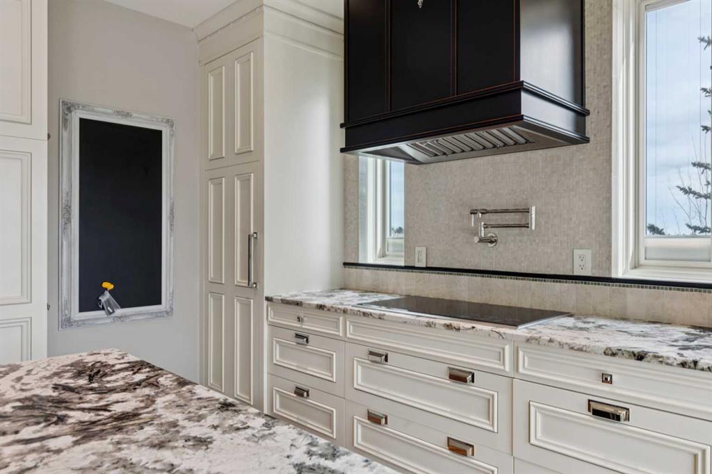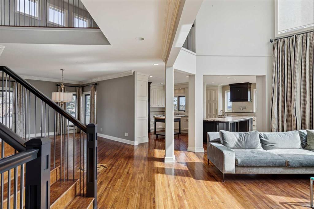 NEW PRICE! Welcome to this truly incredible custom-built home perfectly positioned on a quiet street in the prestigious community of Scenic Acres. Backing onto a ravine with breathtaking views of the mountains and COP, this home combines timeless elegance with modern luxury. Originally crafted in 1996 with a neo-classical design, the property underwent a major renovation by Empire Kitchen and Bath approximately 11 years ago, which included updates to the roof, windows, and exterior. All Poly B has been replaced and the home is truly Turn-Key! The main floor showcases a fully loaded chef's kitchen with gorgeous countertops, top-of-the-line Miele built-in coffee machine, Sub-Zero fridge and drawers, Wolf oven and wolf steam oven, induction cooktop, and convection microwave. From the kitchen, step out onto the expansive full-width deck with BBQ gas line and enjoy the sweeping ravine views. The main living area is a showpiece, featuring a majestic fireplace, soaring ceilings, and Pella windows fitted with Hunter Douglas blinds. An elegant formal dining room and a primary bedroom with a luxurious ensuite including a steam shower complete this level. Upstairs, you'll find two spacious bedrooms, each with their own ensuites, heated floors, and walk-in closets. A cozy family or games room with a gas pellet stove adds warmth and charm while a bonus loft/home office or library with built-in shelving overlooking the living room. A separate wing features another primary bedroom with a heated ensuite and walk-in closet, providing privacy and comfort. The walk-out basement is an entertainer's dream. It features a rec room with a wet bar, complete with a sub-zero wine fridge, dishwasher, and walk-up access to garage, plus a gym area (with fridge included), pool table area (also included), and a Murphy bed for guests. The lower level also offers beautiful ravine views, a sport court with light switch, firepit with gas line, and underground sprinklers. Recent upgrades include two new furnaces in basement one in garage and one for the addition, and hot water tanks (September 2023) by Arpis, plus a ceiling furnace dedicated to the heated triple attached garage with aggregate driveway. The garage includes a Garage Works wall system and automated opener with controls. Smart home electronics are included from Home Concepts, along with two Kinetico water systems - one on the main floor and another in the basement with a chlorine filter and water softener. Throughout the home, gorgeous cherry hardwood floors, high open ceiling, and air conditioning provide an atmosphere of sophistication and comfort. Set on a quiet street right next to walking paths, this exceptional property offers easy access to Crowfoot Centre, LRT, and top-rated schools, as well as nearby parks and amenities. This is a rare opportunity to own a luxurious, fully upgraded home designed for both entertaining and family living in one of Northwest Calgary's most sought-after communities.