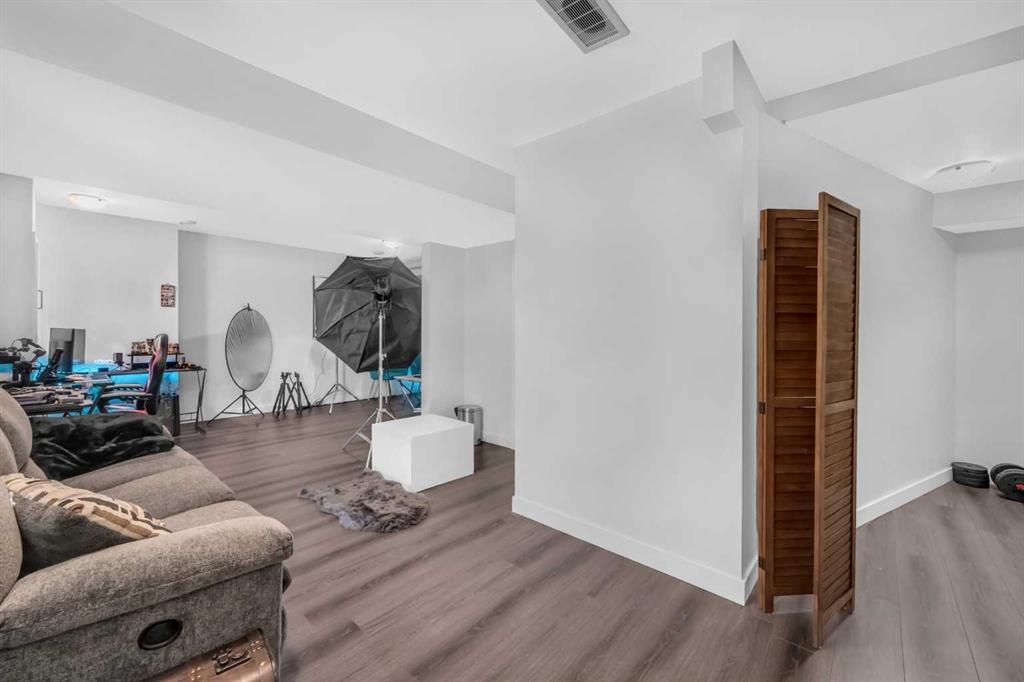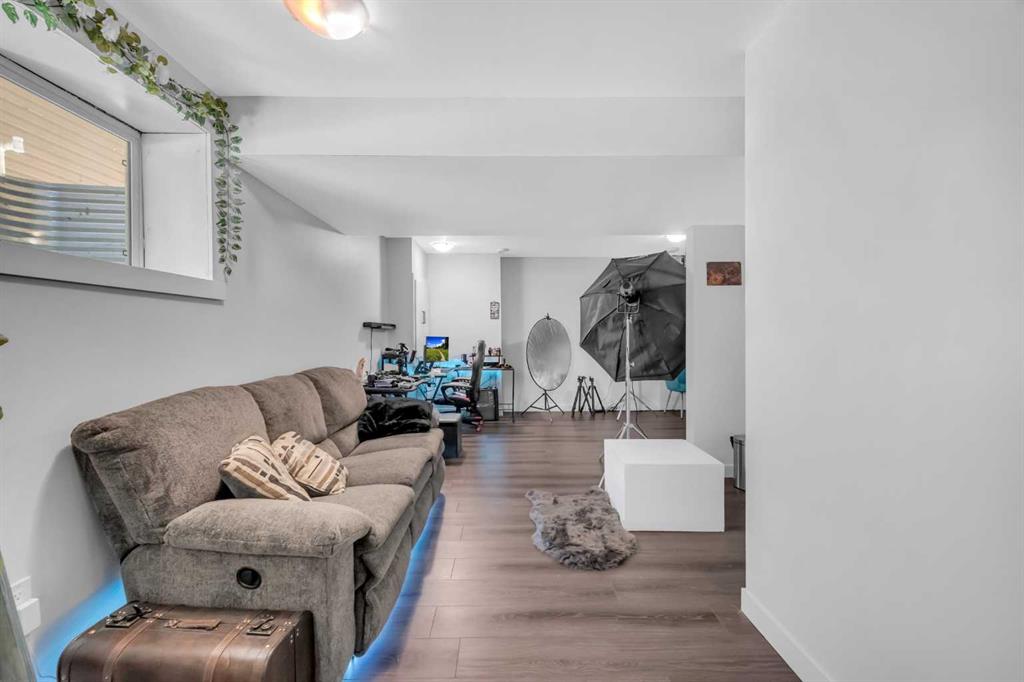 The home features a fully developed basement with a massive recreational room, smart lights providing endless possibilities for entertainment, a home theater, or additional living space. The spacious kitchen boasts beautiful quartz countertops, offering a modern and sleek aesthetic that will make cooking and hosting a delight. The open-concept design flows effortlessly from room to room, allowing natural light to fill the home and highlight its charming features.