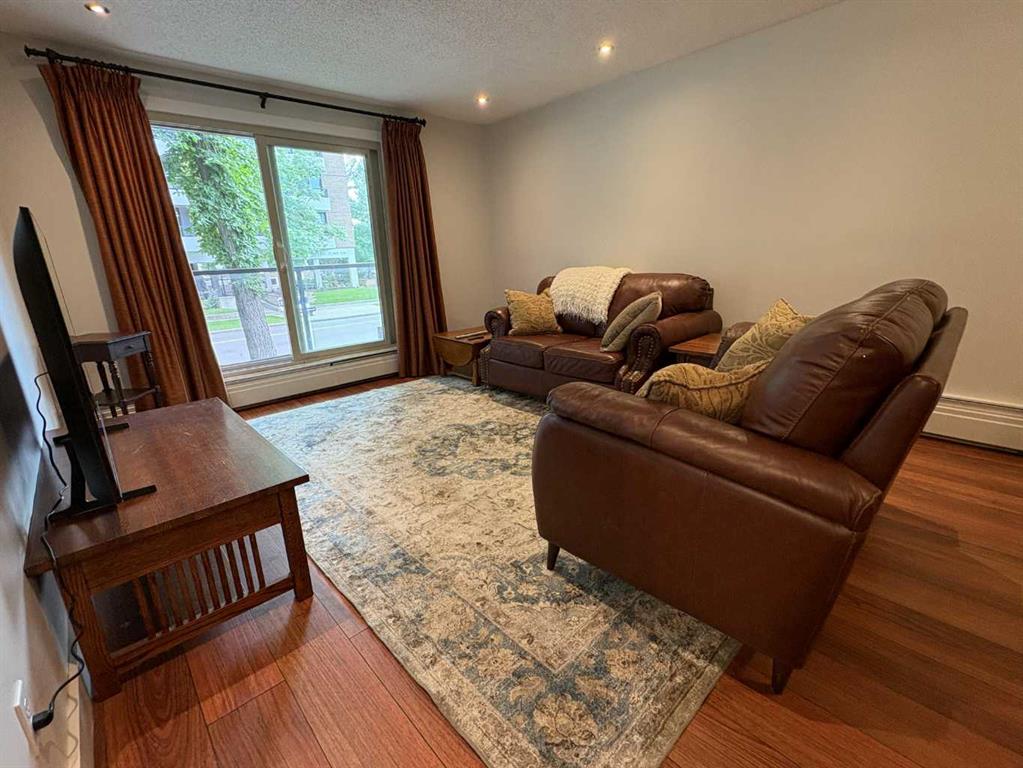 Live in the heart of one of Calgary‘s most vibrant downtown communities. This spacious two-bedroom one-bathroom condo offers the ultimate inner city lifestyle with an unbeatable location, just steps from the Elbow River, pathways, 4th St, shops, eateries, and the MNP community and sports center. It is two blocks to the sea train. Step inside and be greeted by a beautifully updated freshly painted interior. The condo features engineered hardwood floors throughout and a fully renovated bathroom. Enjoy new additions like flat pot LED lighting in most rooms and mirrored closet sliders. The generous primary bedroom includes a walk-through closet leading directly to the stylistically updated main bathroom. Relax and unwind on your private balcony perfect for morning coffee or quiet evenings. You’ll appreciate the convenience of the included brand new washer and dryer and all new blinds in the bedrooms. This condo provides a truly walkable lifestyle. You’re just a short stroll from the Earlton LRT station and stampede park, as well as all the restaurants, pubs and stores on fourth Street, making your commute and weekend plans a breeze. Additional perks include a heated and secured underground parking stall, access to visitor parking spots and a welcoming lobby with updated common spaces.