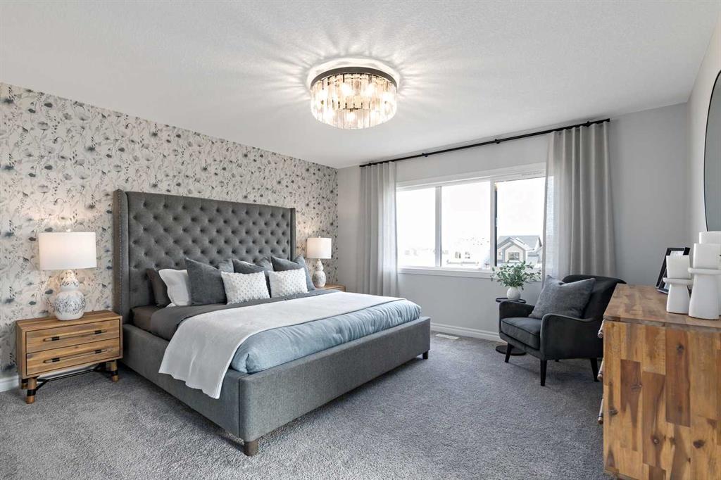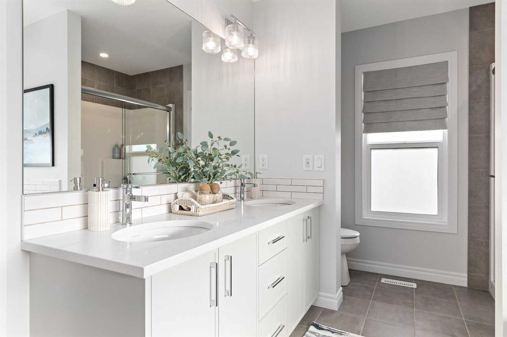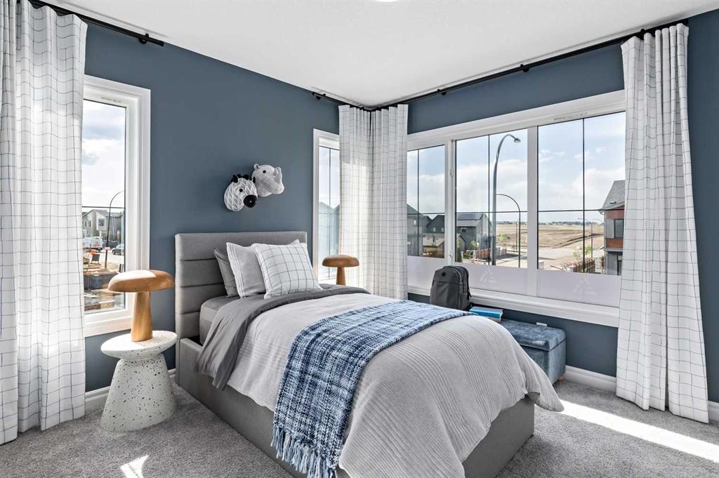 Upstairs, the home continues to impress with four generously sized bedrooms, including a spacious primary retreat designed for comfort and relaxation. The primary suite features a walk-in closet and luxurious 5-piece ensuite complete with double vanity, glass and tile shower, and a soaking tub. One of the secondary bedrooms includes its own private 4-piece ensuite, while the remaining bedrooms share an additional full bathroom. The upper-level family/bonus room provides flexible space for movie nights, study areas, or a children’s playroom, while the upper floor laundry adds everyday convenience.
