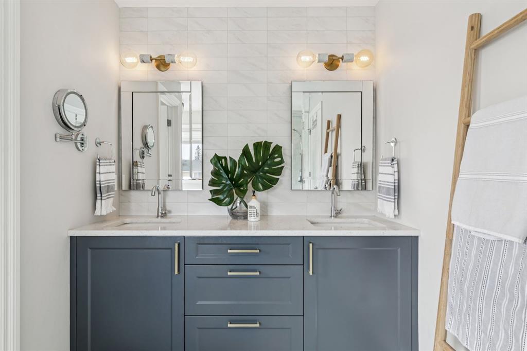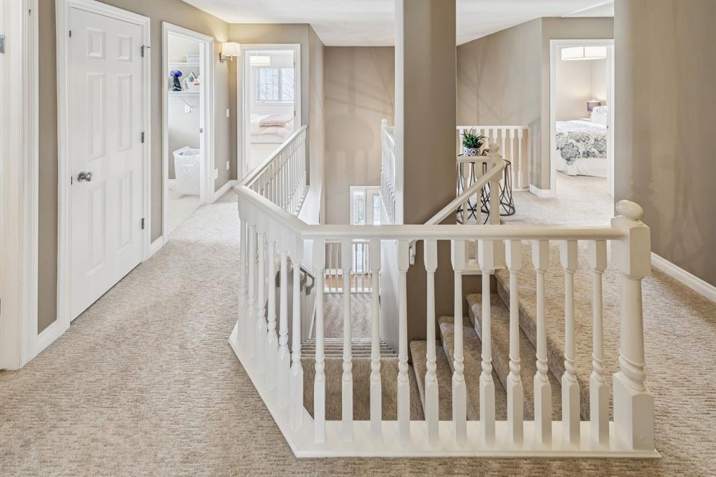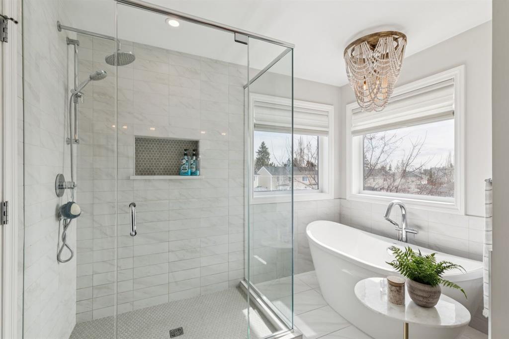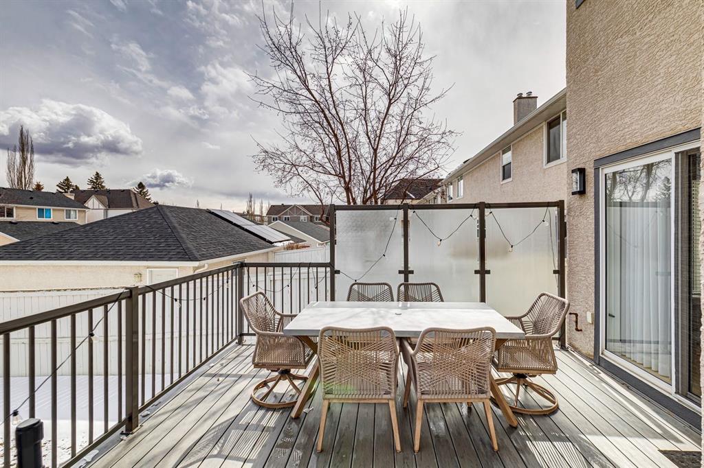 Welcome to this rare, 4 bedroom up, executive family home perfectly positioned on a spacious 41' lot and offering over 3,800 sq ft of beautifully developed living space. Thoughtfully designed for modern family living and entertaining, this fully updated home combines timeless style with exceptional functionality and is just minutes from top schools, parks, and the vibrant shops and dining of Marda Loop. From the moment you arrive, the charming front porch and mature trees create stunning curb appeal and a sense of privacy. Inside, soaring ceilings in the entryway, elegant arched doorways, and wide plank hardwood flooring set the tone for the main level. A bright front office overlooks the porch, while the formal dining room seamlessly connects to the heart of the home, an updated kitchen featuring crisp white cabinetry with modern gold hardware, black granite countertops, built-in oven, gas cooktop, Miele dishwasher, corner pantry, and a convenient butler’s/coffee station. The adjoining breakfast nook opens through sliding doors to a massive composite multi-tiered deck and patio making it perfect BBQs and hosting family and friends. The spacious living room is anchored by a cozy gas fireplace and large windows that adorn the space with natural light. A functional mudroom with side entry and a 2pc bath completes the main floor. Plush carpets line the stairs as you ascend to the second level where you’ll find a full bathroom, convenient laundry, and four generously sized bedrooms, including the primary. The luxurious primary retreat showcases a walk-in closet that's nestled behind sliding glass doors, and a beautiful 5pc ensuite featuring dual vanities, a deep soaker tub, and a separate glass shower. The fully developed basement continues to impress with high ceilings, a large recreation room, two additional bedrooms, and a shared 3pc bathroom; ideal for guests, teens, or extended family. Additional upgrades include newer flooring throughout, light fixtures, updated bathrooms, air conditioning, reverse osmosis system, and water softener. Step outside to enjoy the beautifully finished backyard complete with a composite deck, patio, and ample green space. The property also features a double detached garage plus an additional parking pad, perfect for an RV or boat. Located just steps from parks, transit, schools, and all the amenities of Marda Loop, this exceptional home offers the perfect balance of community, convenience, and elevated family living.