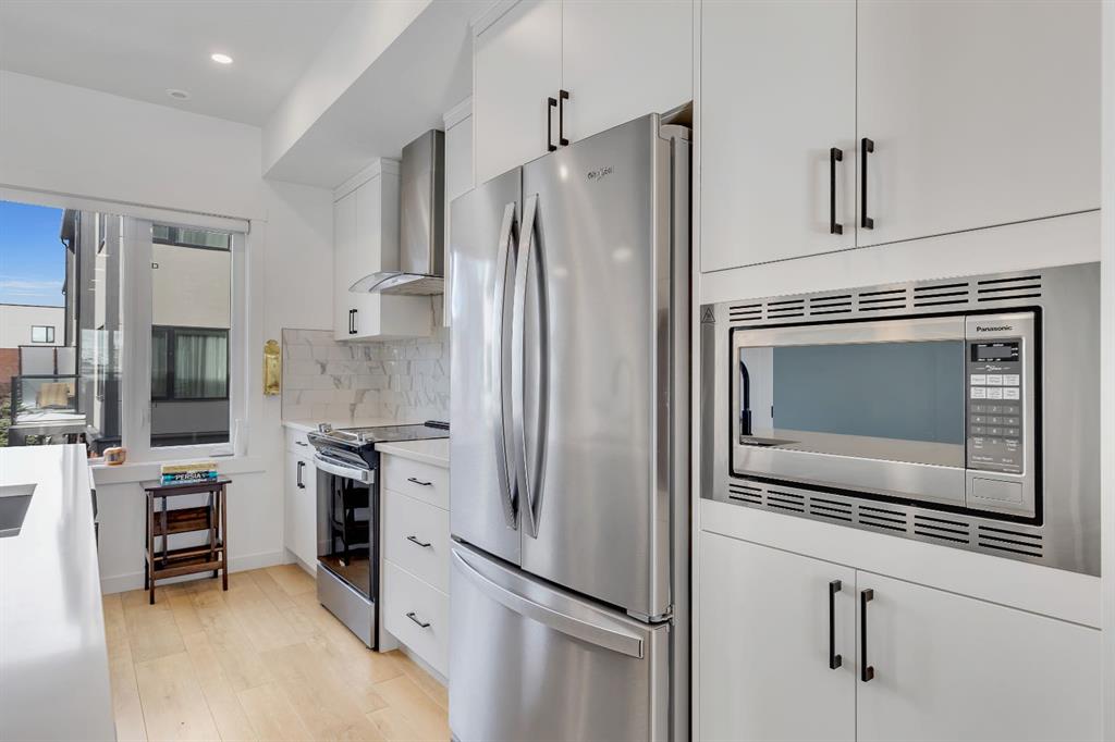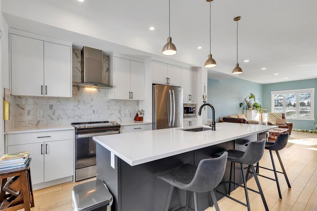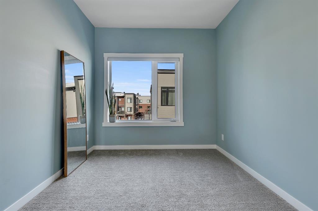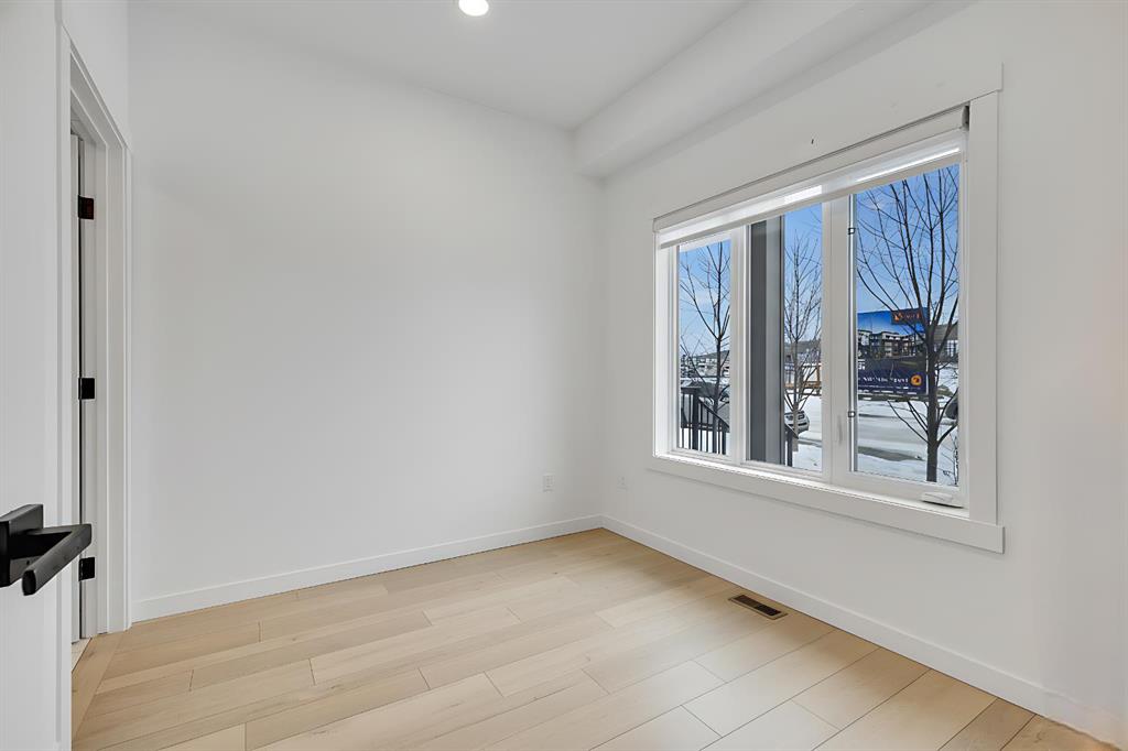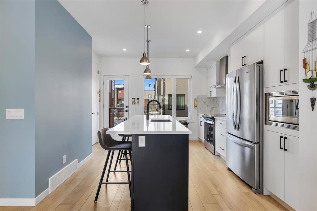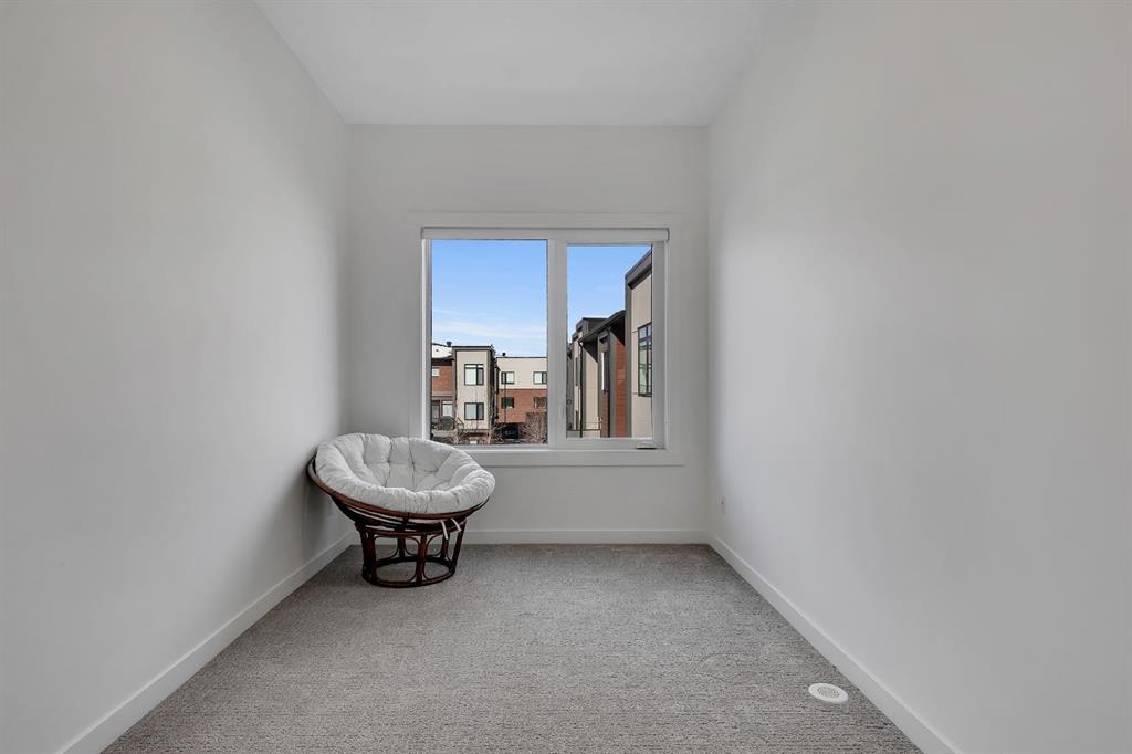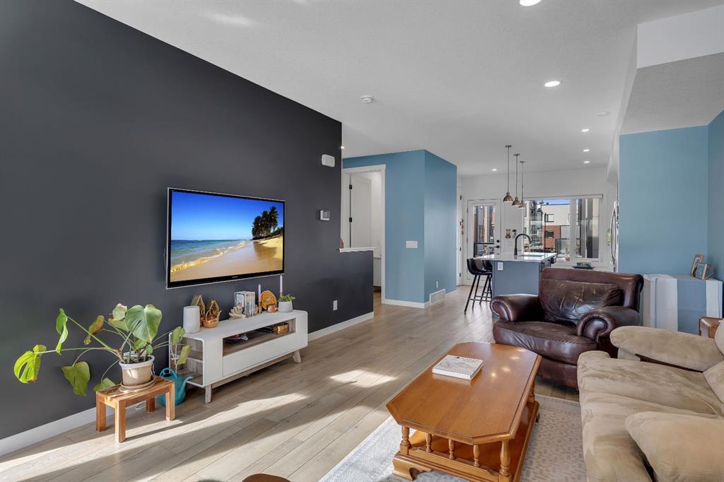 | Open House Sunday April 12th from 12:00pm-4:00pm | Welcome to the Calla Design Plan in Greenwich, built by Landmark Homes in the Artis development. Inspired by New York executive townhome design, this beautifully appointed home offers over 1,650+ square feet of open concept living space in one of Calgary’s most distinctive northwest communities.This thoughtfully designed home features a rare design of 4 bedrooms, 3.5 bathrooms, and a double attached garage, with a layout enhanced by professionally curated interior colour selections and a multitude of builder upgrades throughout.Carefully customized, this home showcases exceptional finishes paired with extraordinary natural light. The south fronting exposure overlooks the front boulevard for additional street parking and amazing views onto Canada Olympic Park and adjacent Park and Playground Spaces. Outdoor living is equally impressive, with a front-entry exposed aggregate patio and a main-floor full glass balcony with BBQ Gas Line designed to enjoy the full afternoon sun. Inside, this home features luxury vinyl plank flooring throughout the main and lower levels, quartz countertops, Painted custom cabinetry, 9-foot ceilings, and upgraded stainless steel appliances, including a chimney hood fan and built-in microwave. High-efficiency building components include triple-pane windows, a high velocity furnace system, tankless hot water tank, and a heat recovery ventilator system.This Calla plan was further enhanced with the builder’s Show Home Package, adding in Central Air Conditioning, the 4th Bedroom and 3rd Full Bathroom on the Entry Level, 8-foot solid interior passage doors, full tile backsplash upgrades, enhanced bathroom finishes, and window coverings throughout. As one of Landmark Homes’ most open and customizable floor plans, this layout offers exceptional flexibility for options of a full dedicated dining room experience, or an oversized main floor living room configuration. The exterior of this development was designed with New York brownstone influence, featuring James Hardie panel siding, brick accenting, and stucco finishes for a contemporary, low-maintenance lifestyle. Ideally located, this home offers quick access to downtown Calgary (approximately 18 minutes), University of Calgary and Foothills Medical Centre (approximately 12 minutes), and weekend escapes to Banff or Canmore in under an hour. It is also within walking distance of the Calgary Farmers' Market West and Boutique and Specialty Shopping in the Central Commercial Plaza. Book your showing today and discover what makes Greenwich NW such an exceptional place to call home.