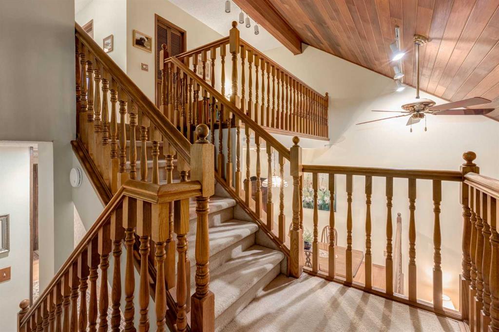 bookcases, ceiling fan(s), central vacuum, chandelier, closet organizers, high ceilings, natural woodwork, no animal home, no smoking home, soaking tub, storage, vaulted ceiling(s)