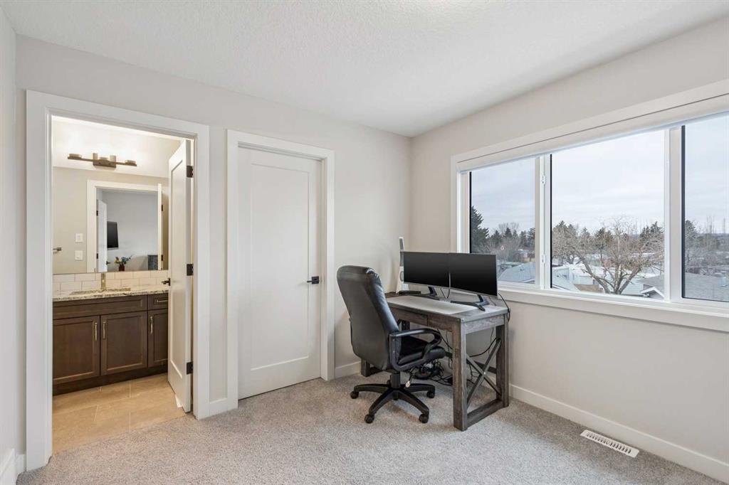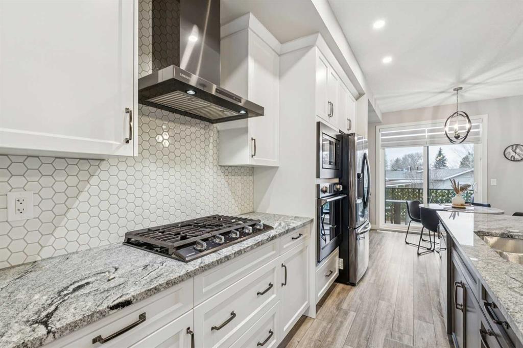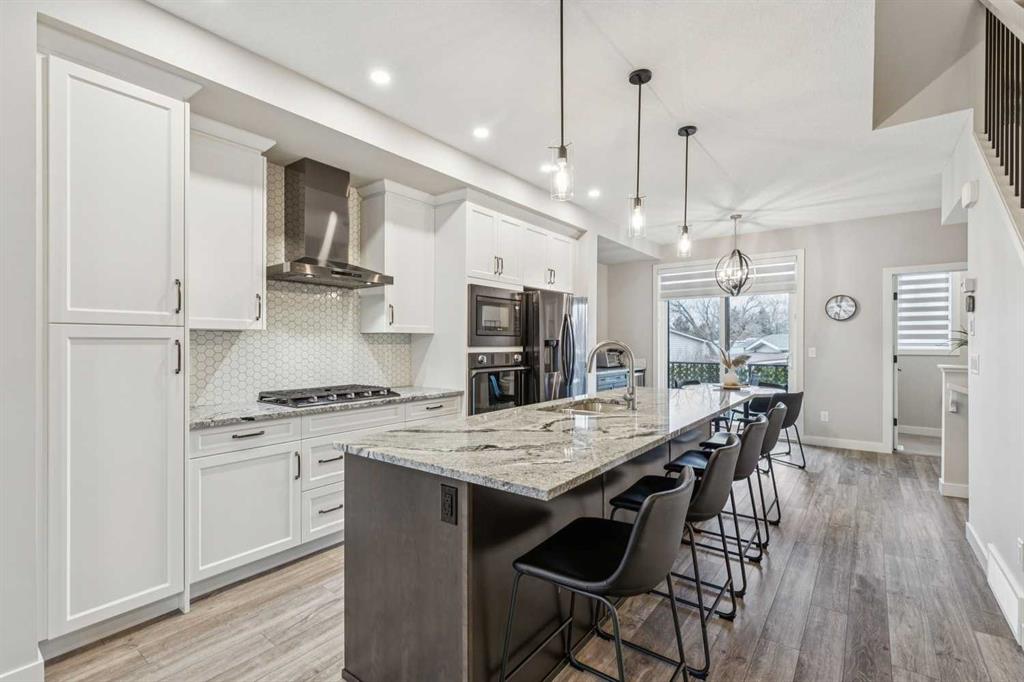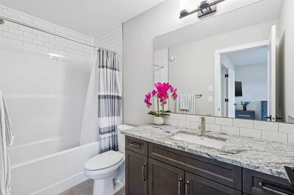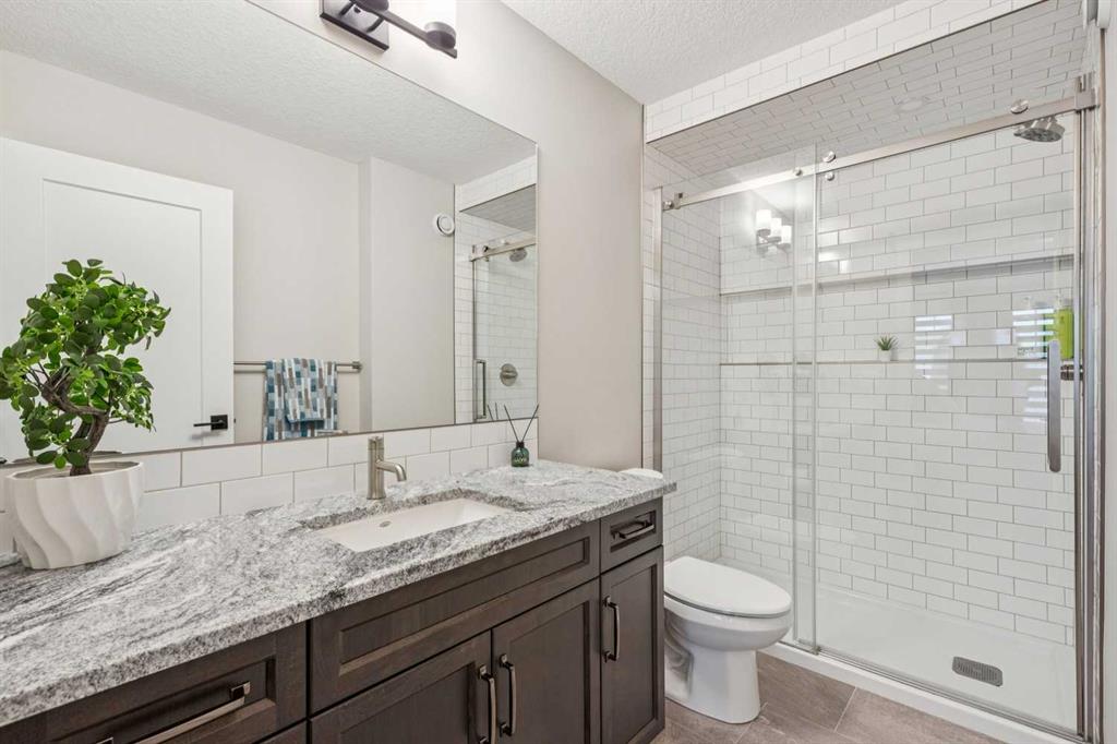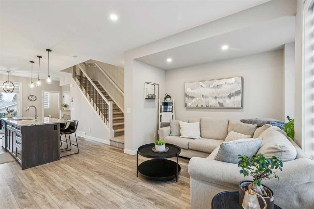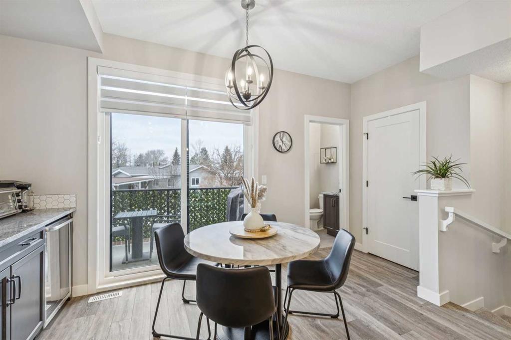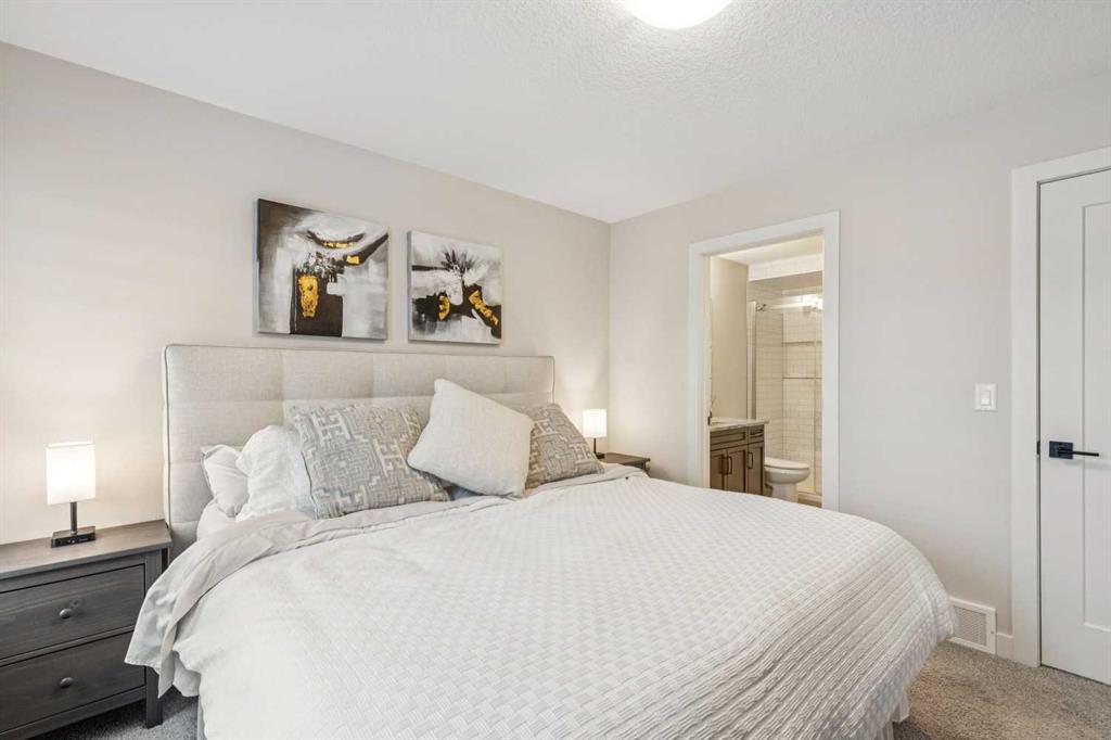 **OPEN HOUSE on Sunday, April 12th, 12:00-2:00pm** Located in the trendy & sophisticated community of Greenwich, this timeless, New York inspired brownstone townhome with 2 bedrooms, 2.5 bathrooms, & numerous upgrades is thoughtfully designed - showcasing a layout emphasizing great flow & functionality that is sure to impress. Arriving on the main floor, the premium gourmet kitchen takes centre stage; offering sleek grey stainless steel appliances (including a 5-burner gas cooktop, chimney hoodfan, built-in oven & microwave), full height shaker style cabinetry w/ crown mouldings, granite countertops (also in the bathrooms), intricate backsplash tiling, & a long full-length island with integrated breakfast bar. Together with the dedicated dining area (equipped with a built-in bar & mini fridge) & a balcony that is a sliding patio door away, be ready for any occasion, big or small! At the opposite end, entertain or relax in the spacious living room that is nicely framed by a stylish fireplace while a half bathroom smartly completes this level. As the perfect retreat, head upstairs & enjoy the luxuries of having 2 well-sized master bedroom suites, each with their own ensuite full bathrooms (one with tub/shower combo & the other with an over-sized frameless glass shower w/ full tiled niche) & walk-in closets. Upstairs laundry (full-size front loading units), large linen closet, & ample room in the hallway for further personalization finishes off this floor. From the modern light coloured palette with darker textural highlights to the large windows & the immaculate, like-new condition throughout, the details all come together to create an inviting, comfortable, & refined ambiance. Notable features include; high quality laminate flooring & tall 9’ ceilings throughout the main floor, central AC, BBQ gas line on the balcony, Ecobee smart thermostat, premium roll-up blinds already done, upgraded lighting package, water softener, central vac (w/ toe kick outlet in kitchen), & an over-sized tandem 2-car garage (insulated, drywalled, & painted w/ hot & cold hose bibs & roughed in gas line) with room for extra storage. Beyond the home, be spoiled having the Calgary Farmer’s Market, many locally owned shops, off-leash dog park, & green space/pathways all steps away. With the Bow River pathways, Winsport ski hill/multi-activity facility, & Downtown a short drive away while having quick access to Trans-Canada Highway, Stoney Tr, & the mountains makes this the ideal location for work & play. With so much to offer inside & out, come view this pristine 1st owner home today!