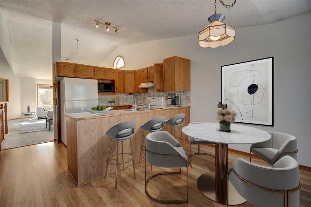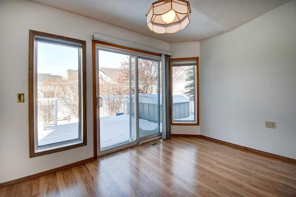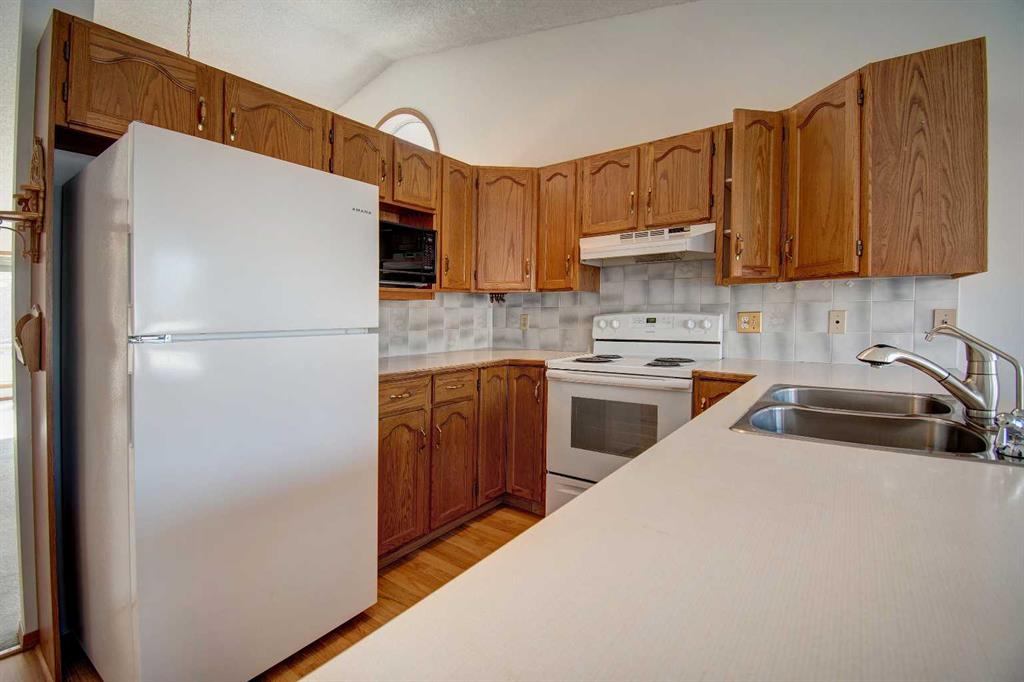 Rare opportunity in adult community in Airdrie! Situated on a CORNER LOT next to Wooside golf course, this property has a great layout and is on a fantastic lot. The Woodside COMMUNITY has lots of amenities and activities for the adult population! There is a clubhouse for the community a block away that hosts events throughout the year. The community also offers SNOW REMOVAL AND LANDSCAPING for a reasonable monthly charge. Upon entering you are greeted by VAULTED CEILINGS in the living room and an open floor plan. Thanks to the vaulted ceilings and strategically placed windows, the interior has lots of natural light. The living room also has a gas fireplace as a focal point. The open layout of the living spaces, combined with the seamless flow between indoor and outdoor areas, makes this home perfect for hosting gatherings and entertaining guests. The primary bedroom features an ENSUITE BATHROOM . The secondary bedroom is spacious and there is an additional 4 pce washroom. The ATTACHED DOUBLE GARAGE, provides ample space for vehicles and storage. There is a plenty of additional parking on the large driveway as well as the road. The finished basement offers additional living space, perfect for a variety of uses such as a recreation room, home office and offers a 3 pce ensuite. The HUGE backyard features a 12 ft long deck as well as a SHED for storage. The IN-GROUND SPRINKLER SYSTEM (“as is” as it has not been used in a couple years) offers added convenience. The appliances are newer, the blinds are 3.5 years old, the windows upstairs were changed in 2016, the shingles were changed in 2014. This property is a short walk from Woodside Golf Course. Conveniently located a short drive from Sobeys, Shoppers Drug mart, Original Joe’s Restaurant and many other amenities. At least one of the residents MUST be over 55 years old and no residents under 18 years old. This really must be seen to be appreciated! *Some photos have been digitally staged*