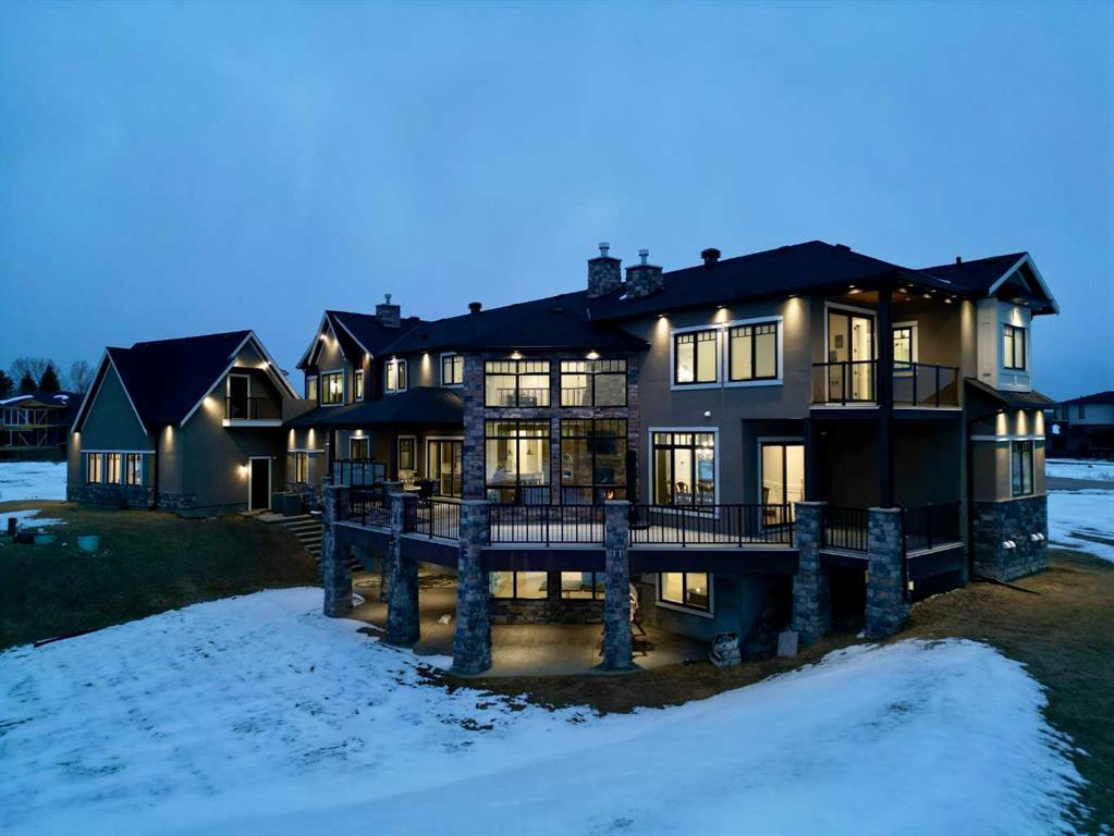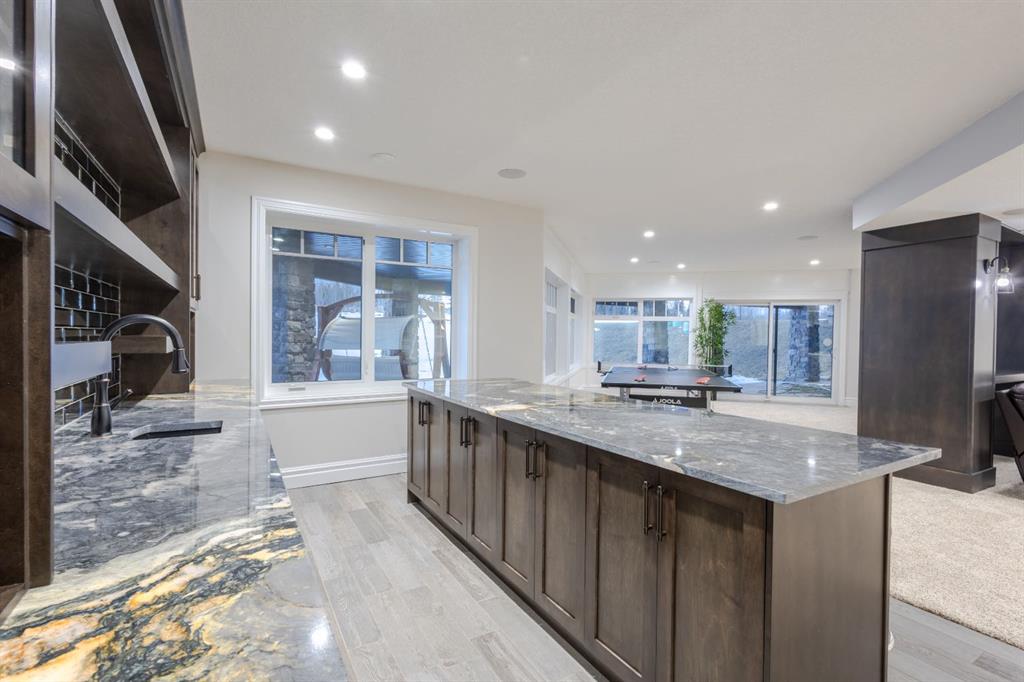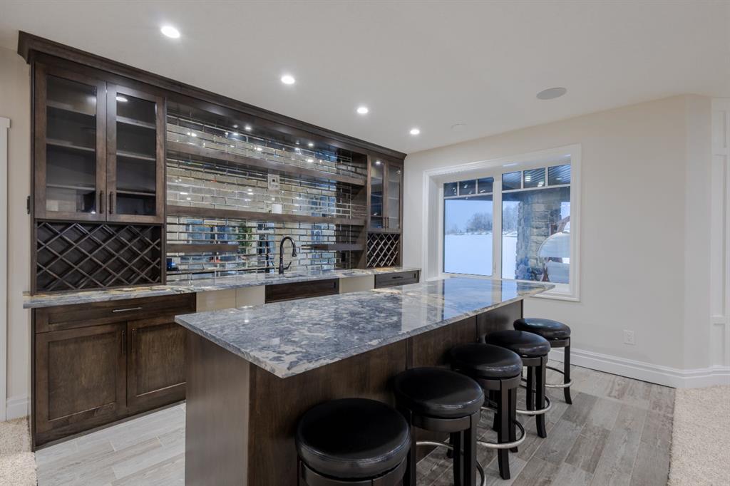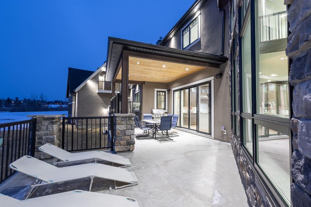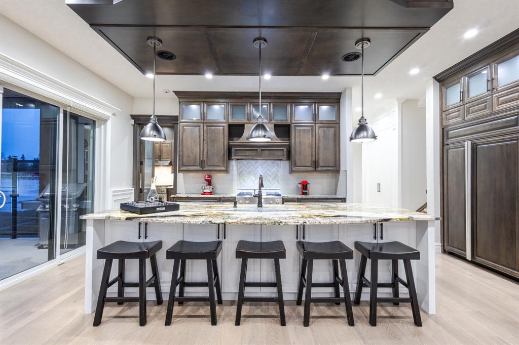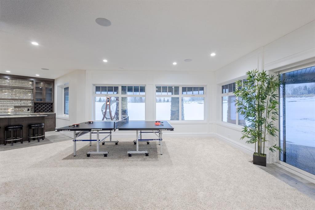 Located on two acres in the heart of prestigious Bearspaw, this exceptional custom-built estate offers over 7,000 square feet of refined living space, blending timeless elegance with modern luxury. From the moment you arrive, the grand entrance makes a lasting impression with soaring open-to-below ceilings, a breathtaking sense of scale, and stunning west-facing views that stretch toward the mountains. Expansive windows throughout the home flood the interior with natural light, enhancing the open-concept design and creating a seamless connection to the surrounding landscape. The chef-inspired kitchen is both beautiful and functional, featuring rich granite countertops, stainless steel appliances, generous bar seating, and a fully equipped spice kitchen—perfect for entertaining or everyday living. Thoughtful design continues with a convenient 2-piece bathroom on the main level. Just beyond, the living room is a true showpiece, anchored by a striking gas fireplace with stone surround and wooden mantel, while panoramic west and mountain views create an unforgettable backdrop. Step outside to the expansive west-facing wraparound deck, offering both covered and open-air spaces designed for relaxation and entertaining. With its private setting and sweeping mountain vistas, this outdoor retreat is truly one of a kind. Upstairs, the home continues to impress with an open-to-below design and a remarkable abundance of windows that showcase the incredible views. In addition to the primary retreat, there are four spacious bedrooms, two well-appointed bathrooms, and a thoughtfully designed laundry room complete with built-in cabinetry and a sink. A dedicated storage room adds even more practicality to this level. The primary suite is a luxurious sanctuary, featuring a double-sided gas fireplace, a spacious walk-in closet with custom built-ins, and a lavish 6-piece ensuite with a soaking tub, dual vanities, and premium finishes throughout. Step out onto your private balcony to take in the mountain views, or enjoy the attached flex space—perfect as an art studio, lounge, or private retreat. The fully developed walkout basement is designed for both entertainment and wellness. Enjoy movie nights in the dedicated theatre area with built-in sound system, host gatherings at the wet bar with custom built-ins, or relax in the sauna after a workout in the home gym. This level also includes in-floor heating, two additional bedrooms, a 3-piece bathroom, and direct access to the backyard. Dual staircases provide convenient and elegant access throughout the home, while features such as a water softener enhance everyday comfort. Car enthusiasts and hobbyists will appreciate the impressive heated six-car garage with ample space for storage and projects. With its unparalleled craftsmanship, luxurious finishes, and breathtaking setting with views of the northern lights and just minutes from the city, this extraordinary Bearspaw estate offers a lifestyle of sophistication and natural beauty.