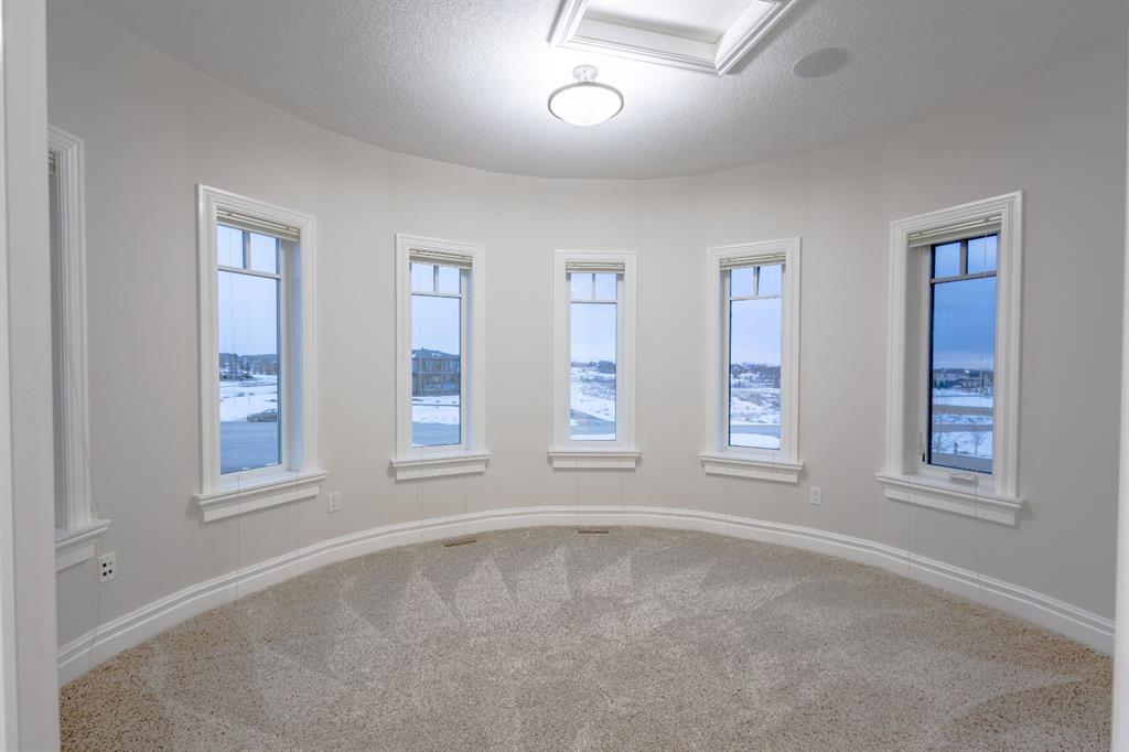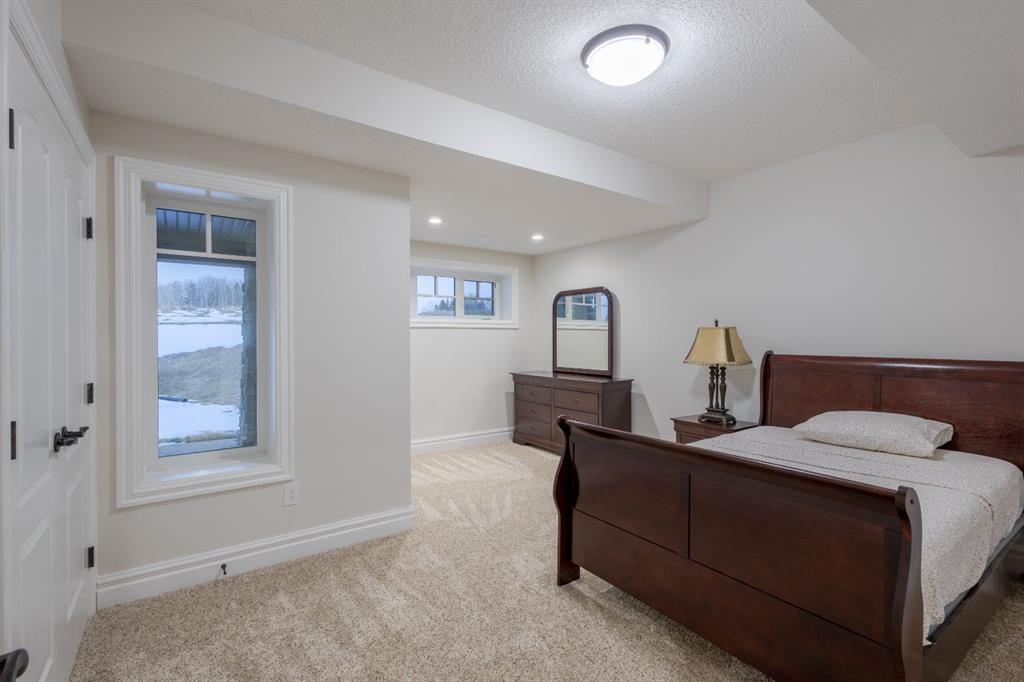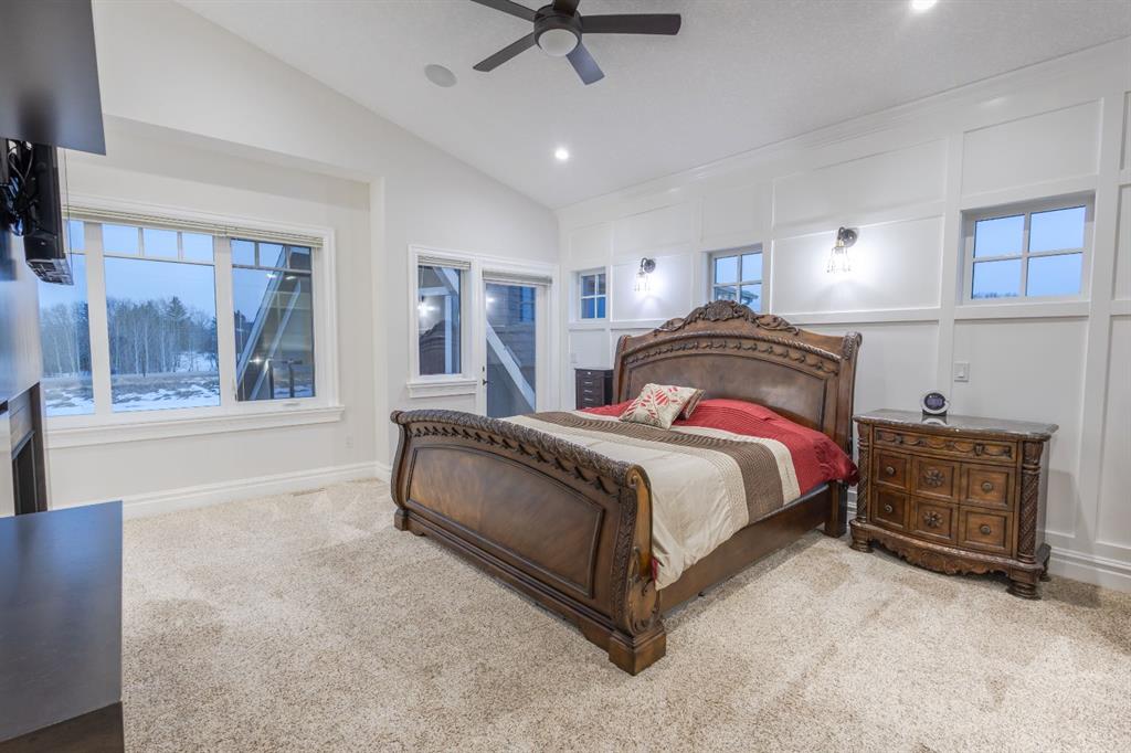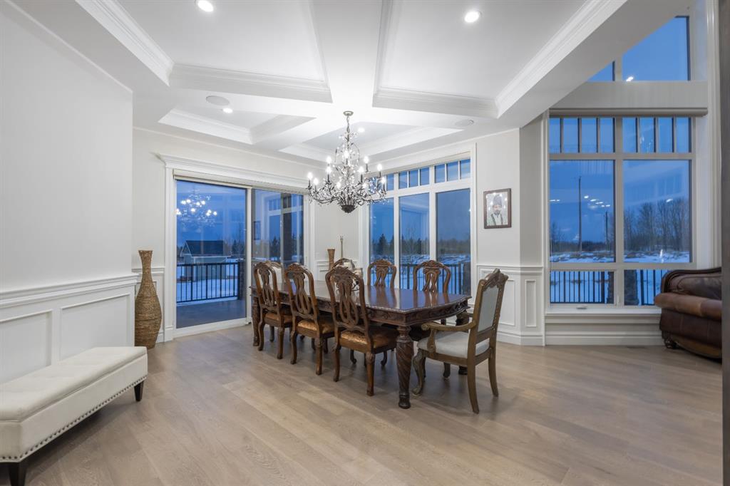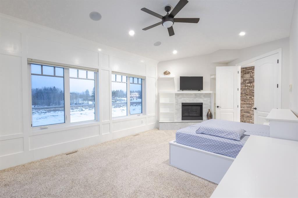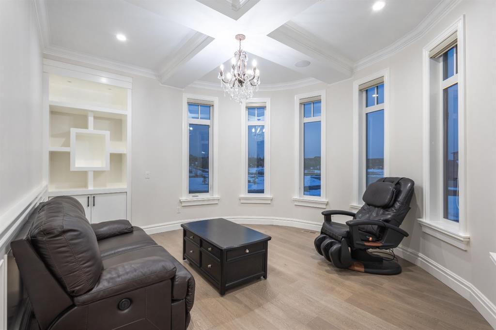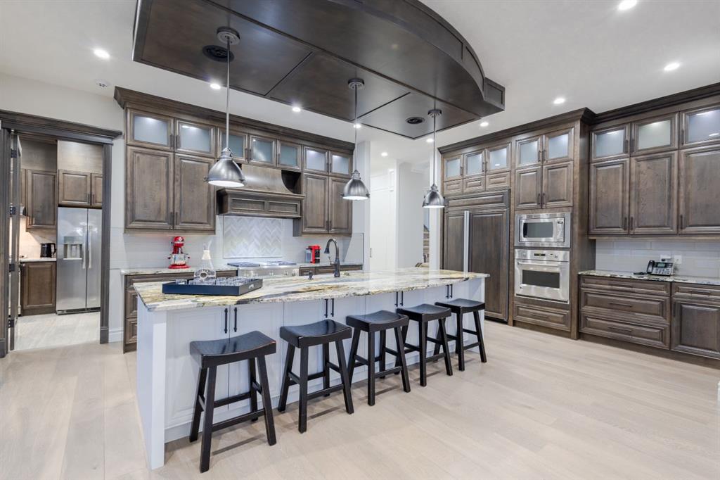 Located on two acres in the heart of prestigious Bearspaw, this exceptional custom-built estate offers over 7,000 square feet of refined living space, blending timeless elegance with modern luxury. From the moment you arrive, the grand entrance makes a lasting impression with soaring open-to-below ceilings, a breathtaking sense of scale, and stunning west-facing views that stretch toward the mountains. Expansive windows throughout the home flood the interior with natural light, enhancing the open-concept design and creating a seamless connection to the surrounding landscape. The chef-inspired kitchen is both beautiful and functional, featuring rich granite countertops, stainless steel appliances, generous bar seating, and a fully equipped spice kitchen—perfect for entertaining or everyday living. Thoughtful design continues with a convenient 2-piece bathroom on the main level. Just beyond, the living room is a true showpiece, anchored by a striking gas fireplace with stone surround and wooden mantel, while panoramic west and mountain views create an unforgettable backdrop. Step outside to the expansive west-facing wraparound deck, offering both covered and open-air spaces designed for relaxation and entertaining. With its private setting and sweeping mountain vistas, this outdoor retreat is truly one of a kind. Upstairs, the home continues to impress with an open-to-below design and a remarkable abundance of windows that showcase the incredible views. In addition to the primary retreat, there are four spacious bedrooms, two well-appointed bathrooms, and a thoughtfully designed laundry room complete with built-in cabinetry and a sink. A dedicated storage room adds even more practicality to this level. The primary suite is a luxurious sanctuary, featuring a double-sided gas fireplace, a spacious walk-in closet with custom built-ins, and a lavish 6-piece ensuite with a soaking tub, dual vanities, and premium finishes throughout. Step out onto your private balcony to take in the mountain views, or enjoy the attached flex space—perfect as an art studio, lounge, or private retreat. The fully developed walkout basement is designed for both entertainment and wellness. Enjoy movie nights in the dedicated theatre area with built-in sound system, host gatherings at the wet bar with custom built-ins, or relax in the sauna after a workout in the home gym. This level also includes in-floor heating, two additional bedrooms, a 3-piece bathroom, and direct access to the backyard. Dual staircases provide convenient and elegant access throughout the home, while features such as a water softener enhance everyday comfort. Car enthusiasts and hobbyists will appreciate the impressive heated six-car garage with ample space for storage and projects. With its unparalleled craftsmanship, luxurious finishes, and breathtaking setting with views of the northern lights and just minutes from the city, this extraordinary Bearspaw estate offers a lifestyle of sophistication and natural beauty.
