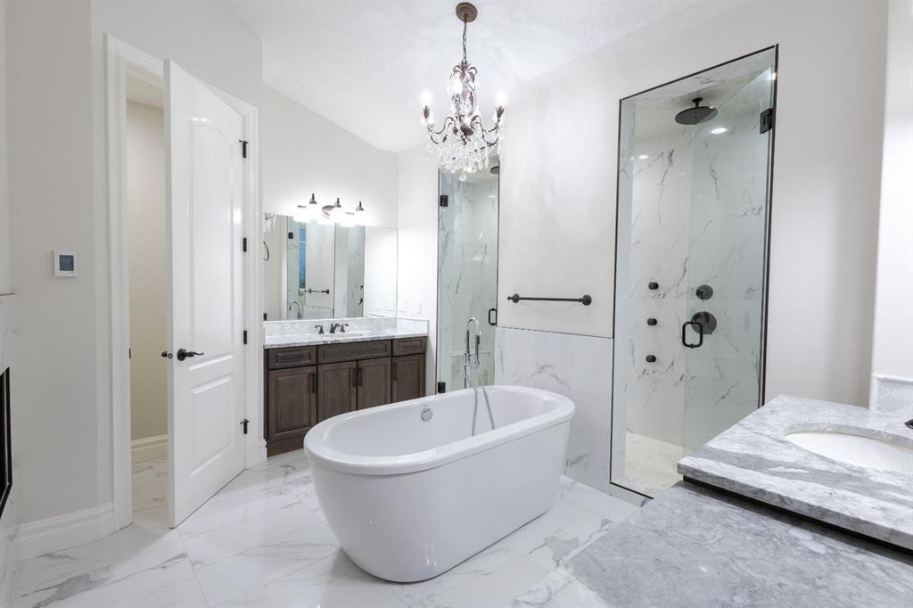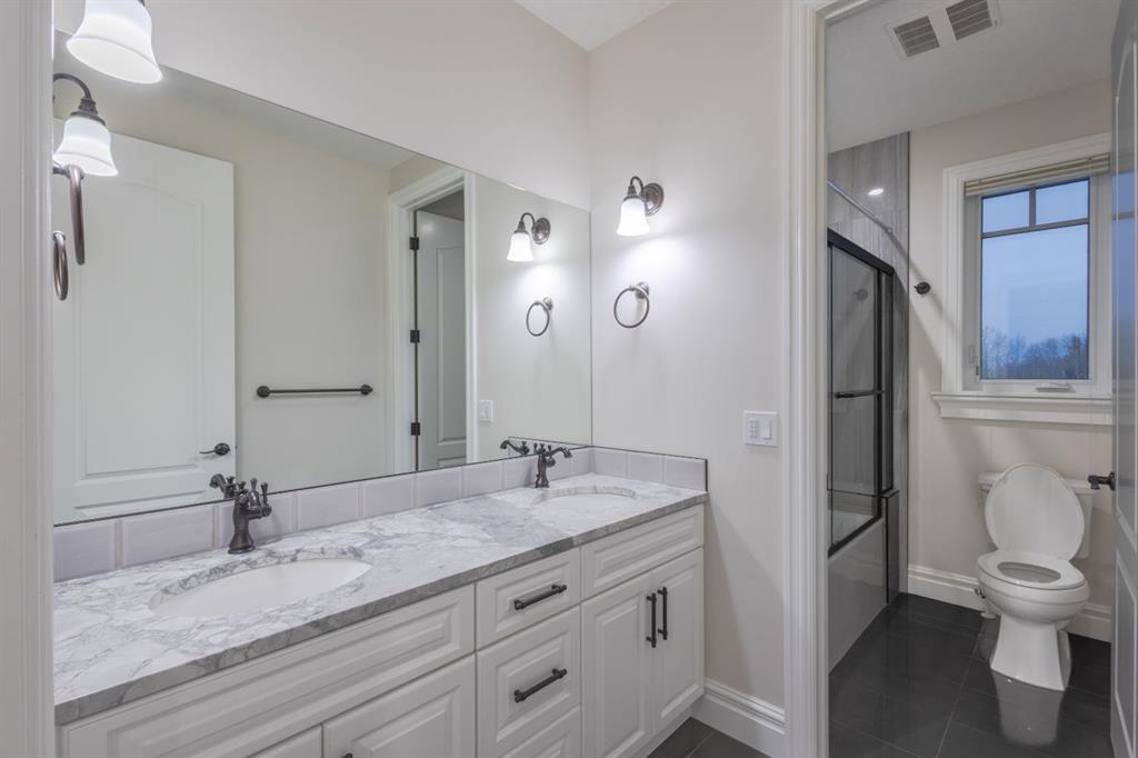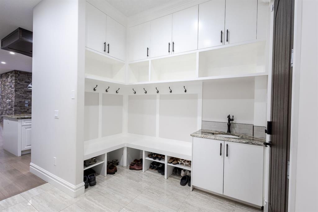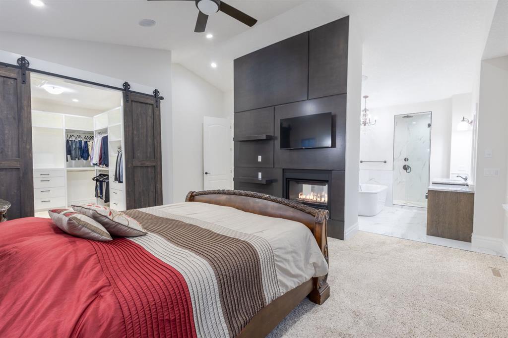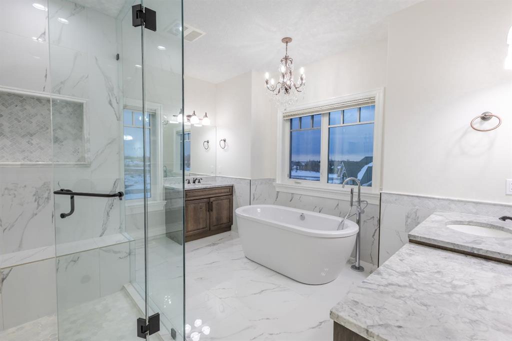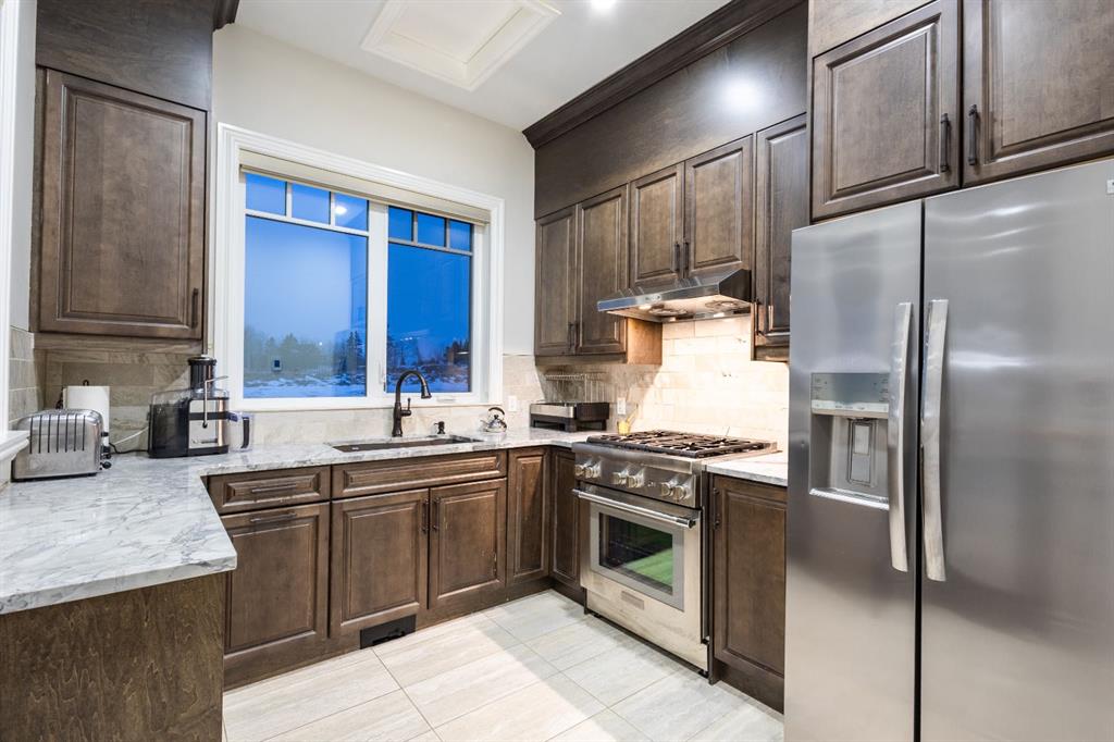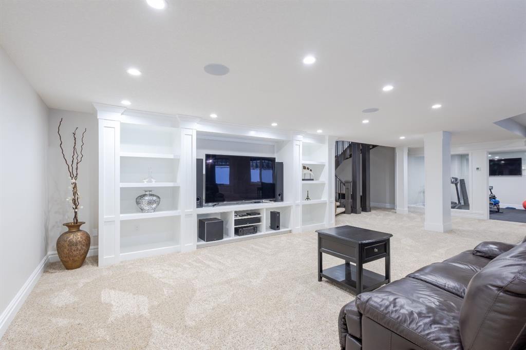 Located on two acres in the heart of prestigious Bearspaw, this exceptional custom-built estate offers over 7,000 square feet of refined living space, blending timeless elegance with modern luxury. From the moment you arrive, the grand entrance makes a lasting impression with soaring open-to-below ceilings, a breathtaking sense of scale, and stunning west-facing views that stretch toward the mountains. Expansive windows throughout the home flood the interior with natural light, enhancing the open-concept design and creating a seamless connection to the surrounding landscape. The chef-inspired kitchen is both beautiful and functional, featuring rich granite countertops, stainless steel appliances, generous bar seating, and a fully equipped spice kitchen—perfect for entertaining or everyday living. Thoughtful design continues with a convenient 2-piece bathroom on the main level. Just beyond, the living room is a true showpiece, anchored by a striking gas fireplace with stone surround and wooden mantel, while panoramic west and mountain views create an unforgettable backdrop. Step outside to the expansive west-facing wraparound deck, offering both covered and open-air spaces designed for relaxation and entertaining. With its private setting and sweeping mountain vistas, this outdoor retreat is truly one of a kind. Upstairs, the home continues to impress with an open-to-below design and a remarkable abundance of windows that showcase the incredible views. In addition to the primary retreat, there are four spacious bedrooms, two well-appointed bathrooms, and a thoughtfully designed laundry room complete with built-in cabinetry and a sink. A dedicated storage room adds even more practicality to this level. The primary suite is a luxurious sanctuary, featuring a double-sided gas fireplace, a spacious walk-in closet with custom built-ins, and a lavish 6-piece ensuite with a soaking tub, dual vanities, and premium finishes throughout. Step out onto your private balcony to take in the mountain views, or enjoy the attached flex space—perfect as an art studio, lounge, or private retreat. The fully developed walkout basement is designed for both entertainment and wellness. Enjoy movie nights in the dedicated theatre area with built-in sound system, host gatherings at the wet bar with custom built-ins, or relax in the sauna after a workout in the home gym. This level also includes in-floor heating, two additional bedrooms, a 3-piece bathroom, and direct access to the backyard. Dual staircases provide convenient and elegant access throughout the home, while features such as a water softener enhance everyday comfort. Car enthusiasts and hobbyists will appreciate the impressive heated six-car garage with ample space for storage and projects. With its unparalleled craftsmanship, luxurious finishes, and breathtaking setting with views of the northern lights and just minutes from the city, this extraordinary Bearspaw estate offers a lifestyle of sophistication and natural beauty.