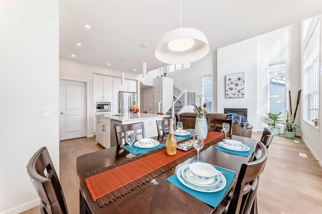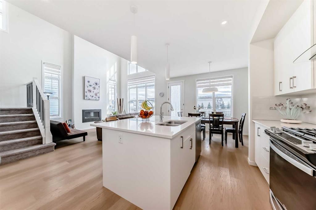 Welcome to this stunning 2025-built NEW home in the sought-after lake community of Mahogany, offering modern design, exceptional functionality, and incredible income potential. The MAIN FLOOR features a rare and versatile layout with a spacious BEDROOM and a convenient 4-piece bathroom just steps away—ideal for multi-generational living or guests. The heart of the home is the impressive living room with soaring 19-FOOT CEILING, a cozy fireplace, and expansive windows that flood the space with natural light. The bright, contemporary kitchen showcases white cabinetry, quartz countertops, a gas range, and a sleek wall-mounted chimney hood fan—perfect for both everyday living and entertaining. Upstairs, you’ll find a luxurious primary suite retreat, along with two additional generously sized bedrooms, a full 4-piece bathroom, and a versatile loft-style bonus room—perfect for a home office, play area, or media space. The fully finished basement offers a LEGAL SUITE with 9-foot ceilings, complete with its own living room, full kitchen, two bedrooms, and a full bathroom—an excellent mortgage helper or private space for extended family. Enjoy a sunny SOUTH-FACING backyard and a bright, inviting interior throughout the home. Located in the vibrant lake community of Mahogany, you’ll have access to parks, pathways, schools, shopping, and year-round lake amenities.