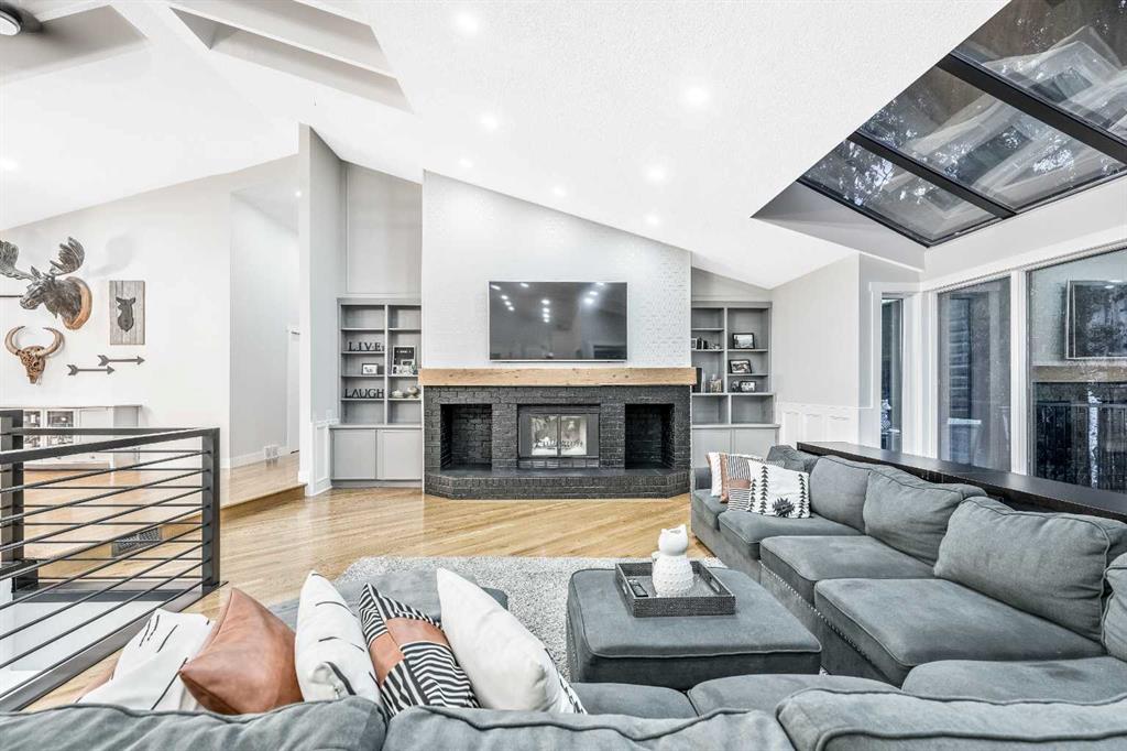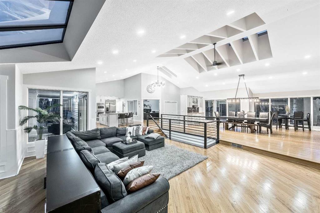 This gorgeous home boasts over 6,000 sq ft of developed living space, featuring 14ft vaulted ceilings, 5 skylights, and an open-concept layout perfect for entertaining. Enjoy hardwood and luxury vinyl plank flooring throughout the main level. A spacious office with French doors and custom built-ins welcomes you upon entry, followed by a convenient powder room and mudroom with laundry, a dog shower, and extra fridge.