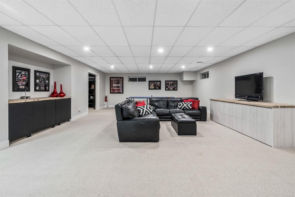The fully developed basement (over 2,800 sq ft) offers even more living space, including a family room, games area with built-ins, two additional bedrooms, a 4-piece bathroom, hobby room, potential theatre room, flex room with walk-out access, and a storage room.