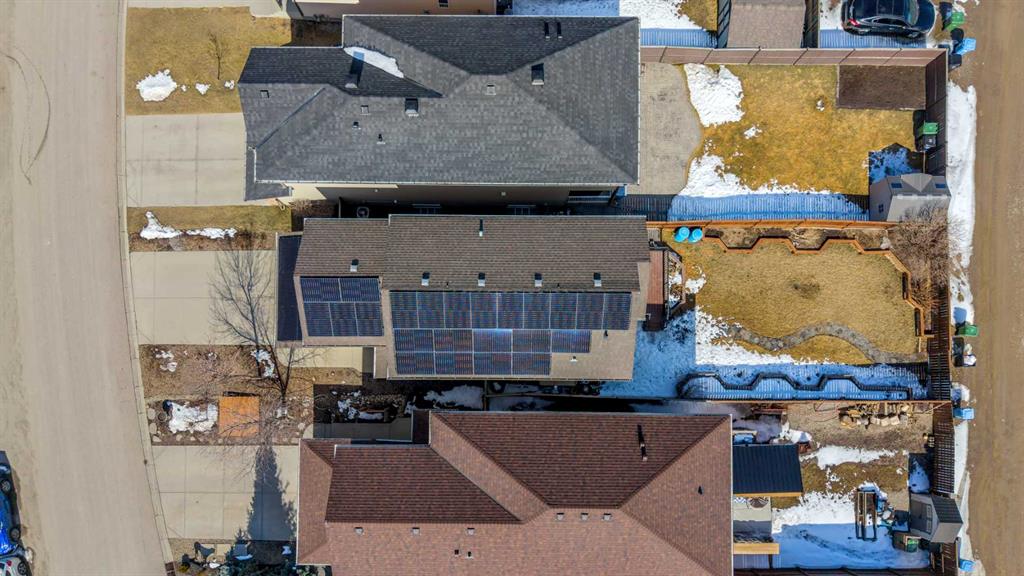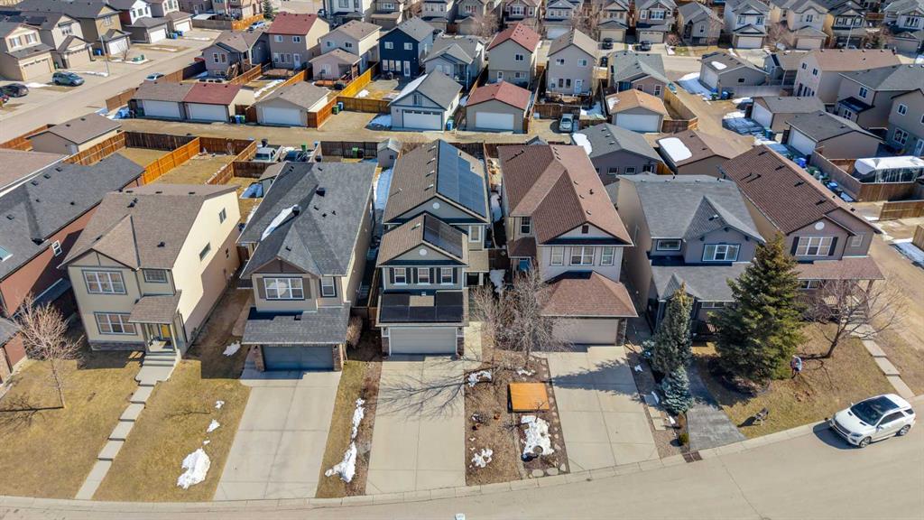 Imagine offsetting up to 100% of your utility costs with solar panels installed in 2024—an incredible advantage in today’s economy! New This well-maintained home is perfectly located within walking distance to six schools, including just a 10-minute walk to the new North Trail public high school—ideal for growing families. Upstairs, you’ll love the convenient laundry room—no more hauling baskets up and down stairs. This level features three spacious bedrooms, including a primary retreat with a full ensuite, plus another full bathroom and a bright, oversized bonus room with three large windows—perfect for movie nights, entertaining, or a kids’ hangout space. The main floor offers a thoughtfully designed open-concept layout with plenty of cabinet and counter space, a corner pantry, and a cozy gas fireplace for those cold Calgary nights. You’ll also find a 2-piece bathroom and a functional mudroom just off the garage. The basement is ready for your personal touch, featuring roughed-in plumbing, two egress windows, and durable PEX piping—making future development easy and flexible. Outside, enjoy a beautifully landscaped setting with perennials in the front yard, and a backyard that includes a mature lilac tree, raspberry bushes, rhubarb plants, and approximately 140 sq ft of dedicated planting space—perfect for gardening enthusiasts. Recent upgrades include: Fresh interior paint (2021). Kitchen updates: new faucet, fridge, microwave, stove & dishwasher (2021)