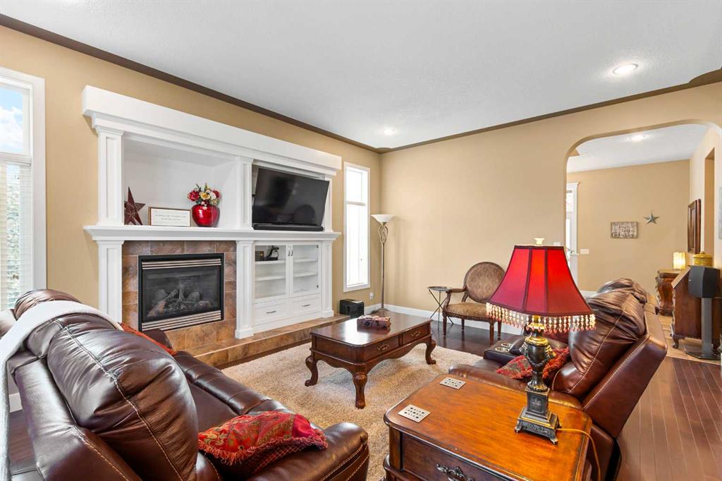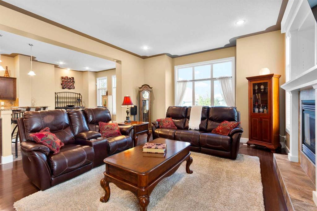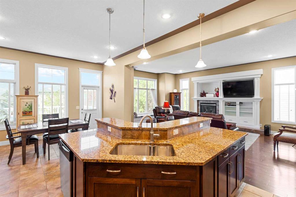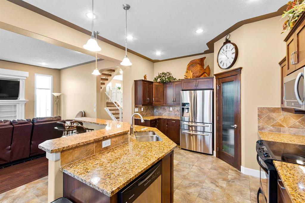 Boasting over 3,600 sq ft of beautifully finished living space, a fully developed walkout basement, and soaring 10 ft ceilings on the main level. The main floor welcomes you with a grand foyer and striking open staircase, leading into a sun-filled living room complete with hardwood floors, custom built-ins, a cozy gas fireplace, and expansive windows that flood the space with natural light. The kitchen is a true showstopper, featuring granite countertops, rich wood cabinetry, a walk-in pantry, and a large central island ideal for hosting. The dining area opens seamlessly to an upper deck. Upstairs, the large bonus room stands out with its vaulted ceiling, creating a bright and welcoming space to relax. You will also find 2 generously sized bedrooms, a full bath, and a spacious laundry room with plenty of storage. The primary suite is your private escape with a vaulted ceiling, a charming window bench, a spa-inspired ensuite with soaker tub and separate shower, plus a walk-in closet. The fully finished walkout basement adds a 4th bedroom, full bathroom, ample storage, and a large family room with direct access to your backyard oasis. Mature trees, an exposed aggregate patio, and a dog run create a space that’s as functional as it is inviting. Added features include central A/C, a garage with abundant storage, and a quiet cul-de-sac location. Living in King’s Heights means enjoying scenic walking paths, nearby playgrounds, great schools, and easy access to shopping, dining, and commuter routes. This is a home you truly need to experience in person!