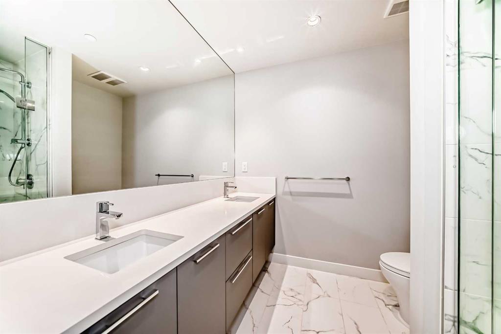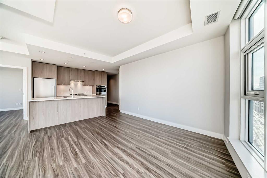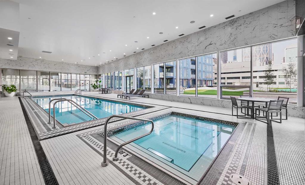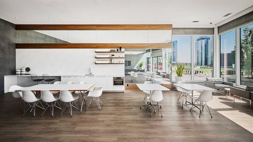 Experience the pinnacle of modern elegance in this expansive suite, in the Premium building Arris Residences. From this lofty vantage point, you'll be mesmerized by unparalleled city and river views. Inside, an open living space awaits, graced with floor-to-ceiling windows that flood the room with natural light and offer breathtaking vista views at every turn. The generously sized living and dining areas seamlessly meld with the gourmet kitchen, featuring exquisite quartz countertops, a welcoming island with a breakfast bar, custom cabinetry, and a suite of full-size stainless-steel appliances including a gas cooktop. It's a culinary haven perfect for hosting and entertaining. The primary bedroom is a genuine sanctuary, boasting a spacious walk-in closet and a spa-inspired four-piece ensuite with dual sinks and an oversized glass-enclosed shower. An additional well-appointed second bedroom and a four-piece bathroom off the foyer ensure comfort and convenience for guests. For those in need of a private workspace or den, a secluded office provides a tranquil setting for productivity. This exceptional residence also includes a private balcony, central air conditioning, full size in-suite laundry, parking space(EV options available), and a designated storage locker. Arris is a community that mirrors your lifestyle and values, offering an urban experience brimming with amenities like no other. Enjoy access to an indoor pool, hot tub, steam and sauna rooms, premium fitness facilities, and social spaces. Additionally, you have direct access to over 170,000 square feet of essential services, including the new urban-format Real Canadian Superstore and various lifestyle retailers, all conveniently located within the building itself.