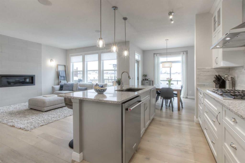Discover this exceptional home on a quiet street in spectacular Silverado, backing onto a green space and just steps from the school. This thoughtfully designed 3-bedroom, 4-bathroom home offers more than 2,800 sq ft of developed living space, perfect for both entertaining and everyday living. The main floor boasts 9-ft ceilings and an open-concept layout, featuring a beautifully updated kitchen with ceiling-height cabinetry, built-in microwave and oven, stone countertops, and a large island with extra seating. The kitchen flows seamlessly into the dedicated dining area and spacious living room, complete with a stunning gas fireplace. Upstairs, enjoy a large bonus family room and office space, along with three bright bedrooms incuding the primary suite with a walk-in closet and luxurious 5-piece ensuite with dual sinks, glass shower, and soaker tub. The landscaped outdoor area is perfect for family fun and relaxation, featuring a deck with BBQ gas line, exterior hot water tap, low-maintenance artificial turf in the front yard, and a backyard putting green. Fully fenced, the property also offers a private gate to the green space and schoolyard. Additional highlights include main floor laundry, central air conditioning, new hardwood floors (2024) newer upper-floor carpet (2022), and a newer roof (2021). An outstanding family home in a highly sought-after location, close to schools, parks, Spruce Meadows, local amenities and easy access to Stoney Trail.