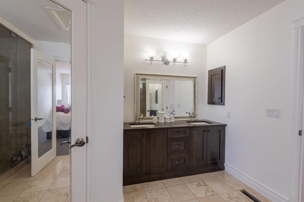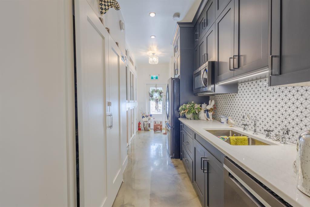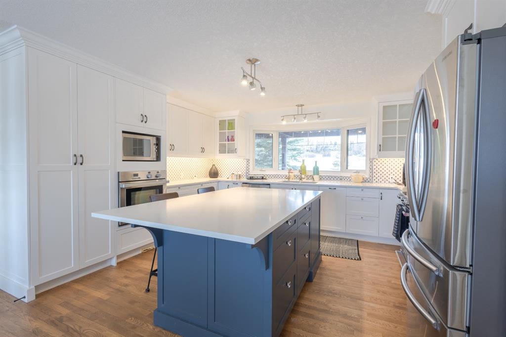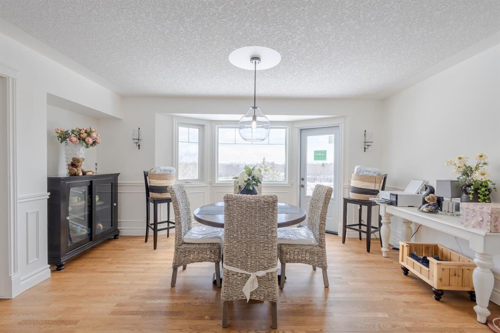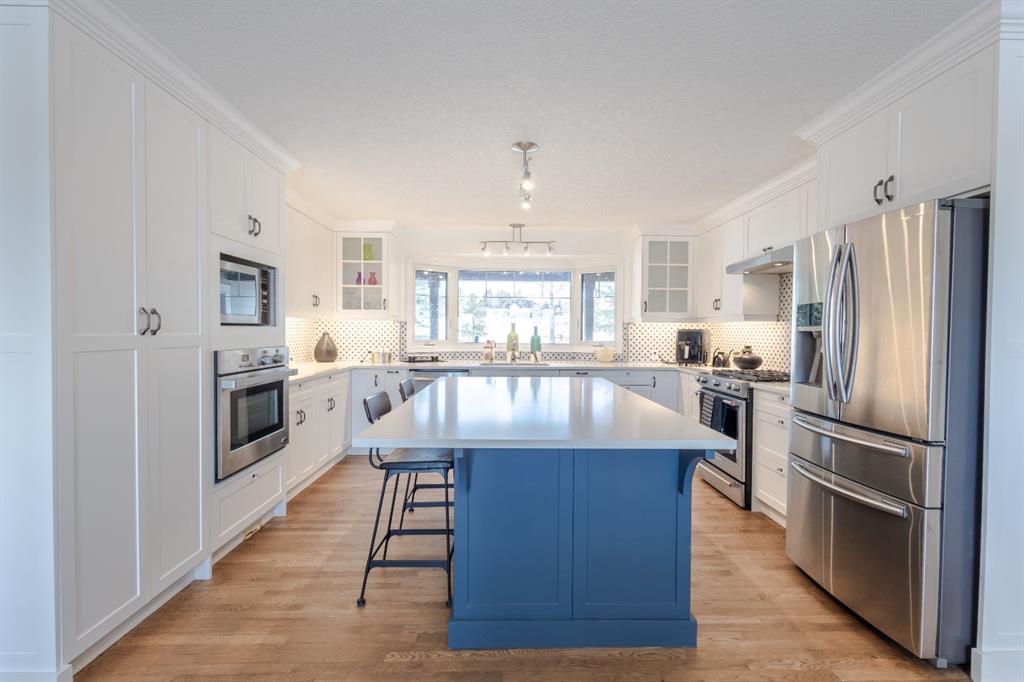 Nestled on a breathtaking 5.46 acre parcel, this exceptional acreage property offers the perfect blend of natural beauty, functional space, and refined comfort. Boasting incredible curb appeal, the home welcomes you with a charming, expansive front porch—an ideal spot to relax and take in the peaceful surroundings. Thoughtfully designed front garden beds add character, while a massive wraparound driveway provides convenience and an impressive sense of arrival. The property itself is truly remarkable, featuring gently rolling hills, mature trees, and fencing that enhances both privacy and usability. Adding unique value, the acreage is home to Bearspaw’s Poshpaws Luxury Cat Resort, a well-appointed space complete with its own 2-piece bathroom and a functional kitchenette equipped with a dishwasher, fridge, microwave, and sink. Inside, the heart of the home is the stunning kitchen, designed for both everyday living and entertaining. It features a large central island with breakfast bar seating, sleek quartz countertops, stainless steel appliances, and a gas range stove for the home chef. A window above the sink frames picturesque views of the front yard, while a spacious pantry ensures ample storage. Adjacent to the kitchen, the bright and inviting eating nook is filled with natural light and offers a seamless, open-concept flow—ideal for casual meals and family gatherings. The living room is equally impressive, highlighted by a vaulted ceiling that enhances the sense of space, along with a cozy gas fireplace complete with a mantle and elegant stone surround. The primary bedroom is a peaceful retreat, generously sized and overlooking the private backyard. The luxurious 5-piece ensuite includes a dual vanity, stand-alone shower, and a walk-in closet, creating a spa-like experience at home. A convenient main floor laundry room adds practicality, featuring a sink and abundant counter space for organization. The fully developed walkout basement is bright and welcoming, with large windows and direct access to the backyard. It offers a spacious family room, two additional bedrooms, and a shared 4-piece bathroom. A dedicated gym space provides flexibility and can easily be converted into a fourth bedroom with its own walk-in closet. Additional features include two furnaces, a water softener, central vacuum system, and a new septic tank—ensuring comfort and peace of mind. This extraordinary property delivers the tranquility of country living with thoughtful amenities and endless potential.
