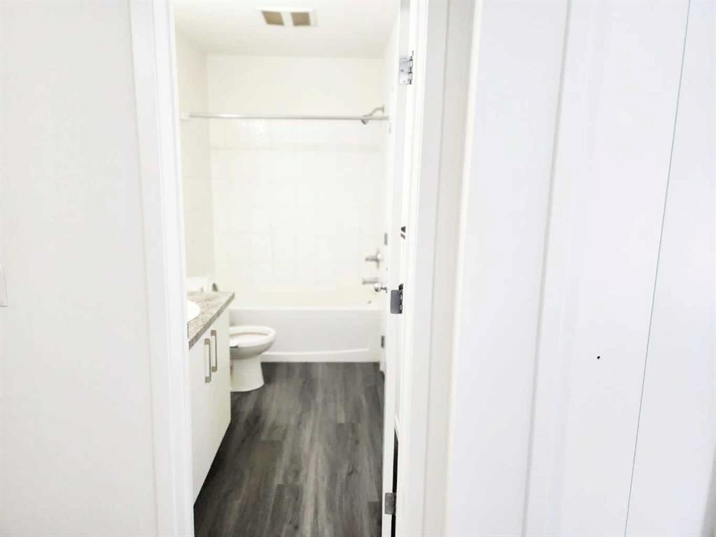 Spacious living and dining area with access to a private Exit door, facing to front side of the building with main floor. The primary bedroom includes a walk-through closet and ensuite. Second bedroom and full bath provide great flexibility for guests or roommates.