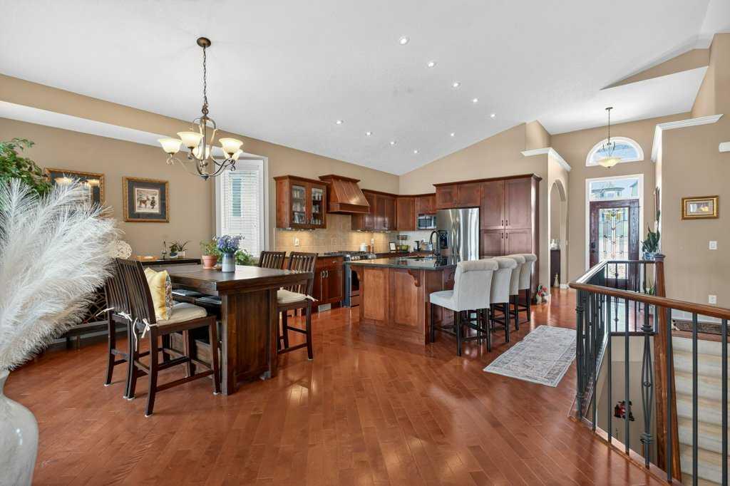Perched in a prime SW-facing location, this exceptional walkout bungalow offers unobstructed panoramic views of the Rocky Mountains, Bow River valley, golf course, and the Town of Cochrane. With nearly 3,200 sq. ft. of developed living space, this impeccably maintained home blends timeless design with modern comfort.