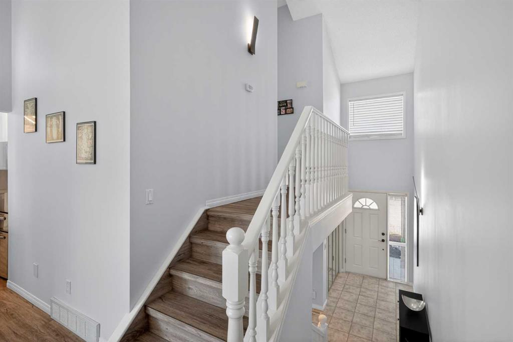 Beautiful 3-bedroom, 3 full bathroom property with a double attached garage, double driveway, and a double-tiered private deck in the back! This great house is spacious, and you'll see that the moment you walk in the front door to the foyer. Just up the stairs to your main level - an incredibly practical layout with a cozy living room crowned with a corner gas fireplace, a dining nook next to the patio doors, and of course, the main attraction, the kitchen. Savour the delightful and stylishly renovated kitchen featuring new quartz countertops, backsplash, new appliances, and cabinets and drawers galore - some equipped with pull-out systems, making storage a dream. Notice the upgraded lighting here and throughout the house, which also complements everything from the soaring (nearly 16' in places) ceilings to the new vinyl plank floors on the main and upper level. Up another short flight of stairs you'll find a couple of bedrooms and two full bathrooms. The primary bedroom features a renovated three piece ensuite bathroom, a walk-in closet and those grand high ceilings. An additional bedroom (or office) and a full bathroom/laundry room round out this floor. The basement has a sprawling family room, a large bedroom, full bathroom and big bright windows. Enjoy your choice of the lower or upper back deck in privacy! This home is completely move-in ready with all the upgrades done for you and even prepared for summer with central air-conditioning.