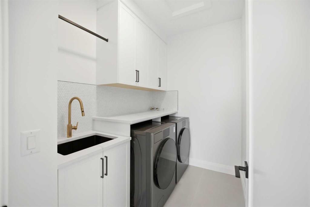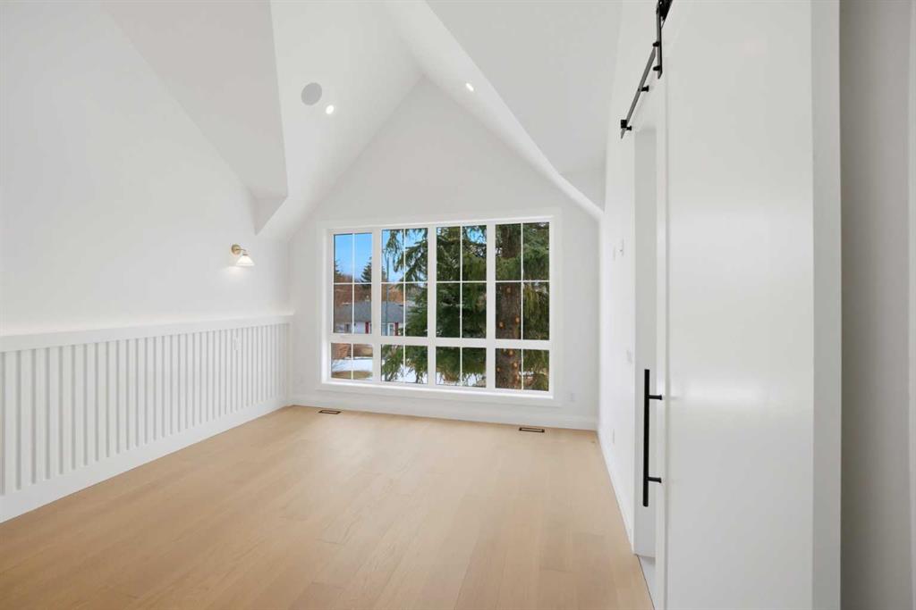 Upstairs, you’ll find three generously sized bedrooms, each thoughtfully designed to provide comfort and privacy. This level features three full bathrooms, a rare and highly desirable feature, along with a conveniently located laundry room for added ease. The primary bedroom serves as a luxurious retreat, complete with a vaulted ceiling that enhances the sense of space, a large walk-in closet, and a spa-inspired 5-piece ensuite featuring high-end finishes, dual vanities, a soaker tub, and a separate shower.