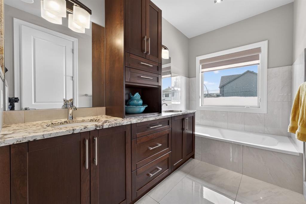 primary retreat complete with a spa-inspired 5-piece ensuite featuring a soaker tub, oversized