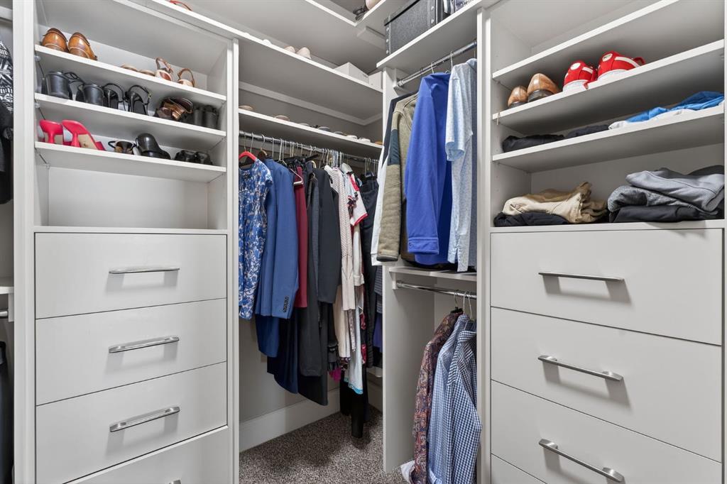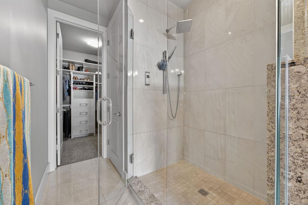 walk-in shower, and a spacious walk-in closet with custom built-ins. Two additional generously