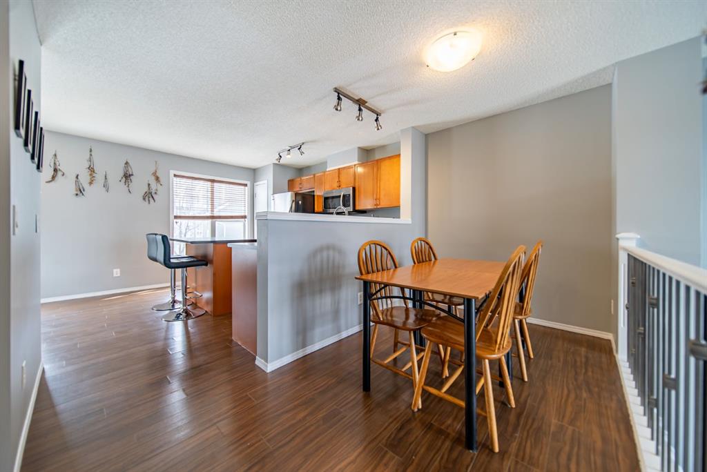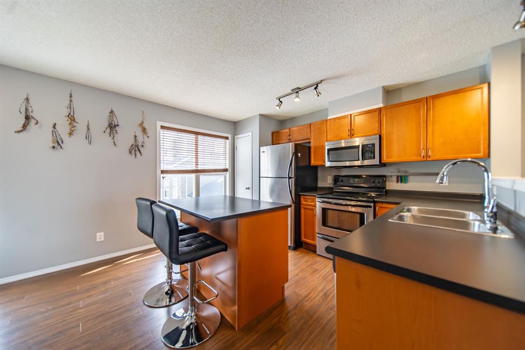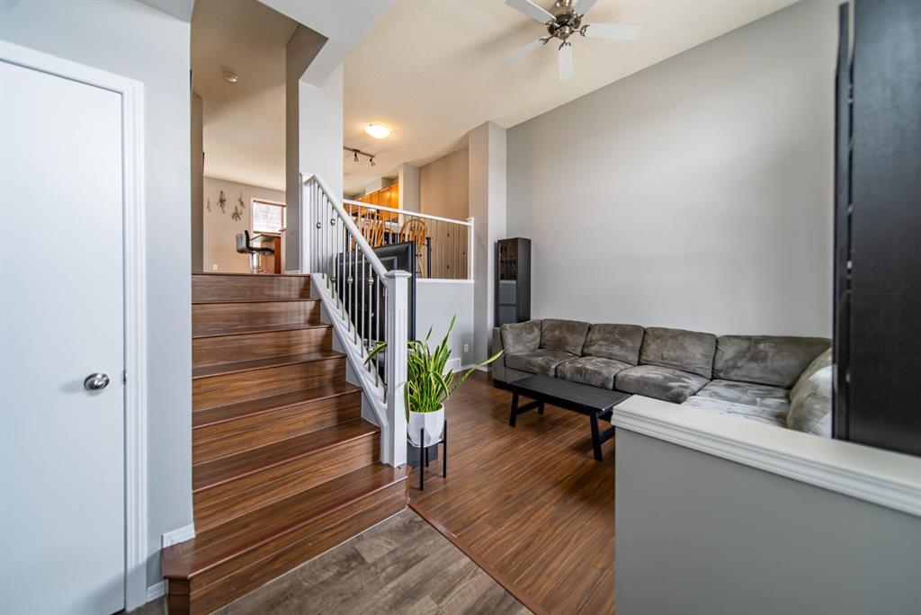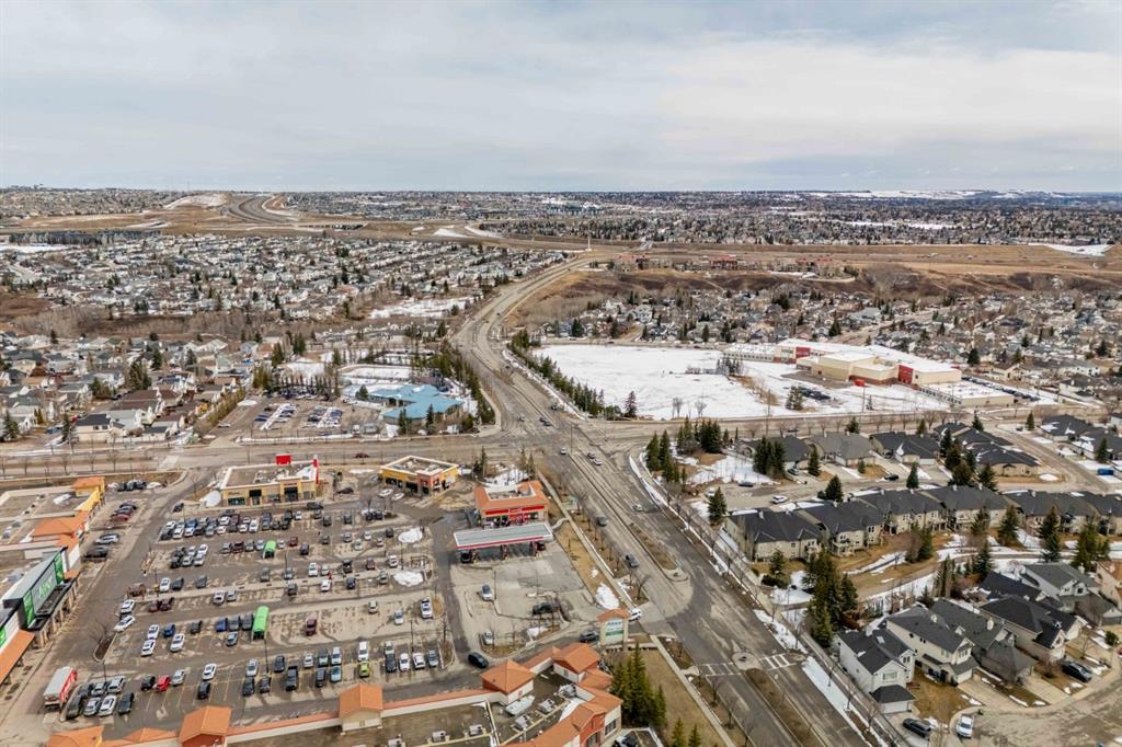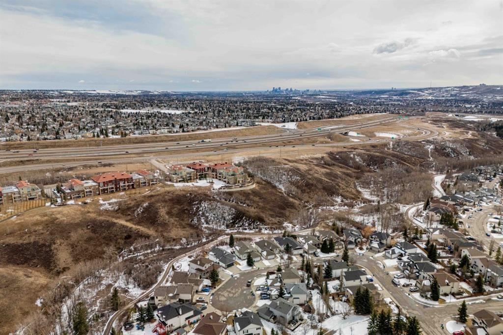 Welcome to this beautifully updated end-unit townhome, ideally located in one of the best spots in the complex with unobstructed panoramic mountain views. Offering over 1,100 sq ft, this home features a functional dual primary bedroom layout, each with walk-in closets and private 4-piece ensuites. The main floor is bright and open with a soaring 14-foot ceiling in the living room, a spacious dining area, and a well-appointed kitchen complete with a centre island, stainless steel appliances, and full pantry. Enjoy your sunny west-facing front patio, the perfect place to take in stunning views of 12 Mile Coulee, Lynx Ridge Golf Course, and the Rocky Mountains. The lower level offers a large storage/laundry area and direct access to the double attached garage. Ideally located close to schools, parks, pathways, shopping, restaurants, and the Tuscany Club, this home offers exceptional value in a sought-after community.