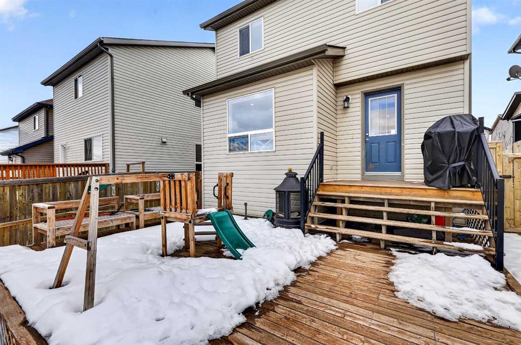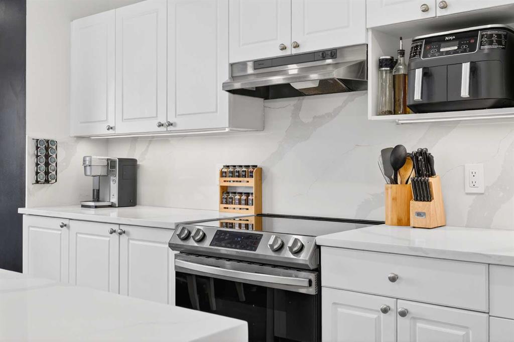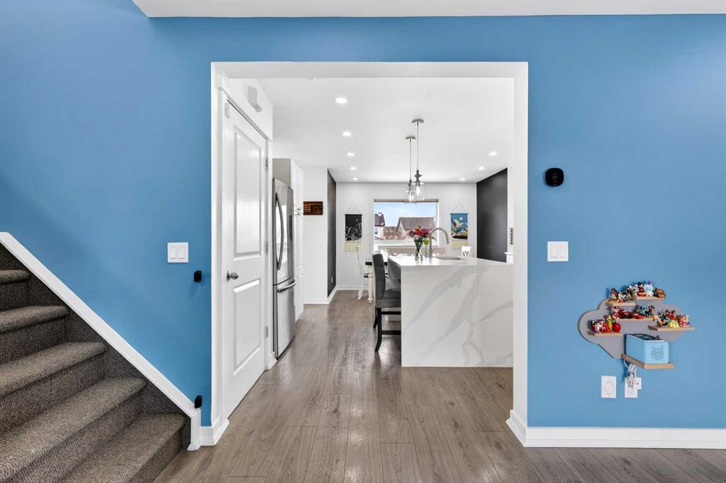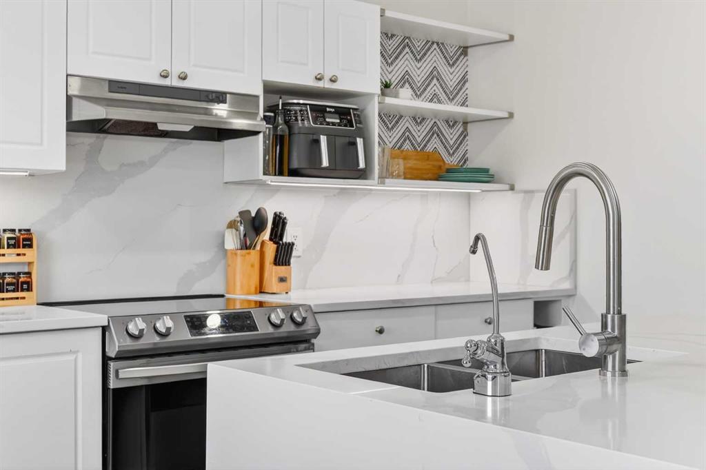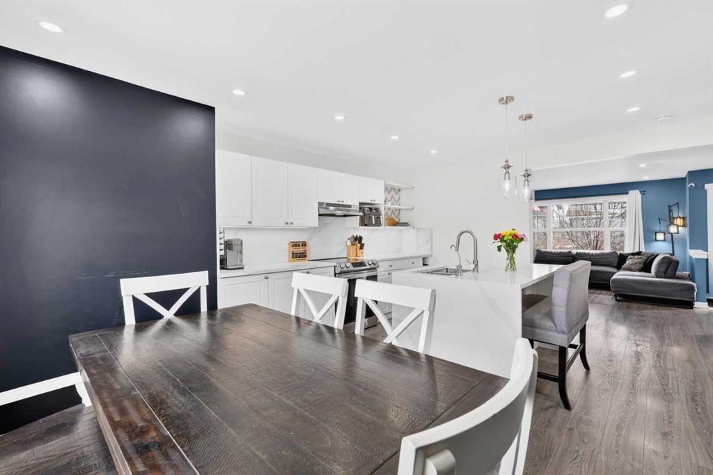 Open House Sunday April 12th 11:00 am - 1:00pm. Start each day on the expansive south-facing front porch where sunshine and neighborhood charm set a welcoming tone. Positioned kitty-corner to a green space and a walking path, this move-in ready home blends everyday comfort with immediate access to outdoor enjoyment. Step inside to an open-concept main level where durable laminate flooring and added pot lighting enhance both function and brightness. Relaxation is invited in the living area where oversized windows draw natural light inward, shaping a comfortable setting suited to quiet evenings or time spent with guests. Effortlessly prepare meals in the beautiful, chef’s dream kitchen where quartz counters, a waterfall island and stainless-steel appliances bring together style and practicality. Hosting is simplified in the adjacent dining area that keeps conversation flowing while maintaining clear sightlines across the main level. Daily routines are easily organized at the rear mudroom, where a privately tucked away powder room lets you easily clean up upon entry. The laminate flooring carries through to the upper level with no carpet, contributing to easy maintenance and a cohesive look. At the end of the day, recharge in the primary retreat that accommodates a walk-in closet and a private ensuite for a true owner’s escape. Two additional bedrooms introduce flexibility for family living, overnight visitors or a dedicated workspace, while a full 4-piece bathroom completes the upper level. Plan future possibilities in the unfinished basement that presents generous storage along with space ready for customization. Enjoy time spent outdoors on the large 2-tier deck that encourages barbecues and seasonal downtime while the fenced yard gives kids and pets room to play freely. Park vehicles securely in the double detached garage accessed from the paved back lane, adding everyday convenience. Phenomenally located within walking distance to nearby shops, pathways and parks while quick connections to schools and Yankee Valley Boulevard support an easy commute. Truly an outstanding location for this beautiful, move-in ready home!