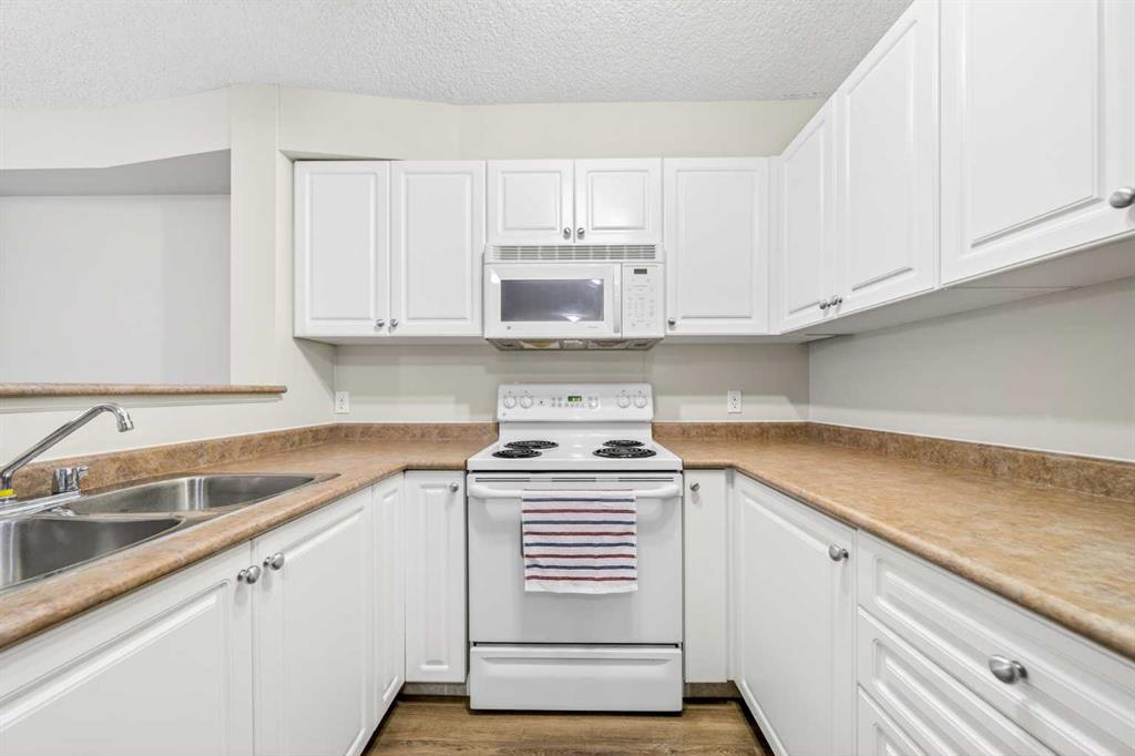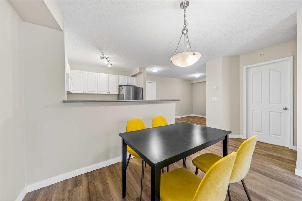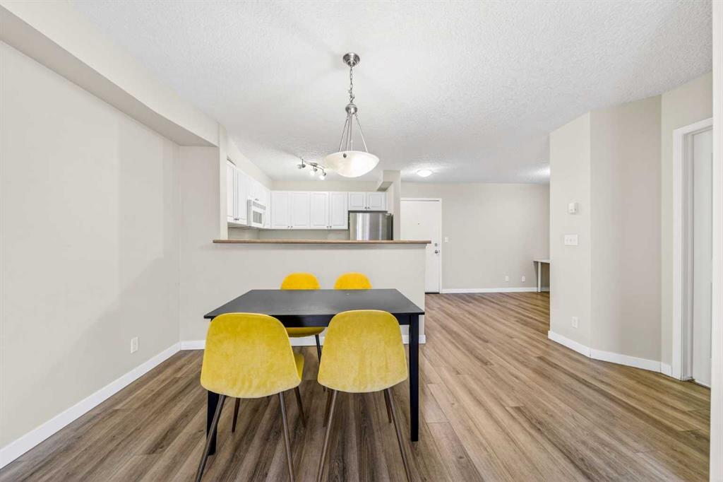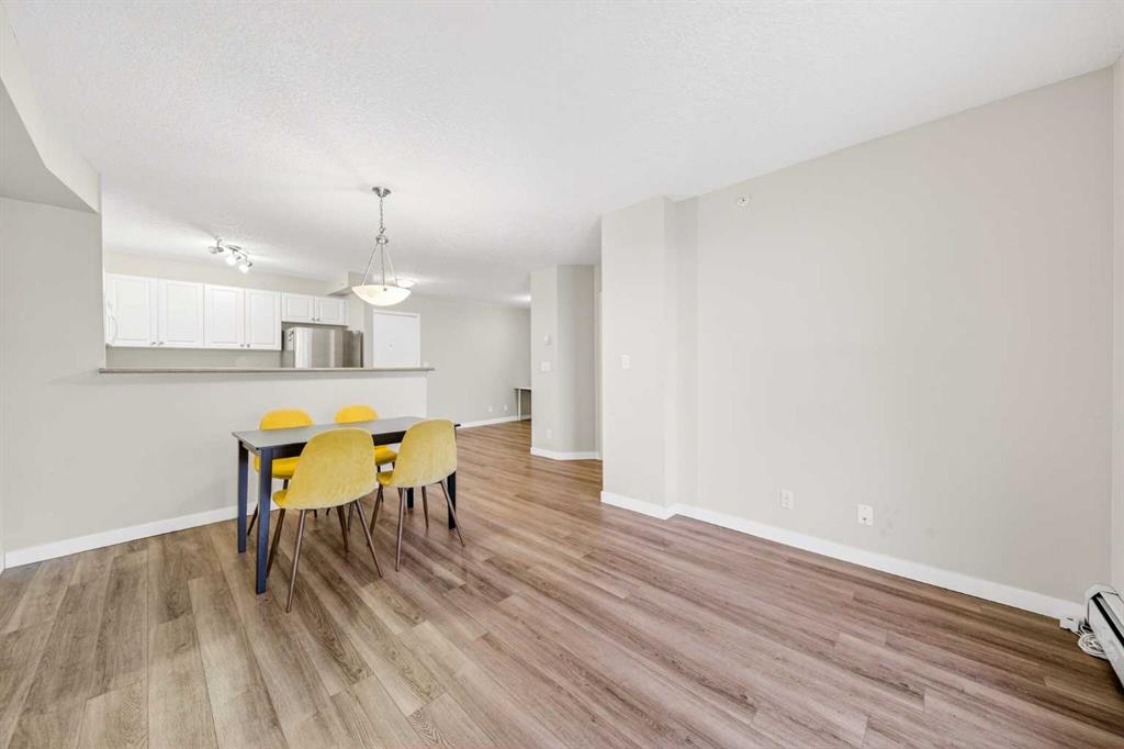 This 11th-floor 1 bedroom + den unit offers a bright, open layout with newer laminate flooring and large windows that bring in plenty of natural light. The living room opens onto a covered balcony where you can take in city and mountain views—perfect for unwinding after a long day.