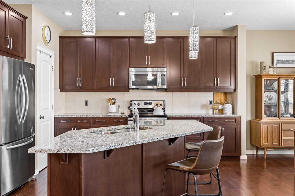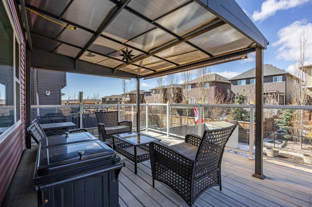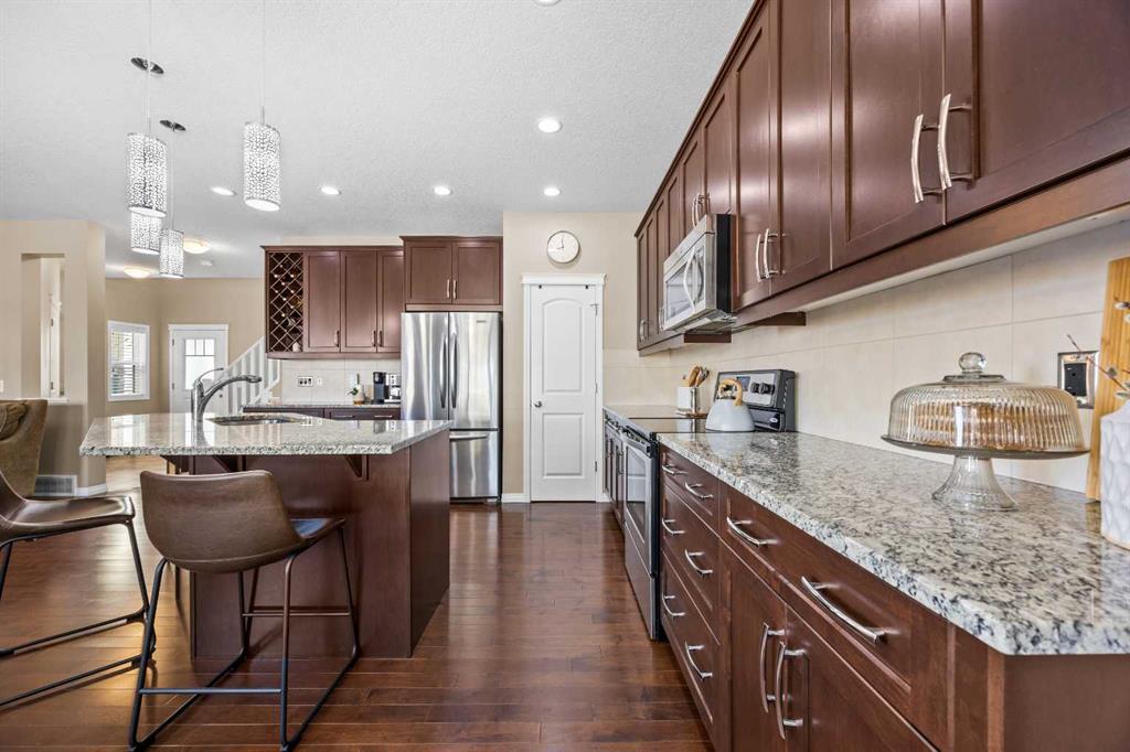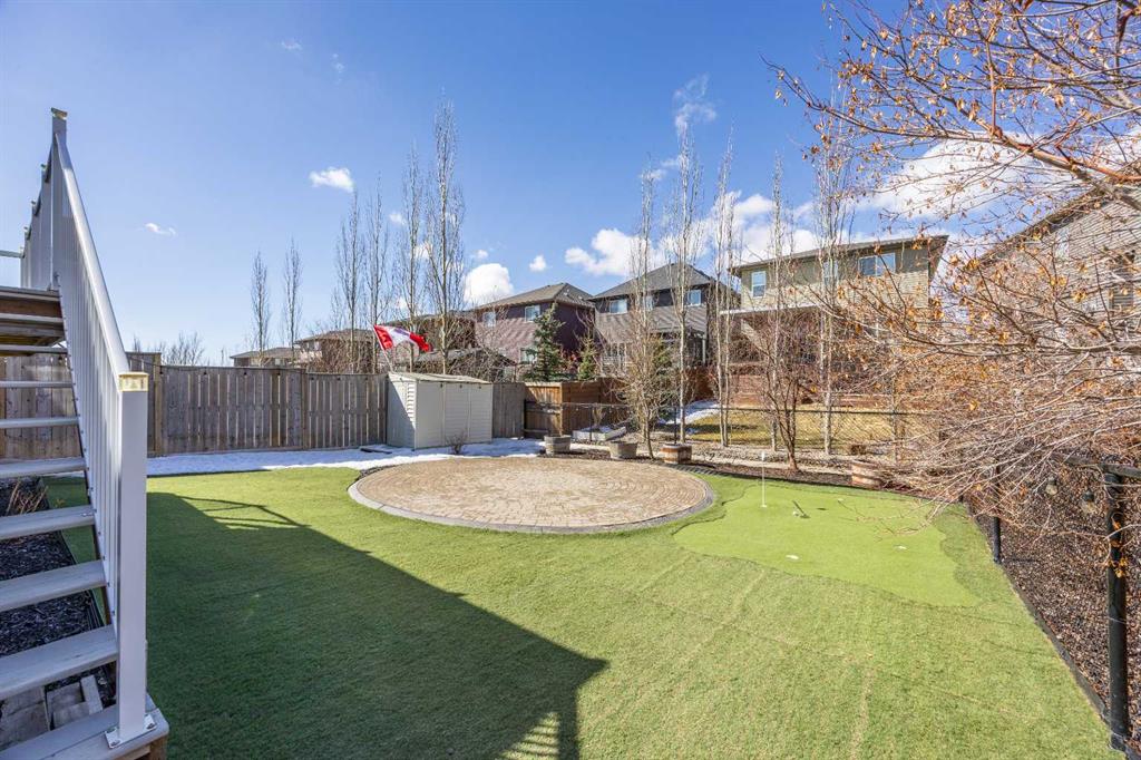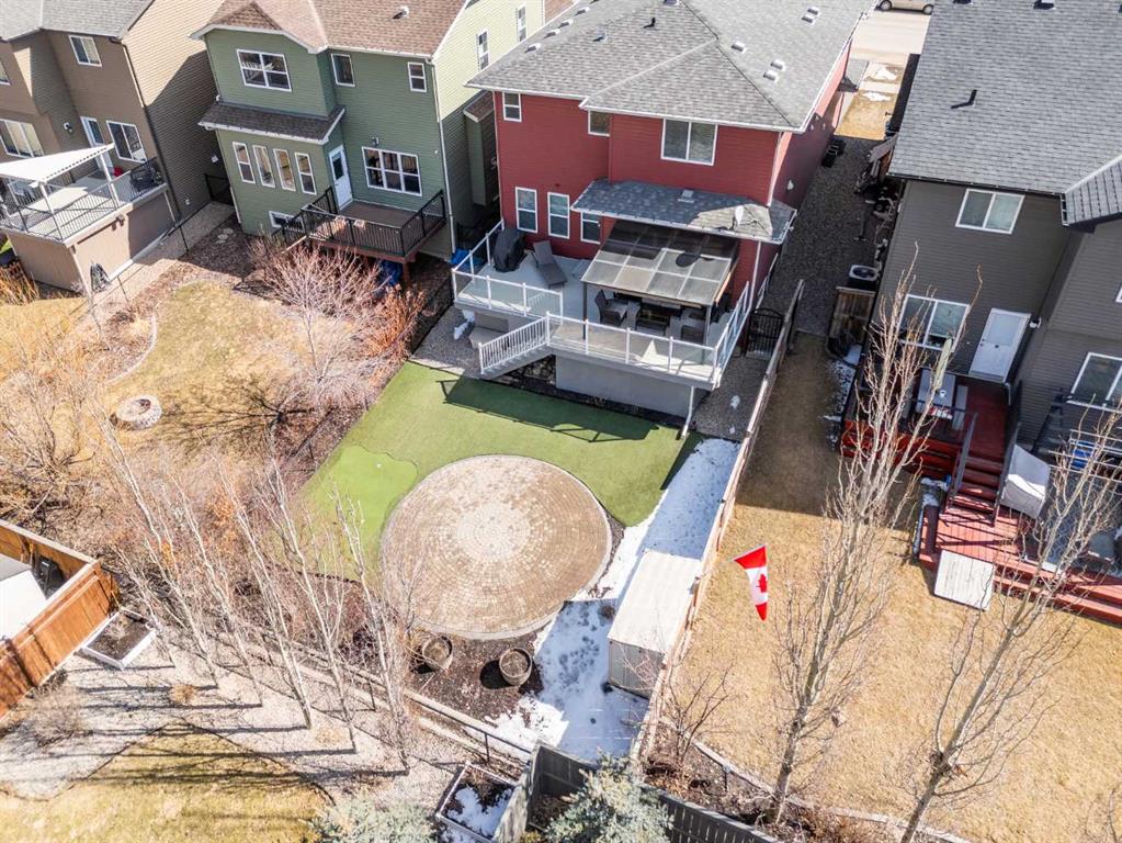 Open House Saturday, April 11, 2:30-4:30. This home has a great layout and outdoor space with low-maintenance turf backyard designed for easy living, complete with rock features, a full-width deck with pergola and BBQ gas line, and your very own putting green—perfect for relaxing evenings or entertaining friends. Inside offers a bright, open-concept main floor featuring hardwood floors, generous kitchen with granite countertops, stainless steel appliances, a walk-in pantry, and a large one-level island. The dining area is large enough for a big table and buffet. The living room features a gas fireplace with TV mount above. The steps down into mudroom and half-bath area give a touch of unique architechture. Upstairs offers a thoughtfully designed layout with two bedrooms at the front—both with walk-in closets—a full main bath, central bonus room and laundry, and a spacious primary suite at the back featuring a large walk-in closet and a 5-piece ensuite. The fully finished basement provides a wide open rec room, a third full bathroom, and the flexibility to easily add a fourth bedroom if desired, along with excellent storage throughout. The oversized heated garage is extended in depth, making it ideal for trucks or additional workspace. With air conditioning, pride of ownership throughout, a location just minutes to D’Arcy Ranch Golf Club, plus parks, pathways, playgrounds, and your own putting green in the back yard, this home has much to offer!