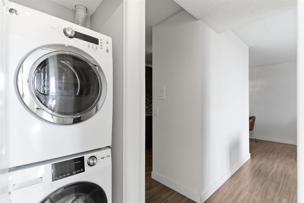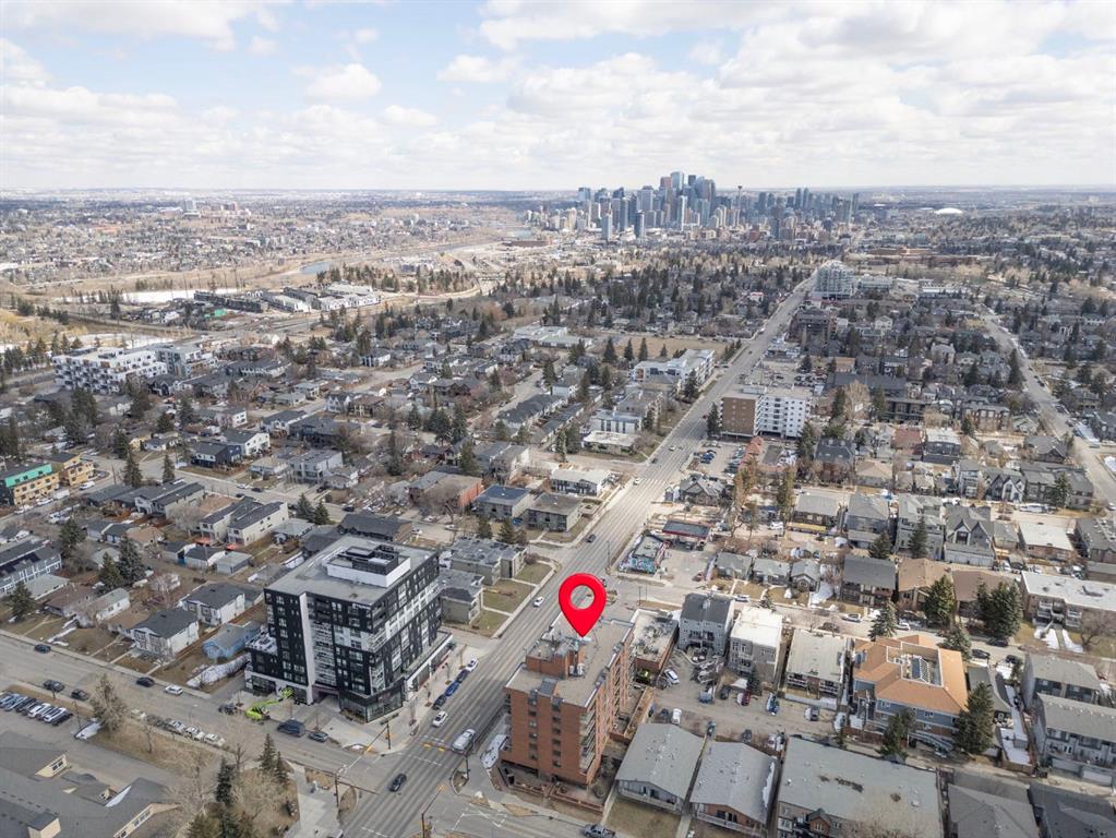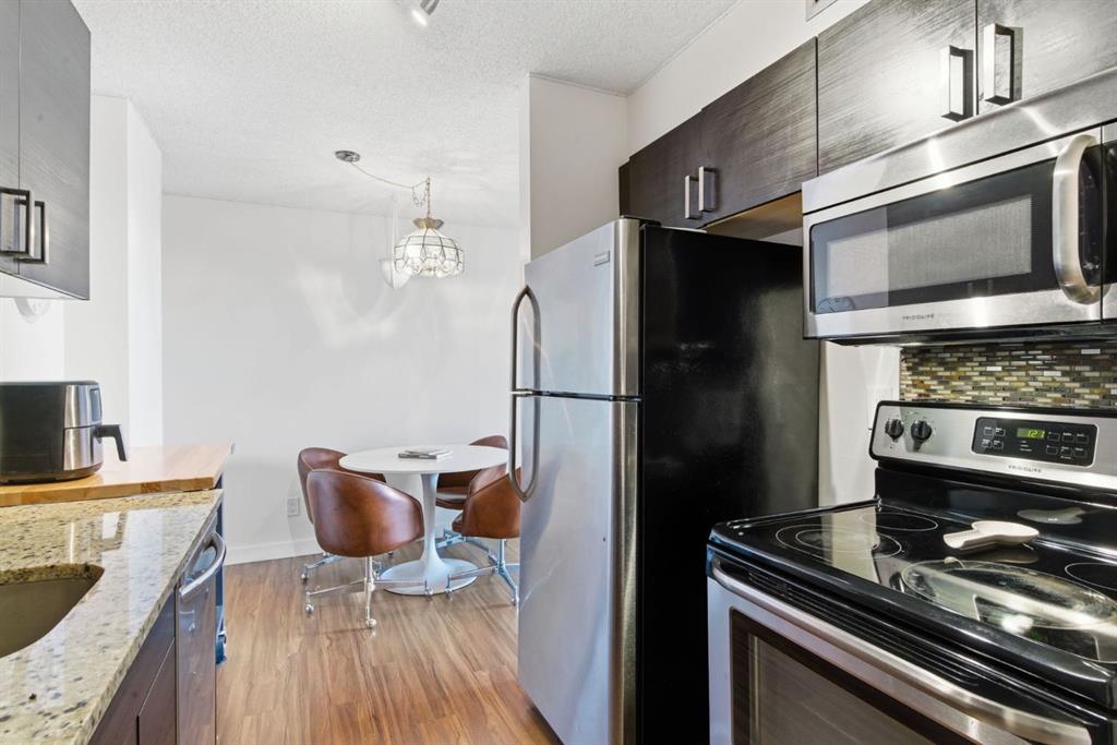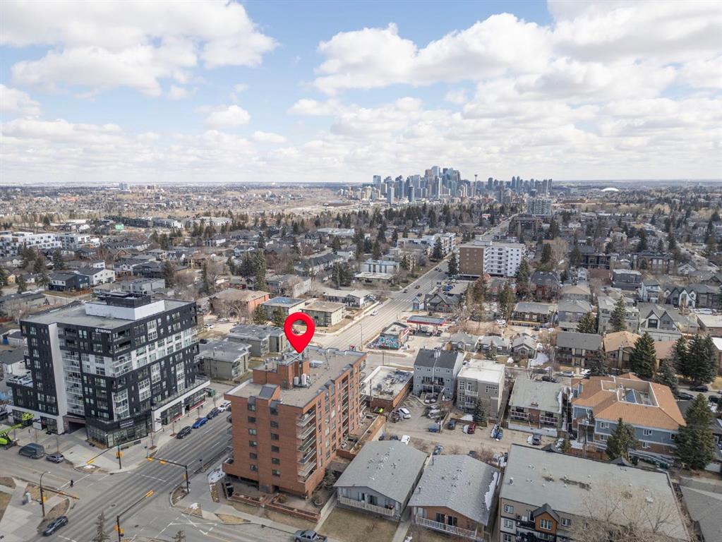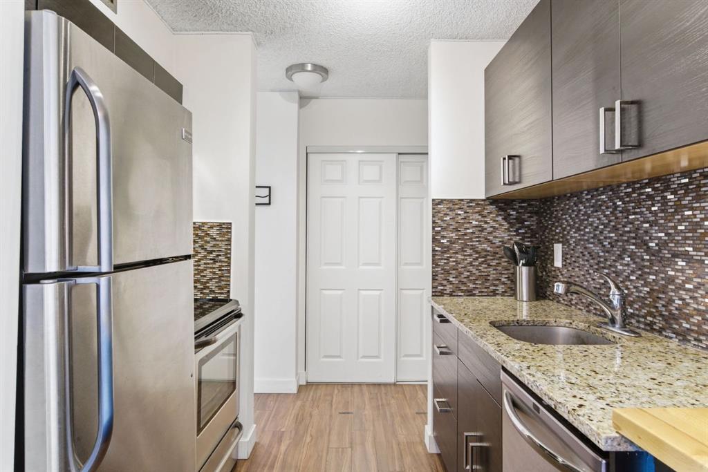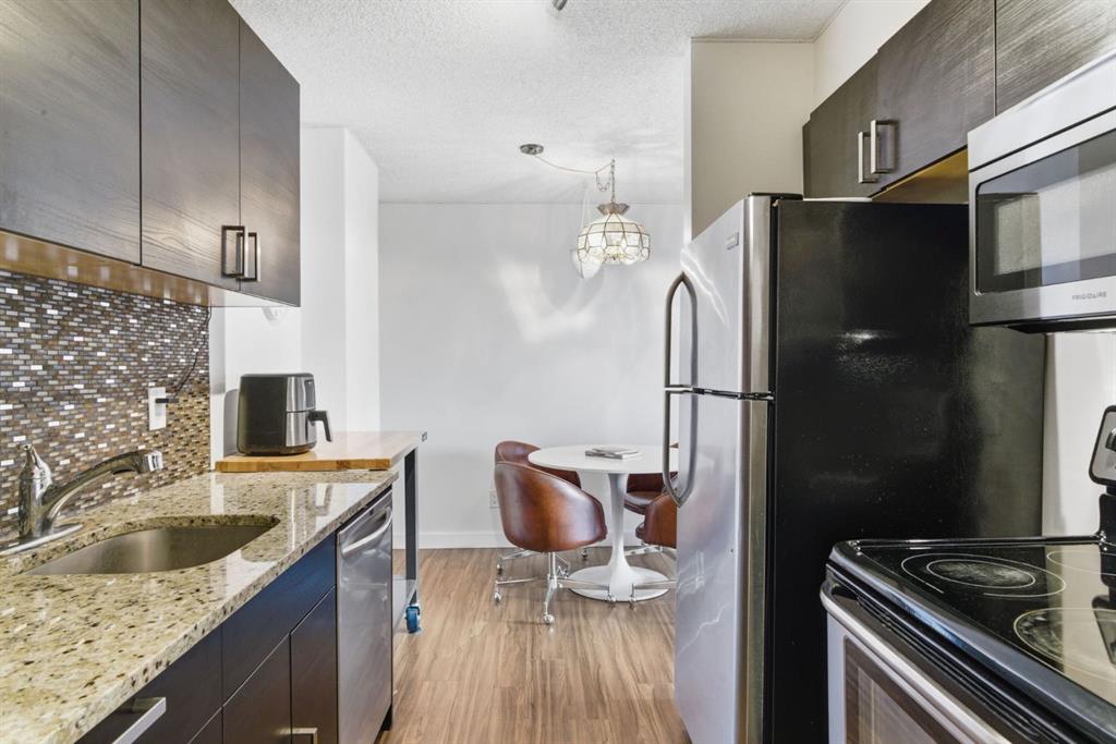 Welcome to a fantastic opportunity in a well-managed concrete building, perfectly located on vibrant 17th Avenue! This bright, south-facing 2-bedroom condo offers over 750 SF of well-designed living space, filled with natural light throughout the day—ideal for first-time buyers or investors. Enjoy the sunny exposure from your quiet south-facing balcony—perfect for relaxing or enjoying your morning coffee. The kitchen has been updated with granite countertops and stainless steel appliances, offering both style and functionality. This home features two generously sized bedrooms, a 4-piece bathroom with a soaker tub, and the convenience of newer in-suite laundry. A titled underground parking stall adds everyday comfort. Located in a secure, professionally managed building with condo fees that include all utilities except electricity, this is truly a low-maintenance and affordable option. Walking distance to the C-Train, shops, restaurants, and amenities, and just steps to the Killarney Aquatic Centre. A great opportunity in a prime location—don’t miss it!