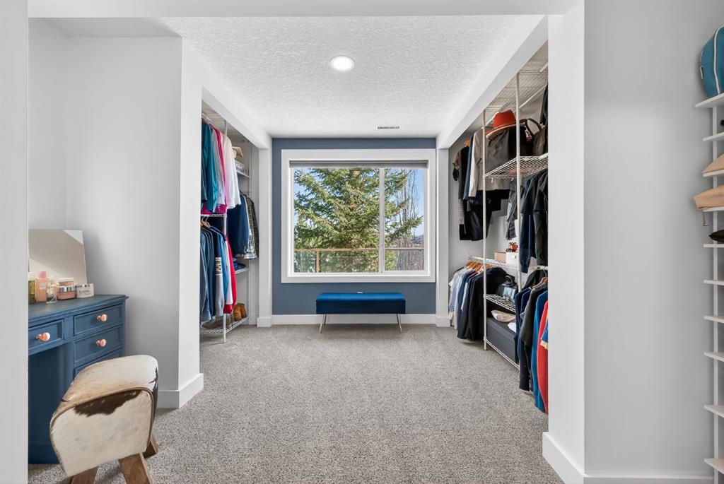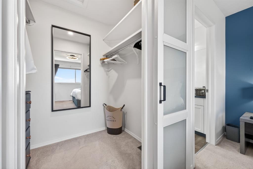 The lower-level primary suite is a true standout—massive in size and designed as a private escape, complete with a walk-in closet, stylish frosted pocket doors, and a dedicated makeup area. It’s the perfect sanctuary for unwinding at the end of the day.