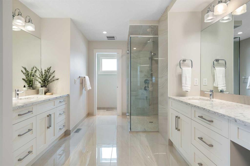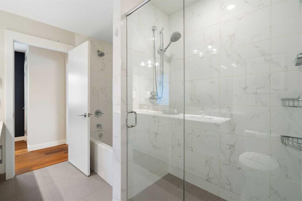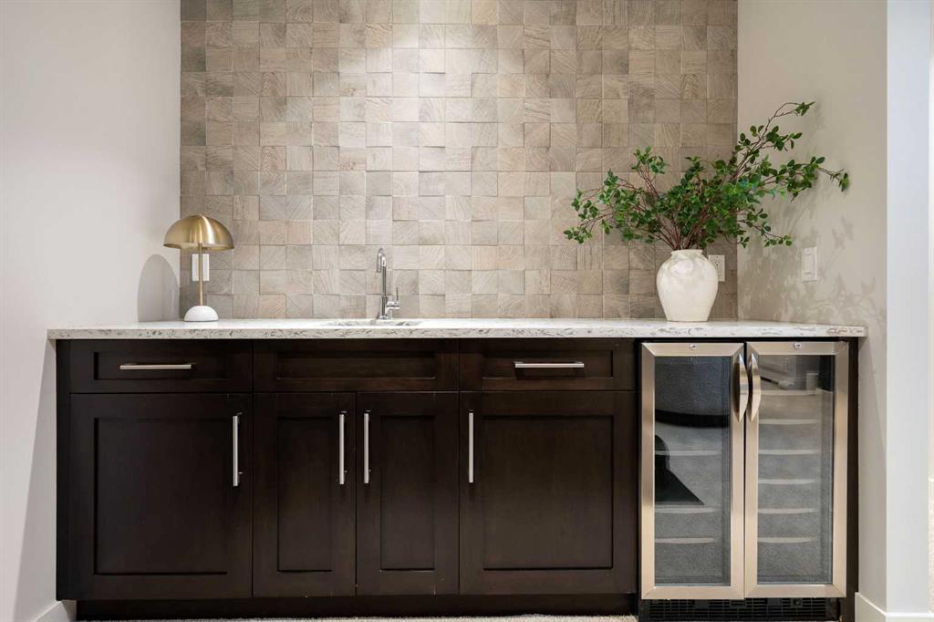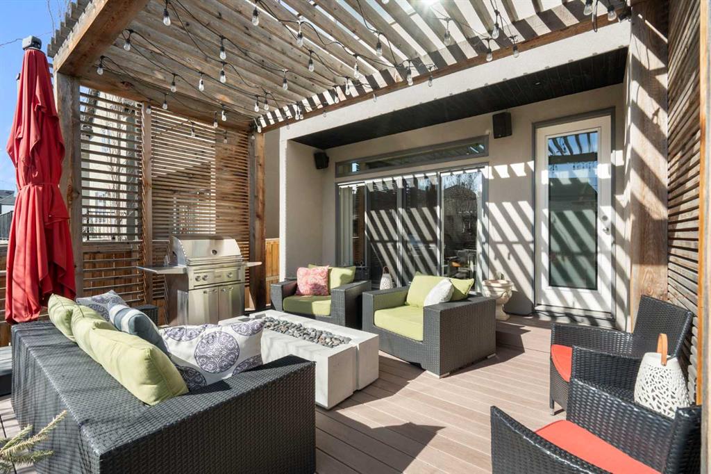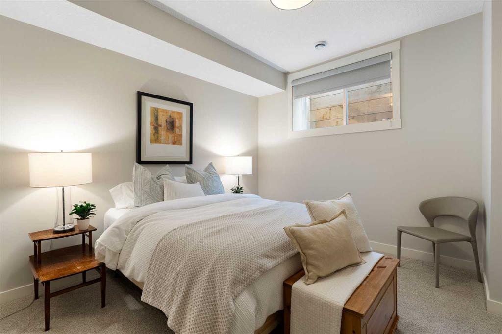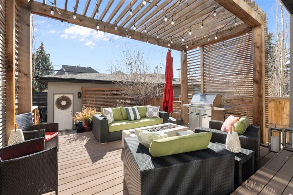 Welcome to 2201 Bowness Road NW, a rare and beautifully curated four-level home in one of West Hillhurst’s most sought-after pockets. Situated on a prime corner lot, this exceptional residence offers stunning downtown views, a sunny south-facing backyard, and over 3,700 sq. ft. of thoughtfully designed living space. Natural light pours through strategically placed oversized windows across every above-grade level, creating a bright and inviting atmosphere throughout. The main floor is a true showpiece, featuring engineered hardwood, striking open-riser wood staircases, and a statement raw metal gas fireplace. At the heart of the home is a nearly 16-foot waterfall island with built-in storage and integrated seating, perfectly paired with a chef-inspired kitchen complete with premium Sub-Zero, Miele, and JennAir appliances, custom cabinetry, and designer lighting. Sliding doors open seamlessly to the pergola-covered patio, extending the living space outdoors. The second level is ideal for family living, offering spacious secondary bedrooms, custom closet built-ins, a rare 6-piece bath with heated floors, a flexible bonus/family room, and access to the first upper deck. One of the bedrooms enjoys beautiful south-facing downtown views. The entire third level is dedicated to an exceptional primary retreat — a true private sanctuary. Enjoy your own covered balcony, wet bar and coffee station, custom open closet, and a luxurious 5-piece ensuite with heated tile floors, freestanding tub, and a stunning two-way fireplace. The fully developed basement offers 9-foot ceilings, a large recreation room with full wet bar, guest bedroom, full bathroom, and rough-in for in-floor heat. Outdoor spaces have been professionally curated with composite decking, pergola, mature landscaping, lighting, and rebuilt upper decks with vinyl decking and metal cladding. Additional features include air conditioning, zoned heating and cooling, Hunter Douglas blinds, built-in speakers, Vacuflo, Kinetico water system, security system, and insulated garage with Gladiator storage. A truly exceptional inner-city offering just minutes to downtown, Kensington, the Bow River pathways, and some of Calgary’s best amenities.
