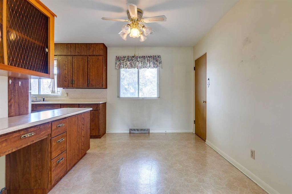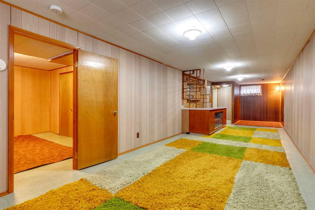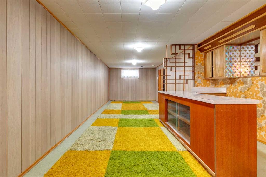 If you’ve been dreaming of your next project, this 1960s bungalow is ready to inspire. Original condition and value priced, it’s packed with retro charm for those who love mid-century details, or the chance to create something entirely new on the spacious lot. The sunny living room is a time capsule, with its original built-in bookcase/display shelf, panelled accent wall, sculpted plaster ceiling and big south east facing window. Imagine how you could transform the kitchen and dining room, which overlook the spacious backyard. The potential is incredible! There are three bedrooms with original hardwood floors, and a four piece bathroom with a powder pink bathtub. Downstairs, the developed basement is a love story to the sixties, featuring a colourful checkered shag carpet, patterned floral wallpaper, and a mid century bar, along with the fourth bedroom, a bathroom and laundry/storage area. The lot is 55’ wide, bigger than most in the area and the backyard is generous, with a magnificent evergreen tree taking centre stage. There is excellent potential for a future garage and garden while the current side driveway is accessible from the front street providing convenient parking. This family friendly neighbourhood offers quick access to the shops and businesses of Macleod Trail and Deerfoot Meadows. It is an ideal location for a young family, a house flipper, or a developer looking to build new. Yes, it needs work. But with vision and creativity, this bungalow could be transformed into a sweet little dream home.