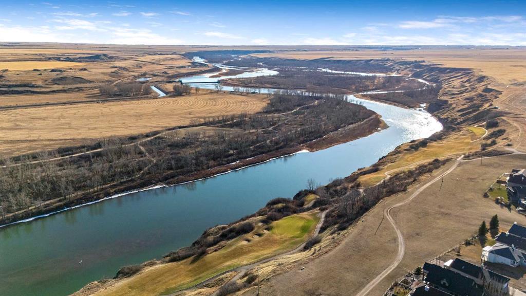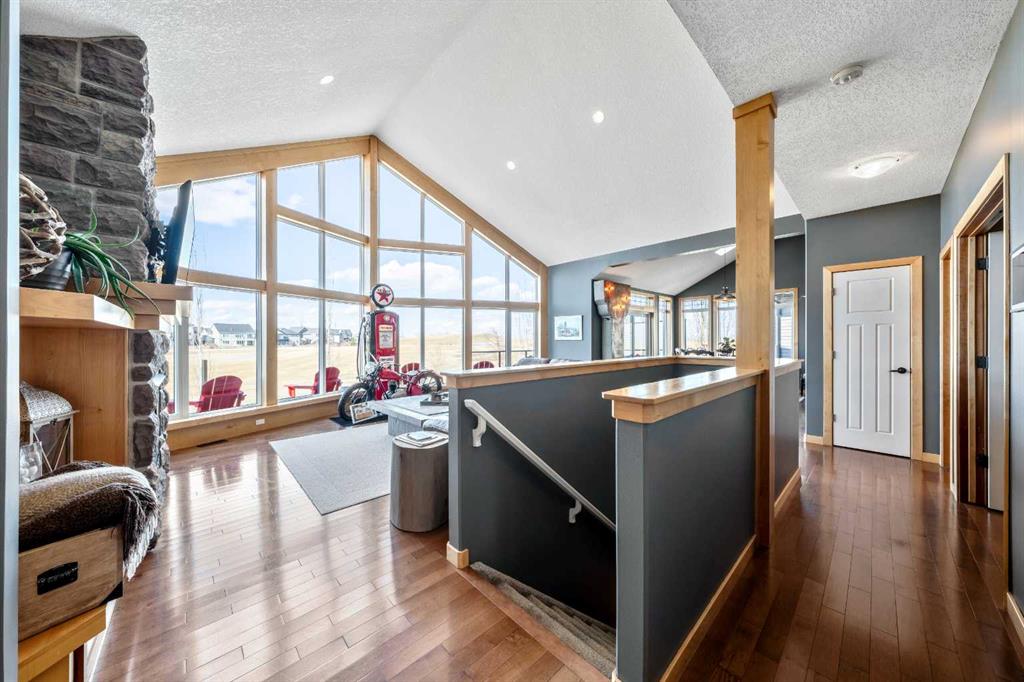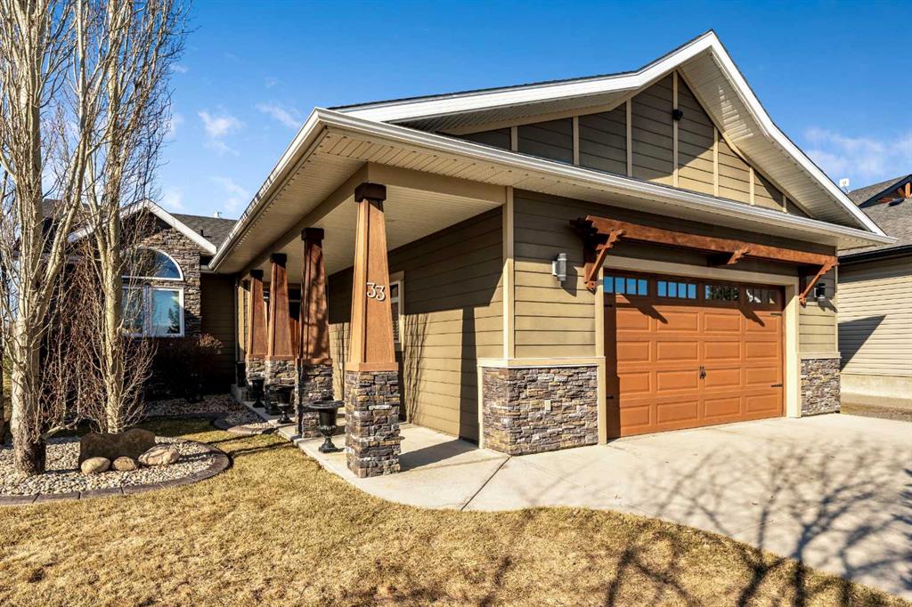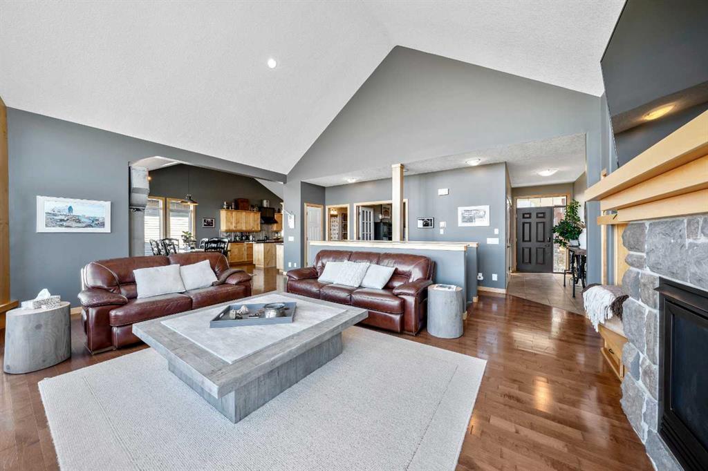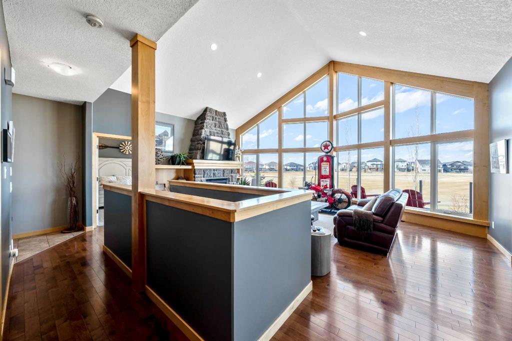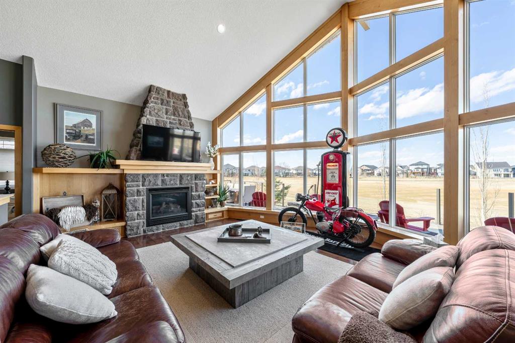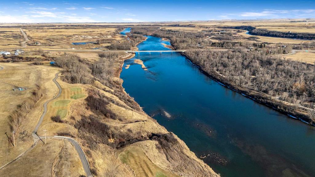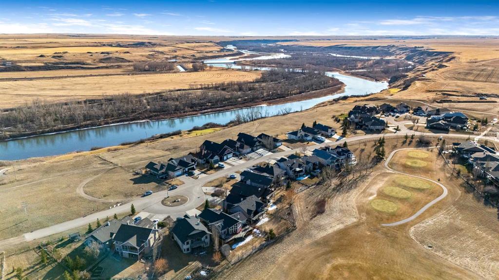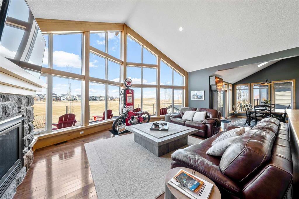 33 Wyndham Park Way Speargrass Golf Course Living! Backing the 10th fairway of the Speargrass Golf Course and just steps from the Bow River, this beautifully upgraded bungalow offers peaceful views, stunning sunsets, and over $200,000 in thoughtful upgrades... Welcome to this beautifully maintained bungalow located along the 10th fairway of the Speargrass Golf Course, offering peaceful views, stunning sunsets, and a relaxed lifestyle in one of Wheatland County’s most charming communities. Just steps from the Bow River, this home combines scenic surroundings with a bright and spacious interior designed for comfortable living. The main floor features an open-concept layout with soaring vaulted ceilings, skylights, and expansive windows that fill the home with natural light while capturing the surrounding golf course views. The impressive stone fireplace anchors the great room, creating a warm and inviting space for gathering. The kitchen is well appointed with granite countertops, a large island, and generous cabinetry, flowing seamlessly into the dining area with patio doors that open onto the upper deck—perfect for morning coffee or evening sunsets overlooking the fairway.