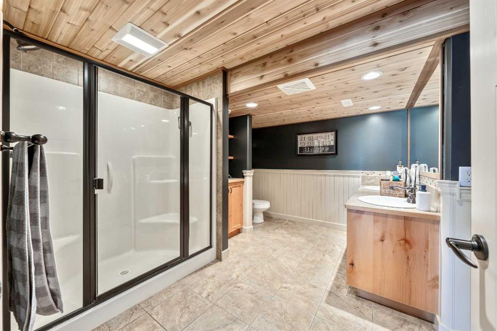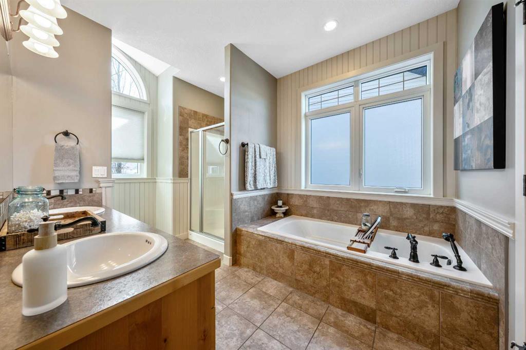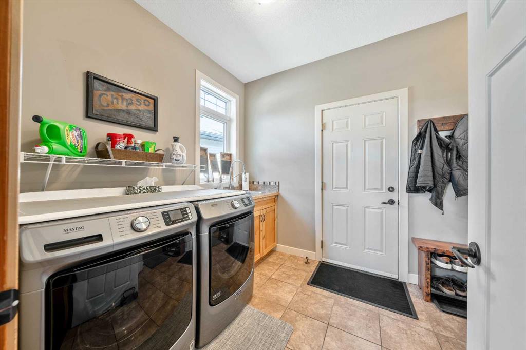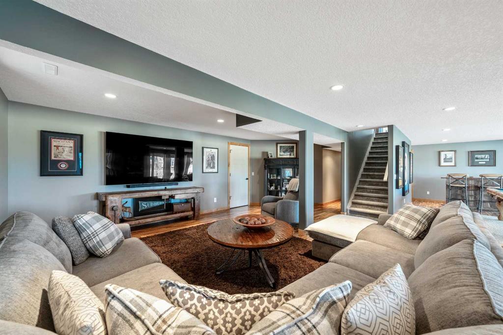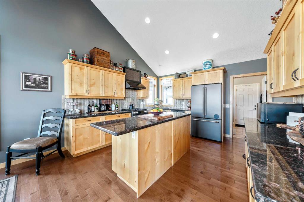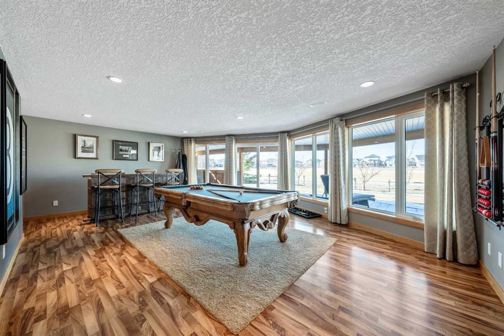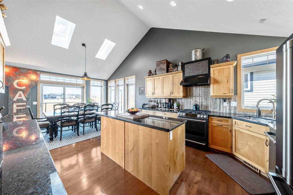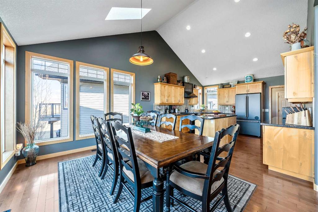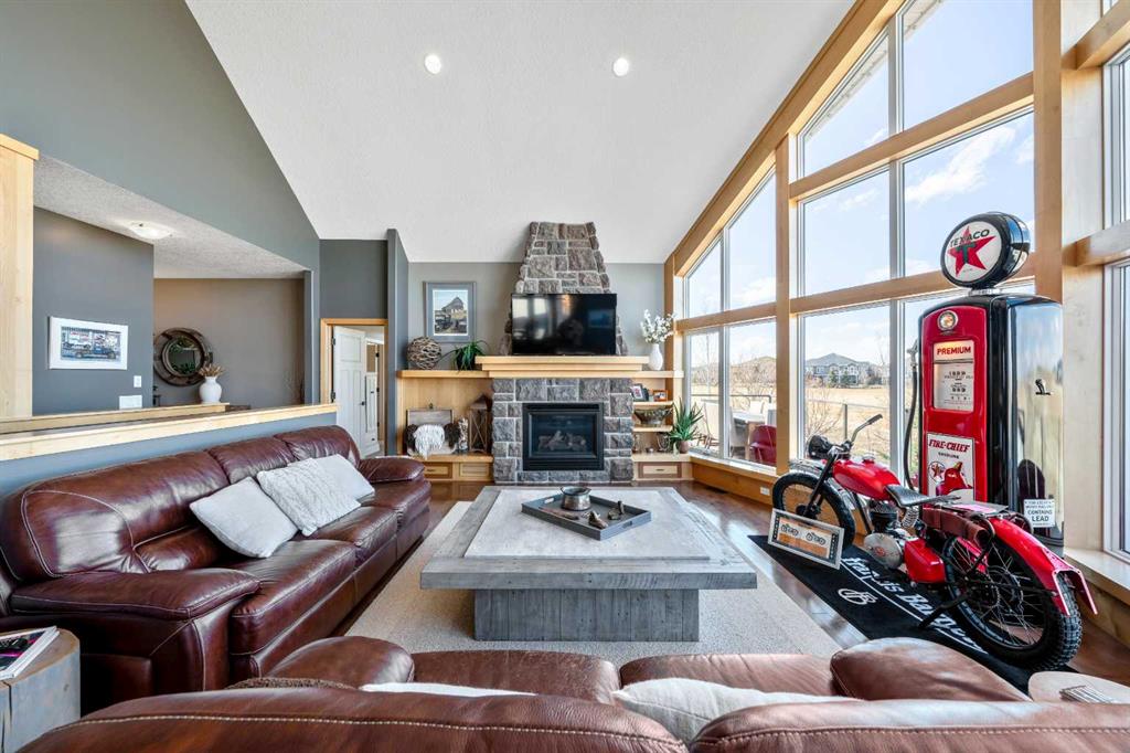 33 Wyndham Park Way Speargrass Golf Course Living! Backing the 10th fairway of the Speargrass Golf Course and just steps from the Bow River, this beautifully upgraded bungalow offers peaceful views, stunning sunsets, and over $200,000 in thoughtful upgrades... Welcome to this beautifully maintained bungalow located along the 10th fairway of the Speargrass Golf Course, offering peaceful views, stunning sunsets, and a relaxed lifestyle in one of Wheatland County’s most charming communities. Just steps from the Bow River, this home combines scenic surroundings with a bright and spacious interior designed for comfortable living. The main floor features an open-concept layout with soaring vaulted ceilings, skylights, and expansive windows that fill the home with natural light while capturing the surrounding golf course views. The impressive stone fireplace anchors the great room, creating a warm and inviting space for gathering. The kitchen is well appointed with granite countertops, a large island, and generous cabinetry, flowing seamlessly into the dining area with patio doors that open onto the upper deck—perfect for morning coffee or evening sunsets overlooking the fairway.