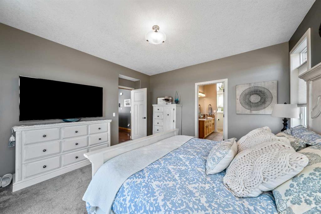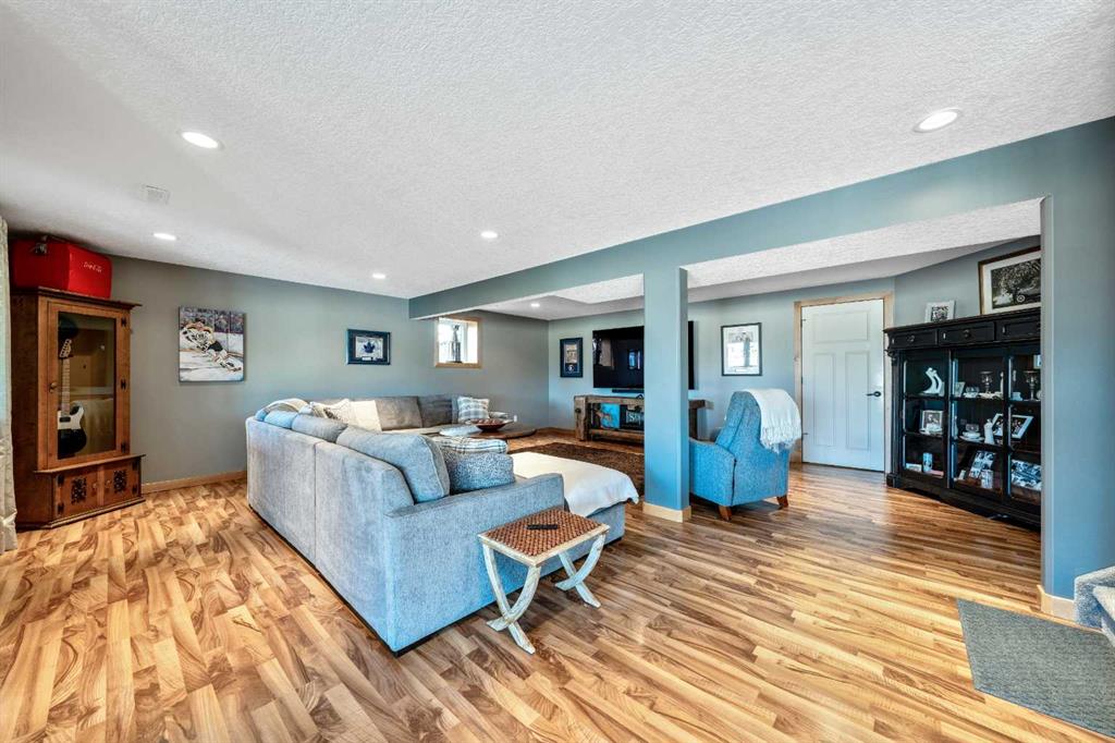 The primary suite offers a private retreat with direct deck access and a spa-inspired 5-piece ensuite, while the main floor also includes a dedicated office with French doors, convenient laundry area, and mudroom access from the attached garage. The fully finished lower level walkout provides a spacious family and recreation room, two additional bedrooms, and a full bathroom—ideal for guests, family, or entertaining. Over the past several years, the sellers have invested over $200,000 in thoughtful upgrades enhancing both comfort and efficiency. Improvements include central air conditioning, a high-efficiency Napoleon furnace, HRV system, Culligan water softener upgrade, and a full CAFÉ appliance package. Additional highlights include Gemstone architectural exterior lighting, professionally finished garage with epoxy flooring and custom cabinetry, a Master Spa Twilight hot tub, stamped concrete patio, custom deck upgrade, irrigation system, new landscaping and sod, interior painting, bathroom updates, new carpeting, and a brand s hingles will be completed in June. The landscaped yard provides beautiful curb appeal and multiple outdoor spaces to relax and enjoy the peaceful golf course setting. Speargrass offers a quiet community atmosphere with golf, river access, walking paths, and RV parking, all within an easy commute to Calgary, Strathmore, and Okotoks. This is a rare opportunity to enjoy golf course living with river access in a beautifully upgraded home.