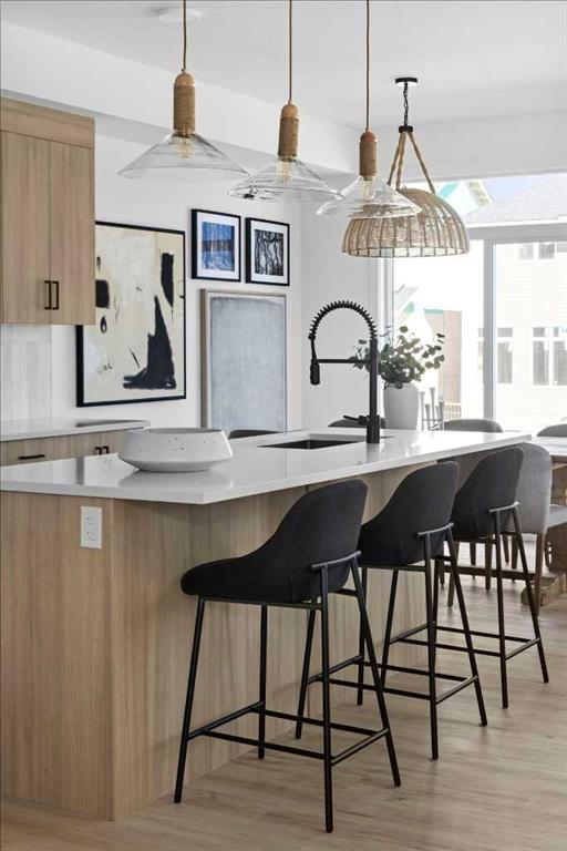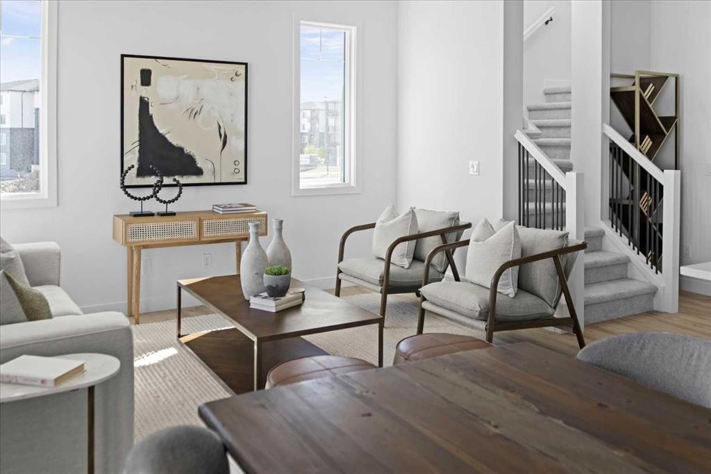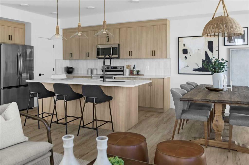 ** Open House at Greystone Show Home - 498 River Ave, Cochrane - April 10th 2 to 5 pm, April 11th 11 to 5 pm, and April 12th 1 to 4 pm ** This beautifully crafted Landon model by Rohit Homes offers a modern, functional layout in the vibrant, rapidly growing community of Greystone, Cochrane. Designed for families or first-time buyers, this brand-new duplex features a bright, open-concept main floor with 9' ceilings and a seamless connection between the kitchen, dining, and living areas. The contemporary kitchen serves as a focal point, complete with quartz countertops, a central island, and modern cabinetry.