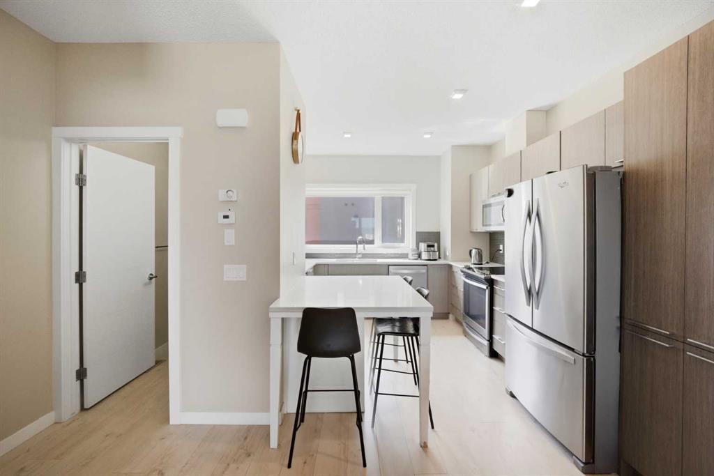 Step inside to discover a bright and functional open-concept main floor featuring soaring ceilings, large windows, and abundant natural light thanks to the desirable east-facing front and west-facing rear exposure ??. The contemporary rear kitchen is equipped with stainless steel appliances, quartz countertops, ample cabinetry, and generous prep space, making it ideal for both everyday living and entertaining. The flexible layout allows for multiple configurations of your dining and living areas to suit your lifestyle perfectly.
