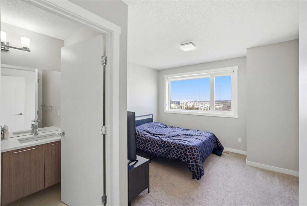 Upstairs, you’ll find two spacious bedrooms, each with large windows that create an airy and inviting atmosphere. The primary suite includes its own private 3-piece ensuite, while an additional full bathroom provides convenience for family members or guests. A main-floor powder room adds extra practicality for everyday use.