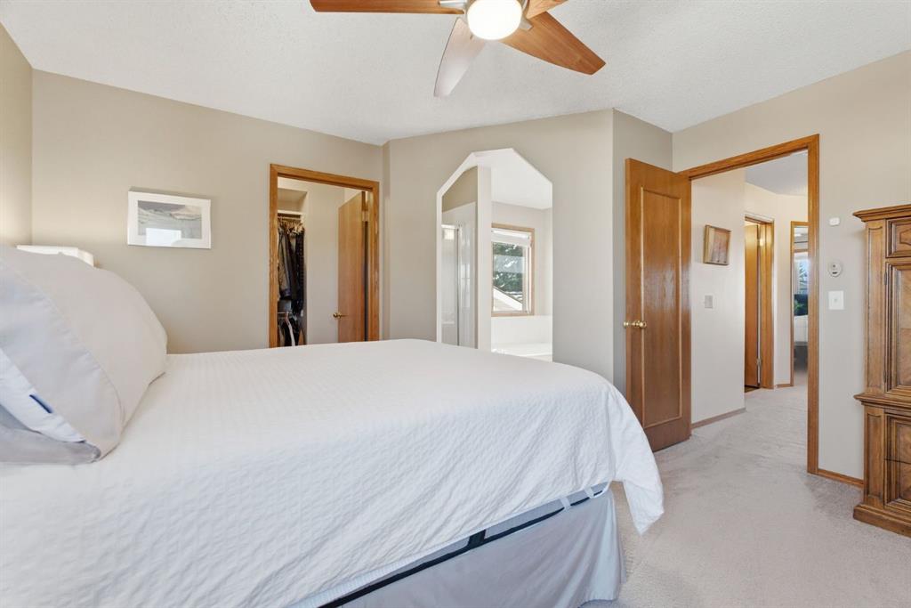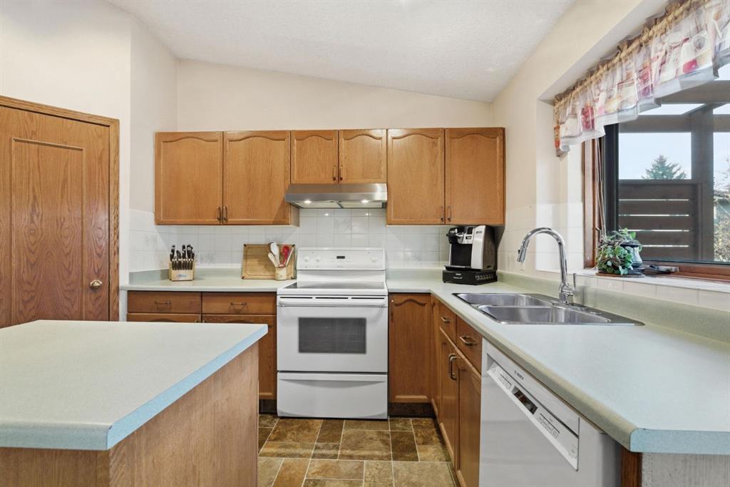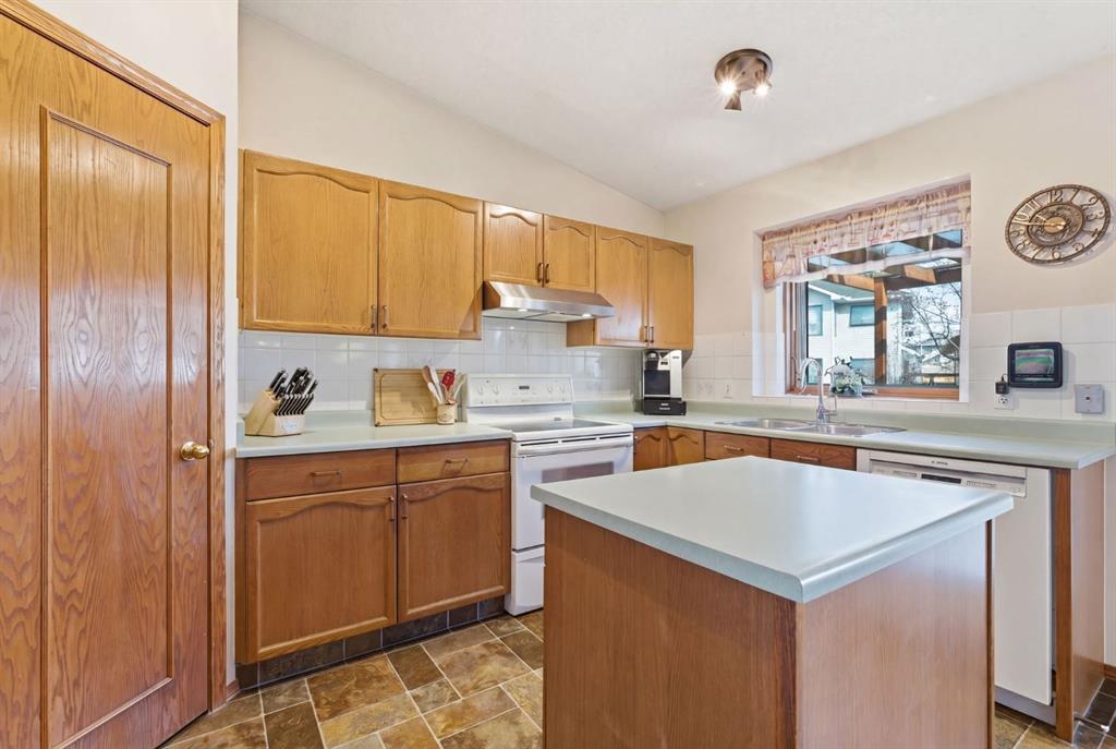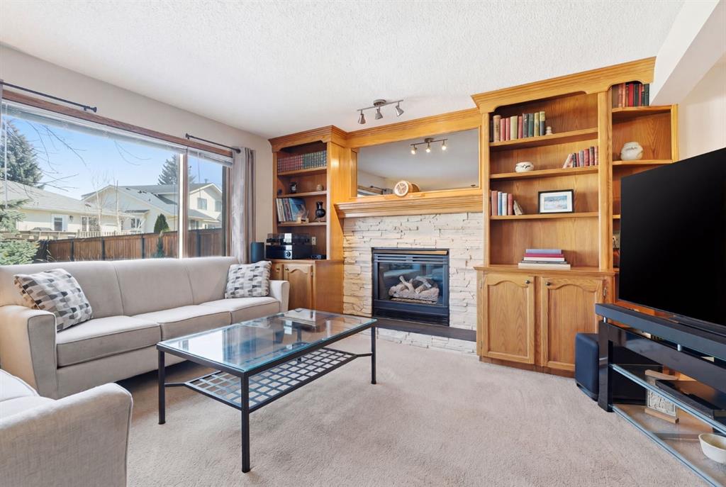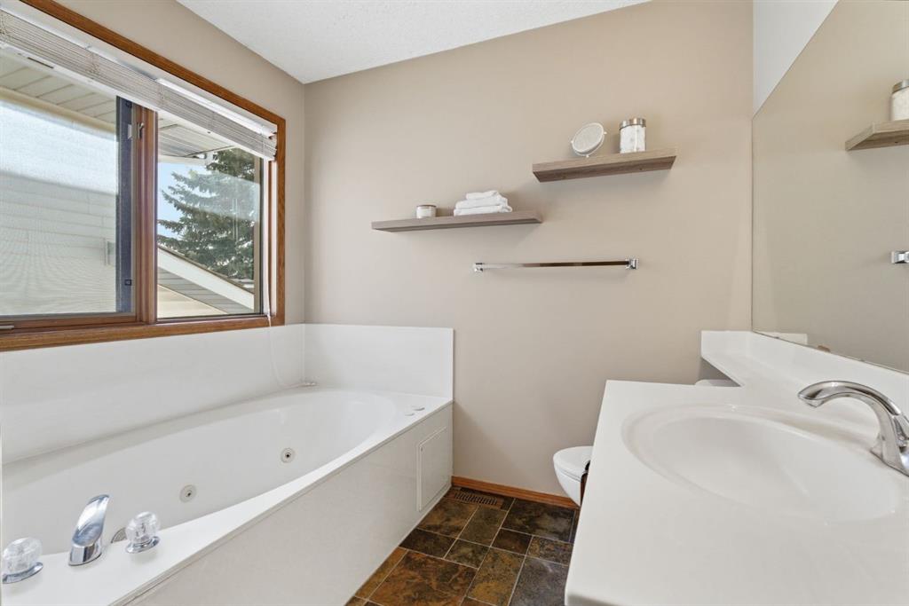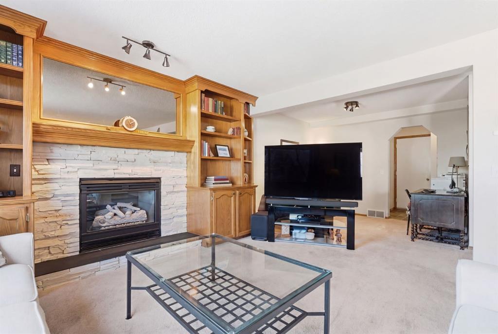 Welcome to this beautifully maintained home! Upon entering, you'll be greeted by soaring vaulted ceilings, modern light fixtures, and a stunning grand staircase. The formal living room features large windows draw in the natural light, while a well-sized dining room awaits just beyond. Adjacent to these areas is the “U-shaped” kitchen, complete with a corner pantry for extra storage, solid oak cabinets, and a sink that overlooks the gorgeous backyard. The kitchen flows into the breakfast nook with direct access to your private outdoor space. Outside is a true oasis, featuring a two-tier cedar deck with privacy screens, an outdoor shed, and an irrigation system—all enhanced by strategically placed landscape lighting and surrounded by mature trees. The main floor also includes a spacious living room, highlighted by a gas fireplace with custom built-ins and stone accents. Additionally, there is a den, a conveniently located main floor laundry room and a private powder room. Upstairs, the large primary bedroom boasts a walk-in closet and a spa-inspired ensuite with a separate shower, a luxurious jetted tub, and elegant stone counters. Two more generously sized bedrooms share a well-appointed four-piece main bath, also featuring stone counters. Enjoy the comforts of air conditioning, convenience of a smart thermostat, smart garage door, safety of security cameras and NO POLY B! Douglasdale Estates is a well-established family community with easy access to shopping, dining, Douglasdale Golf Club, parks, tennis courts, and scenic walking and biking paths that connect to the Bow River pathway system and Fish Creek Park. With quick access to Deerfoot Trail, commuting within the city is a breeze. The pride of ownership is evident throughout this home—schedule your showing today!