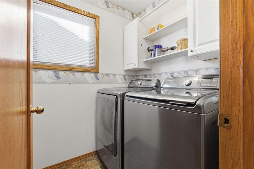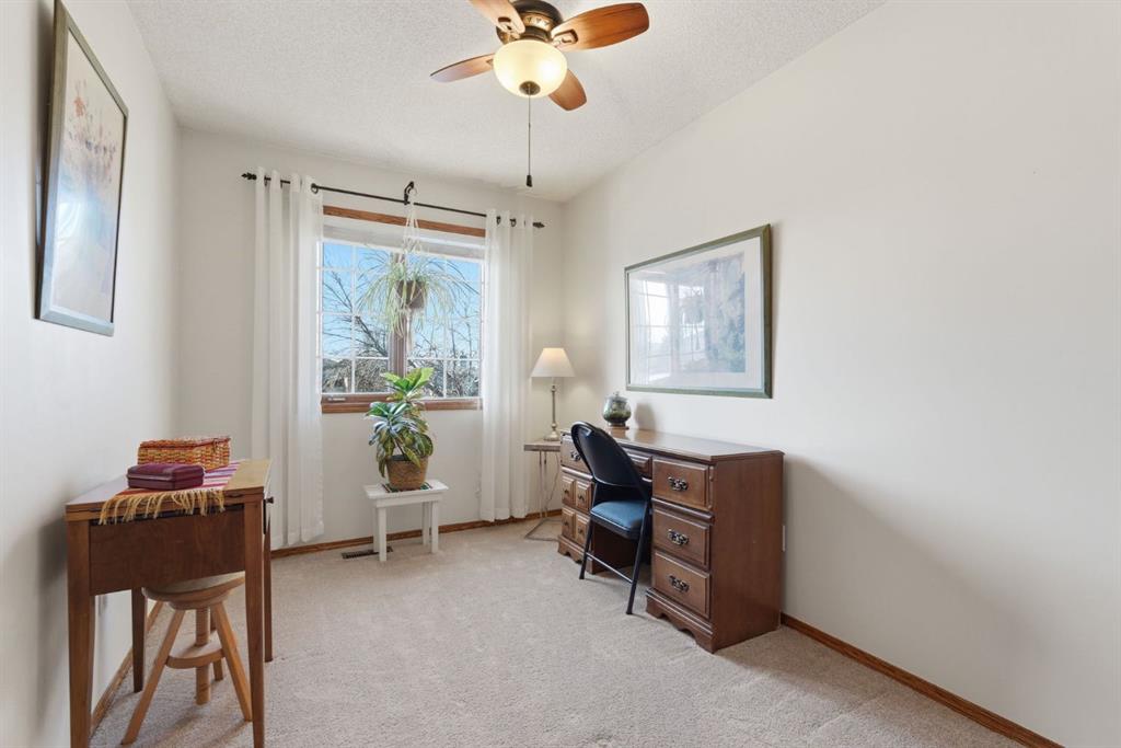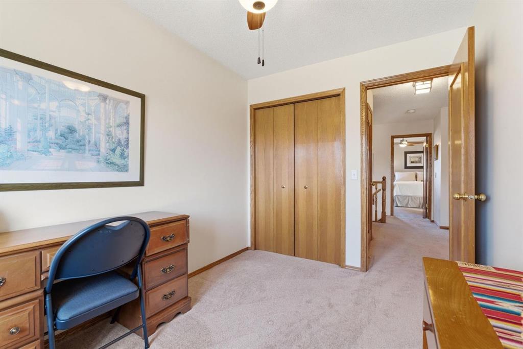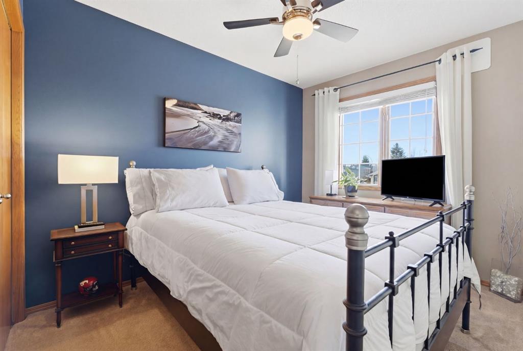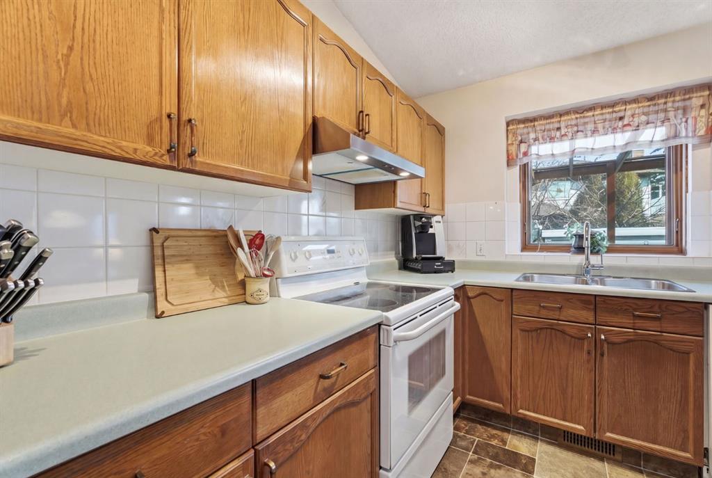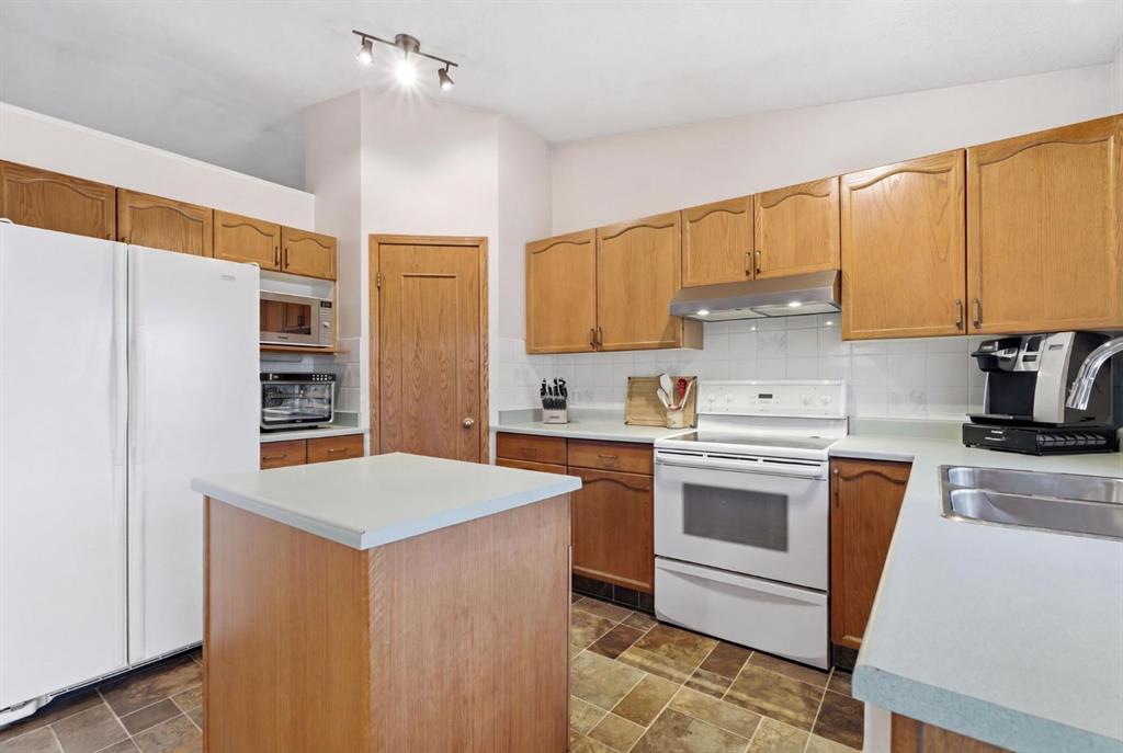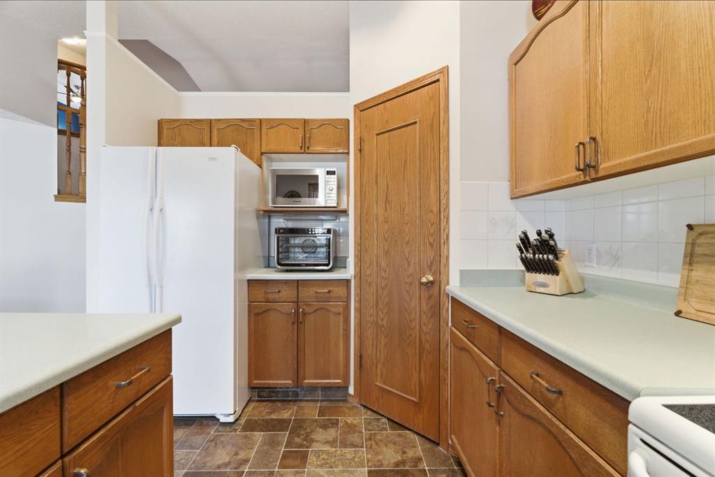 Welcome to this beautifully maintained home! Upon entering, you'll be greeted by soaring vaulted ceilings, modern light fixtures, and a stunning grand staircase. The formal living room features large windows draw in the natural light, while a well-sized dining room awaits just beyond. Adjacent to these areas is the “U-shaped” kitchen, complete with a corner pantry for extra storage, solid oak cabinets, and a sink that overlooks the gorgeous backyard. The kitchen flows into the breakfast nook with direct access to your private outdoor space. Outside is a true oasis, featuring a two-tier cedar deck with privacy screens, an outdoor shed, and an irrigation system—all enhanced by strategically placed landscape lighting and surrounded by mature trees. The main floor also includes a spacious living room, highlighted by a gas fireplace with custom built-ins and stone accents. Additionally, there is a den, a conveniently located main floor laundry room and a private powder room. Upstairs, the large primary bedroom boasts a walk-in closet and a spa-inspired ensuite with a separate shower, a luxurious jetted tub, and elegant stone counters. Two more generously sized bedrooms share a well-appointed four-piece main bath, also featuring stone counters. Enjoy the comforts of air conditioning, convenience of a smart thermostat, smart garage door, safety of security cameras and NO POLY B! Douglasdale Estates is a well-established family community with easy access to shopping, dining, Douglasdale Golf Club, parks, tennis courts, and scenic walking and biking paths that connect to the Bow River pathway system and Fish Creek Park. With quick access to Deerfoot Trail, commuting within the city is a breeze. The pride of ownership is evident throughout this home—schedule your showing today!